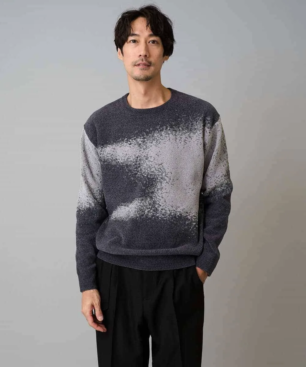 Жаккардовый свитер с круглым вырезом и смелым, эффектным размытым узором.