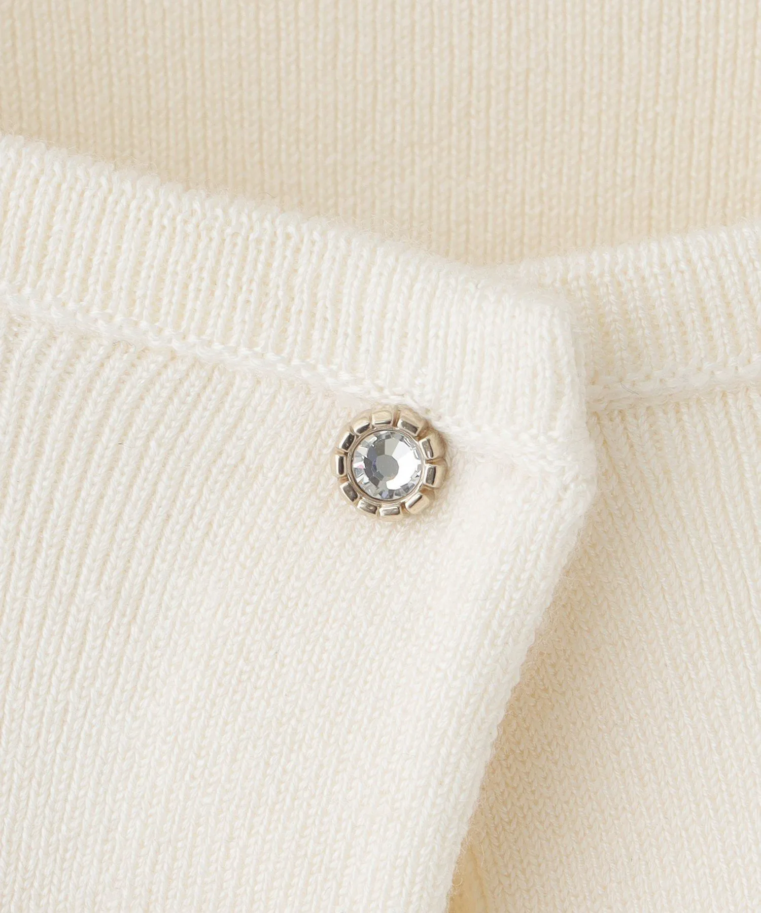 Детали окантовки из той же пряжи и маленькие декоративные пуговицы с драгоценными камнями добавляют элегантности общему образу.