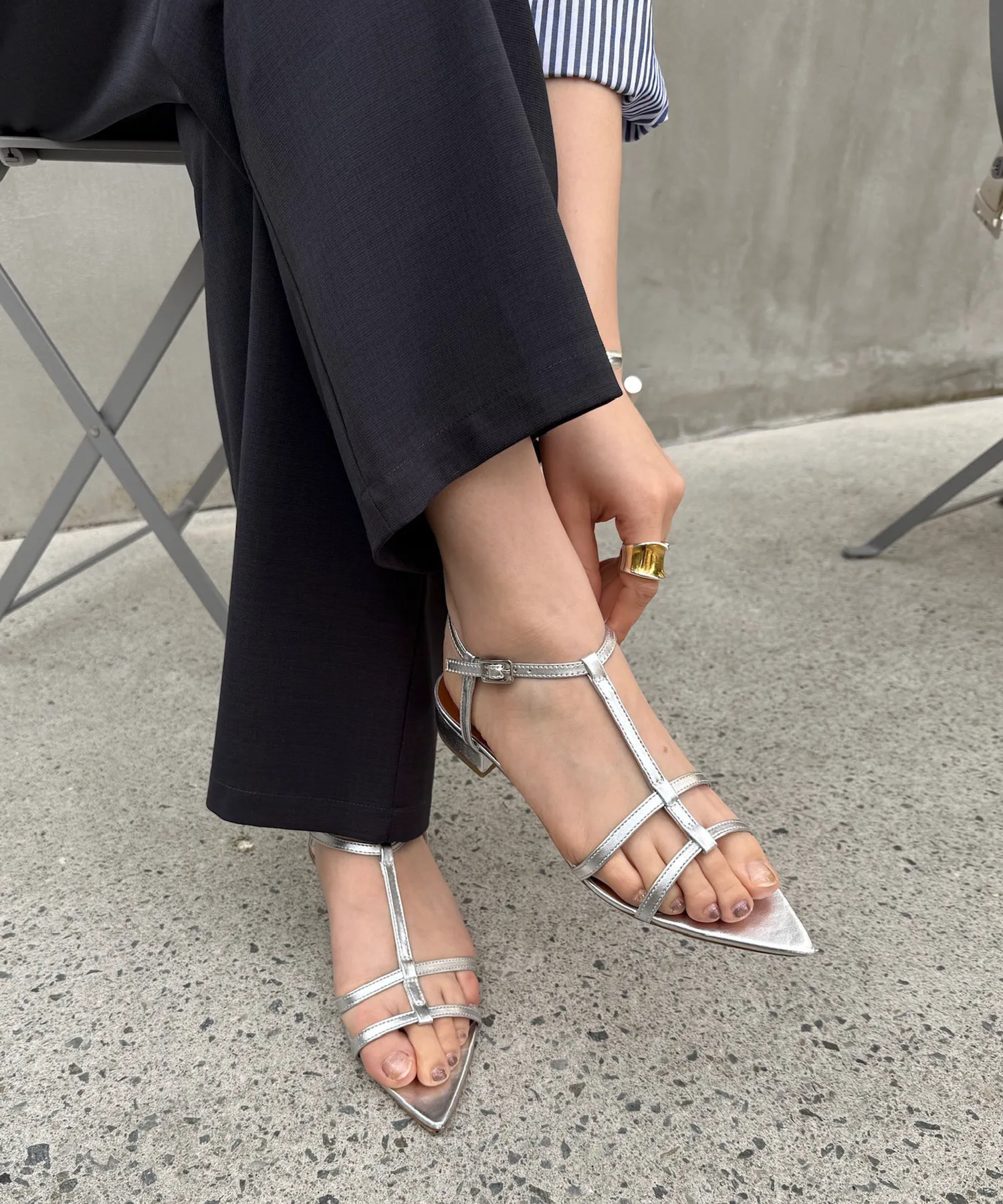 Тонкий Т-образный ремешок добавляет непринужденности вашим ногам.
