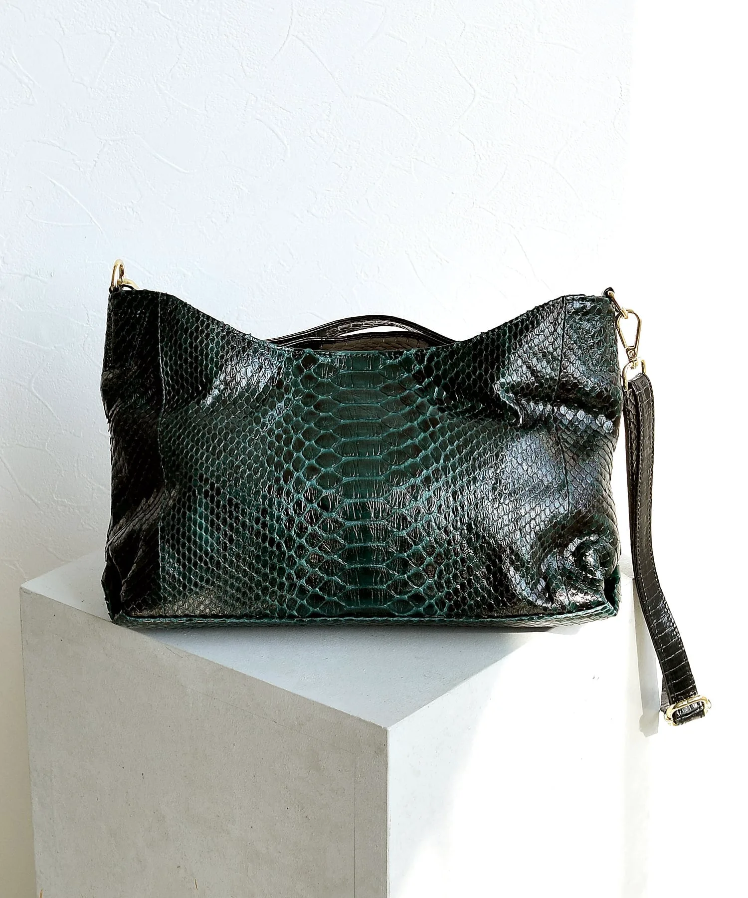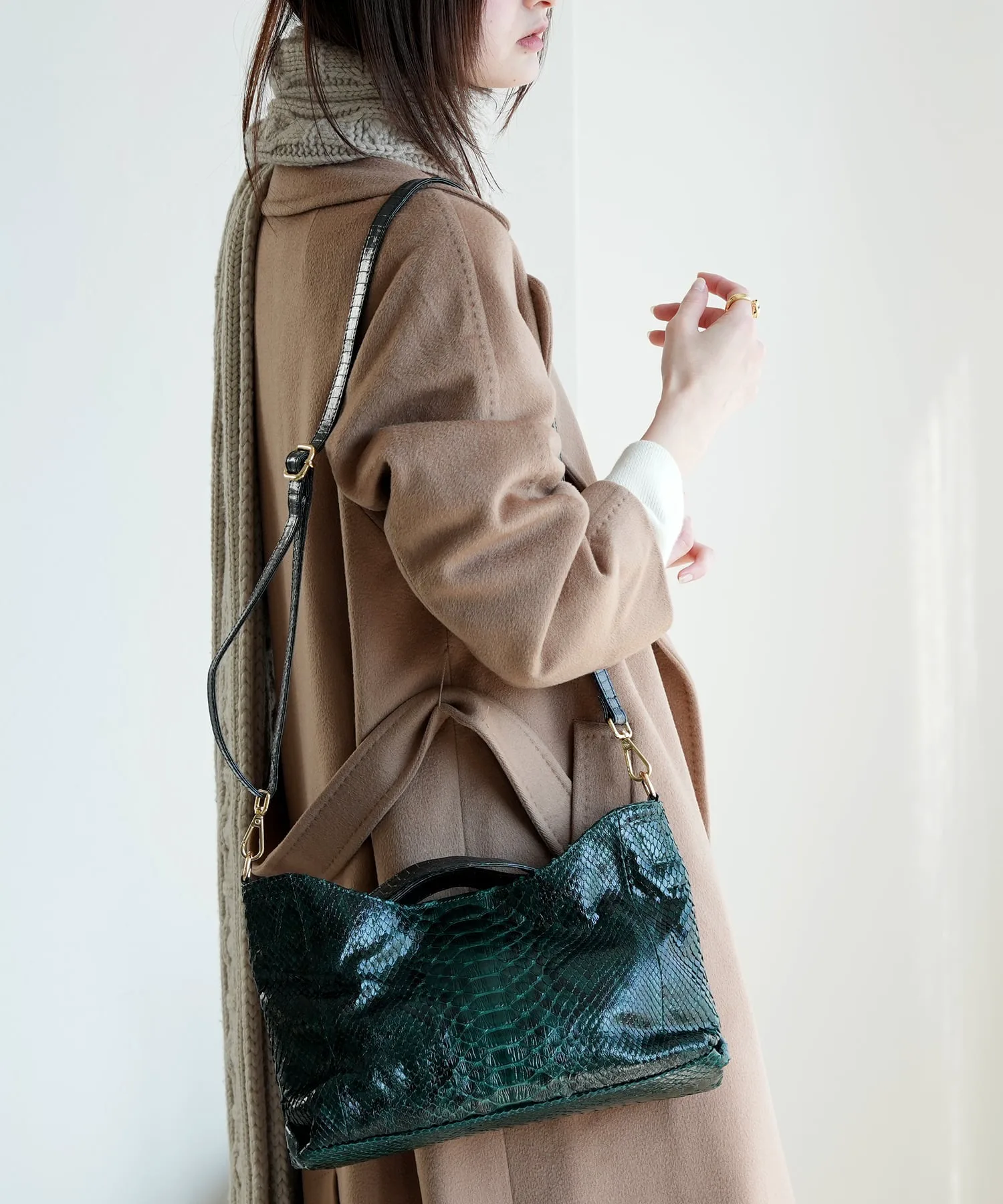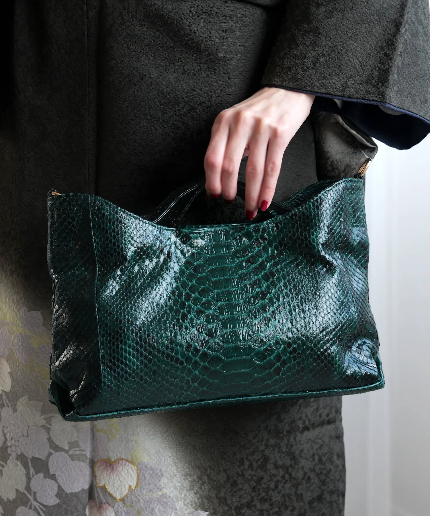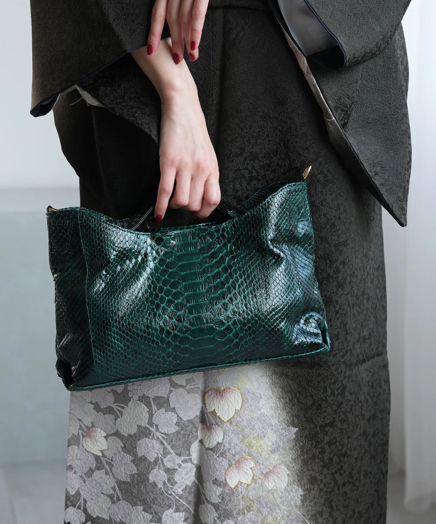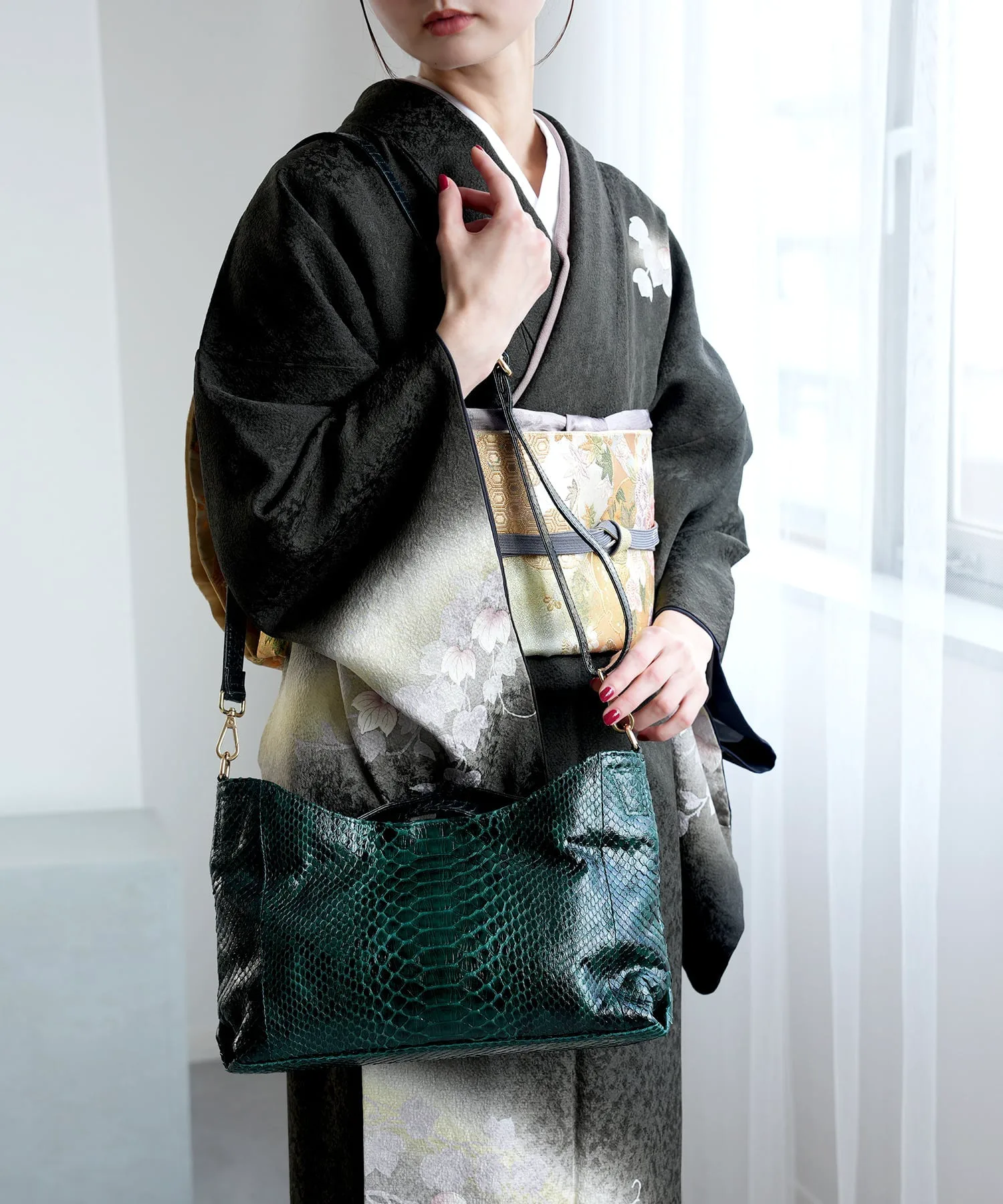 Сумка из натуральной змеиной и кобравой кожи с плечевым ремнем. Идеально подходит как для западного стиля, так и для кимоно.