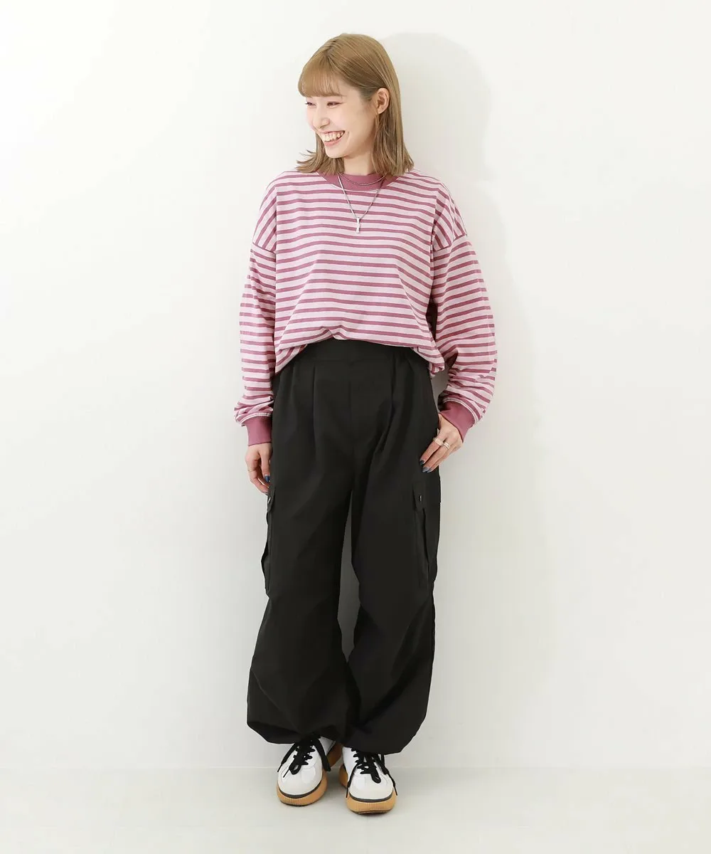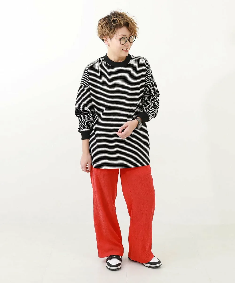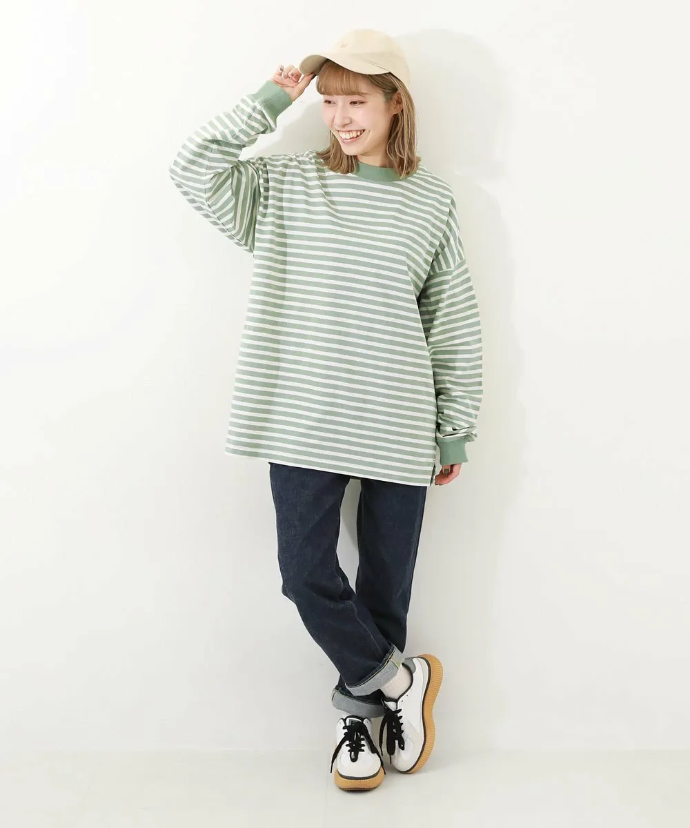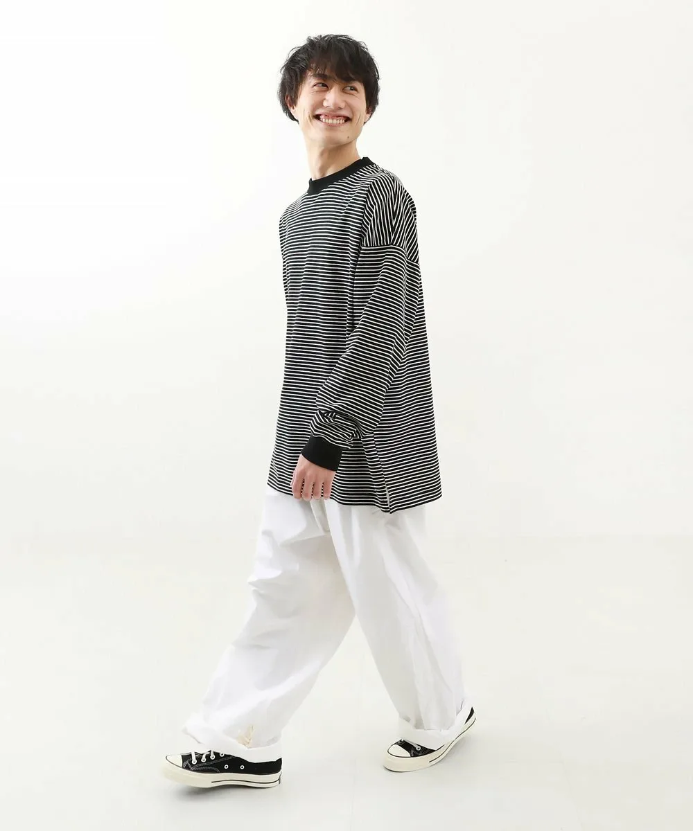 ・170UTP007 100% хлопок, свободный крой, ребристая полосатая футболка с длинными рукавами, которая не мнется даже после стирки.