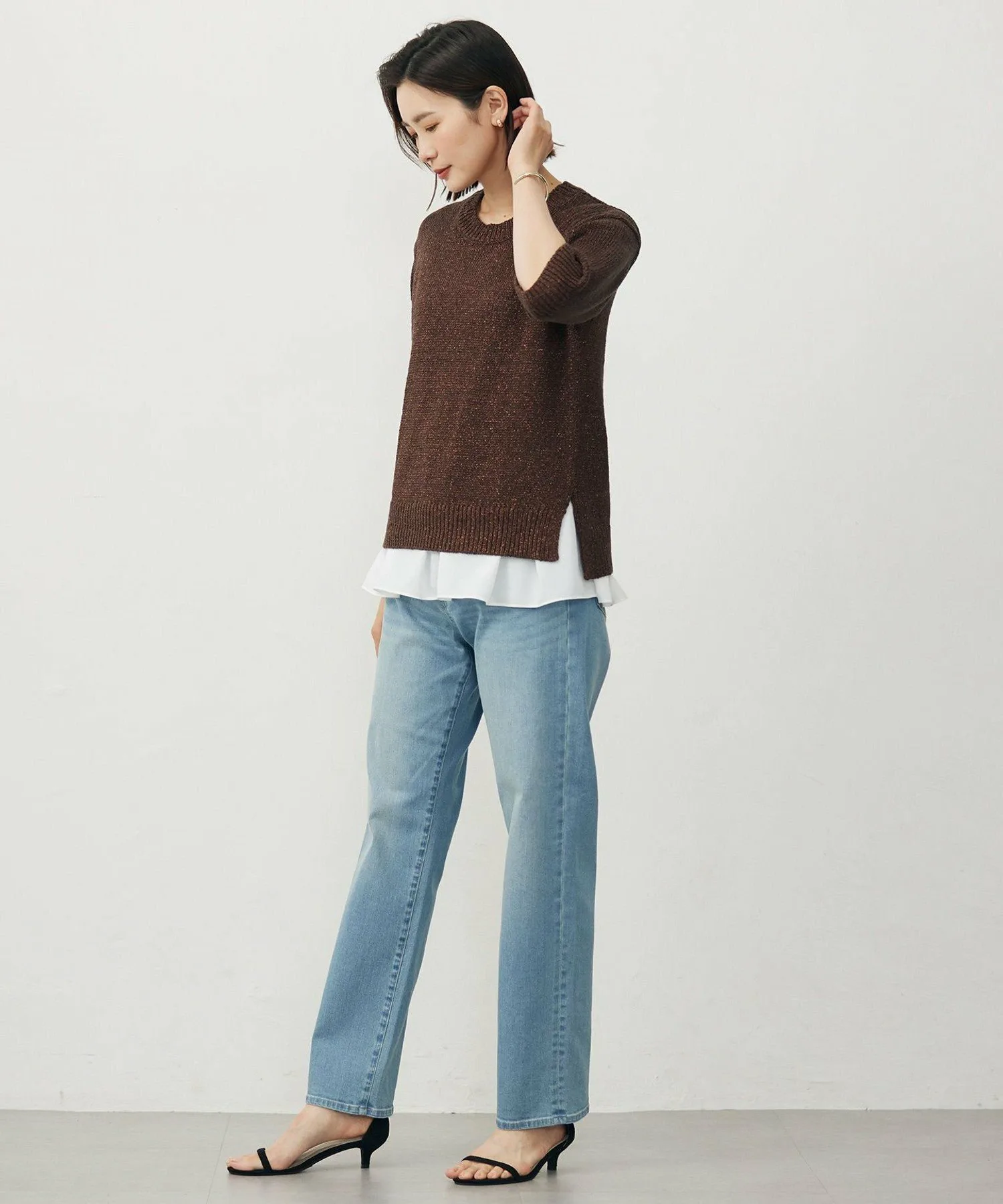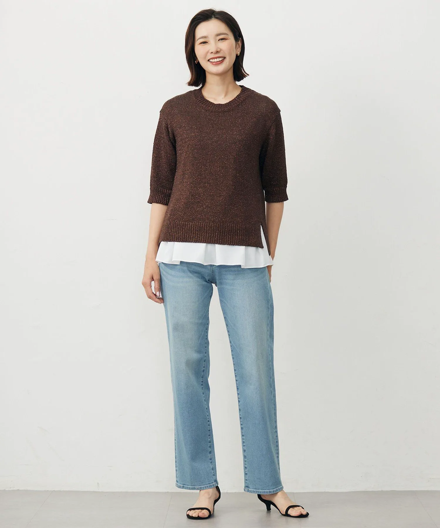 Дизайн: Этот трикотаж с блестками отличается легким мерцанием, создающим изысканный и элегантный образ. Немного удлиненные рукава, доходящие до локтей, деликатно скрывают предплечья и создают изысканный баланс, идеально подходящий для конца лета и осени. Силуэт не слишком облегающий, а размер привлекательный, отлично смотрится как заправленным, так и навыпуск. Этот трикотаж идеально подходит для переходного периода между сезонами, как в качестве самостоятельного элемента, так и в качестве нижнего слоя под куртку. Доступен в трех цветах: базовый, изысканный серебристо-серый (#003), сдержанный и комфортный цвет шампанского (#033) и изысканный, ненавязчивый темно-коричневый (#035).
