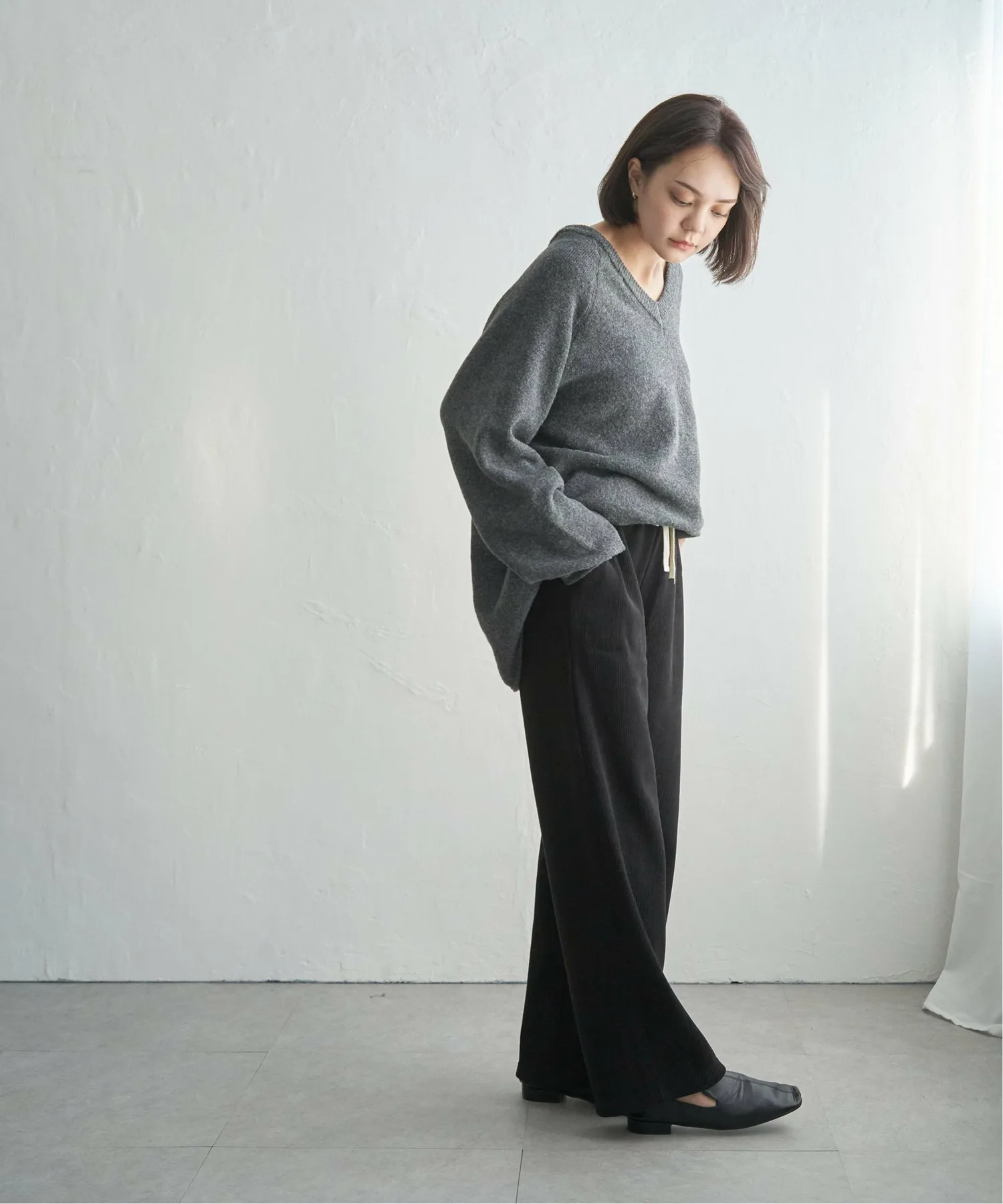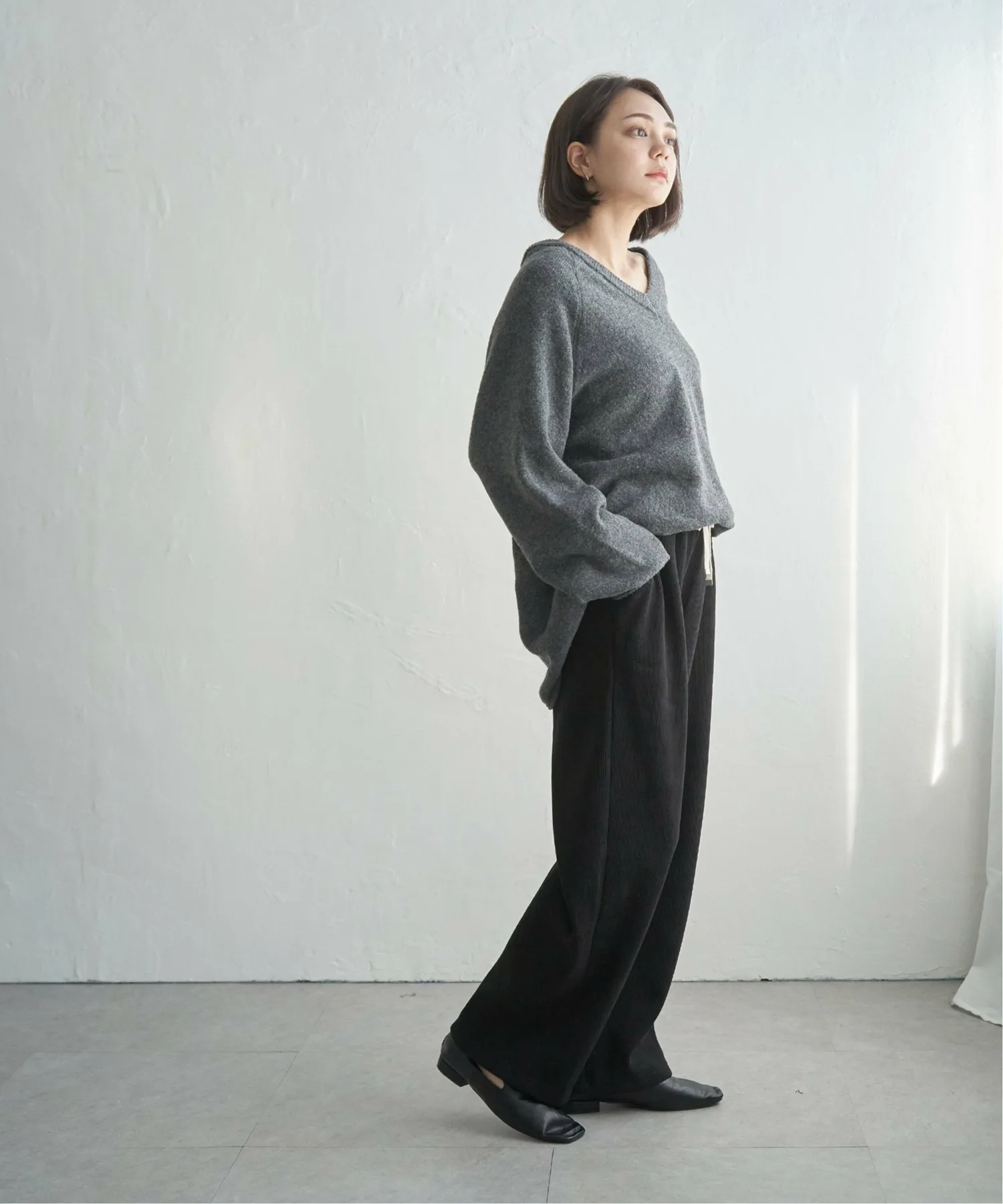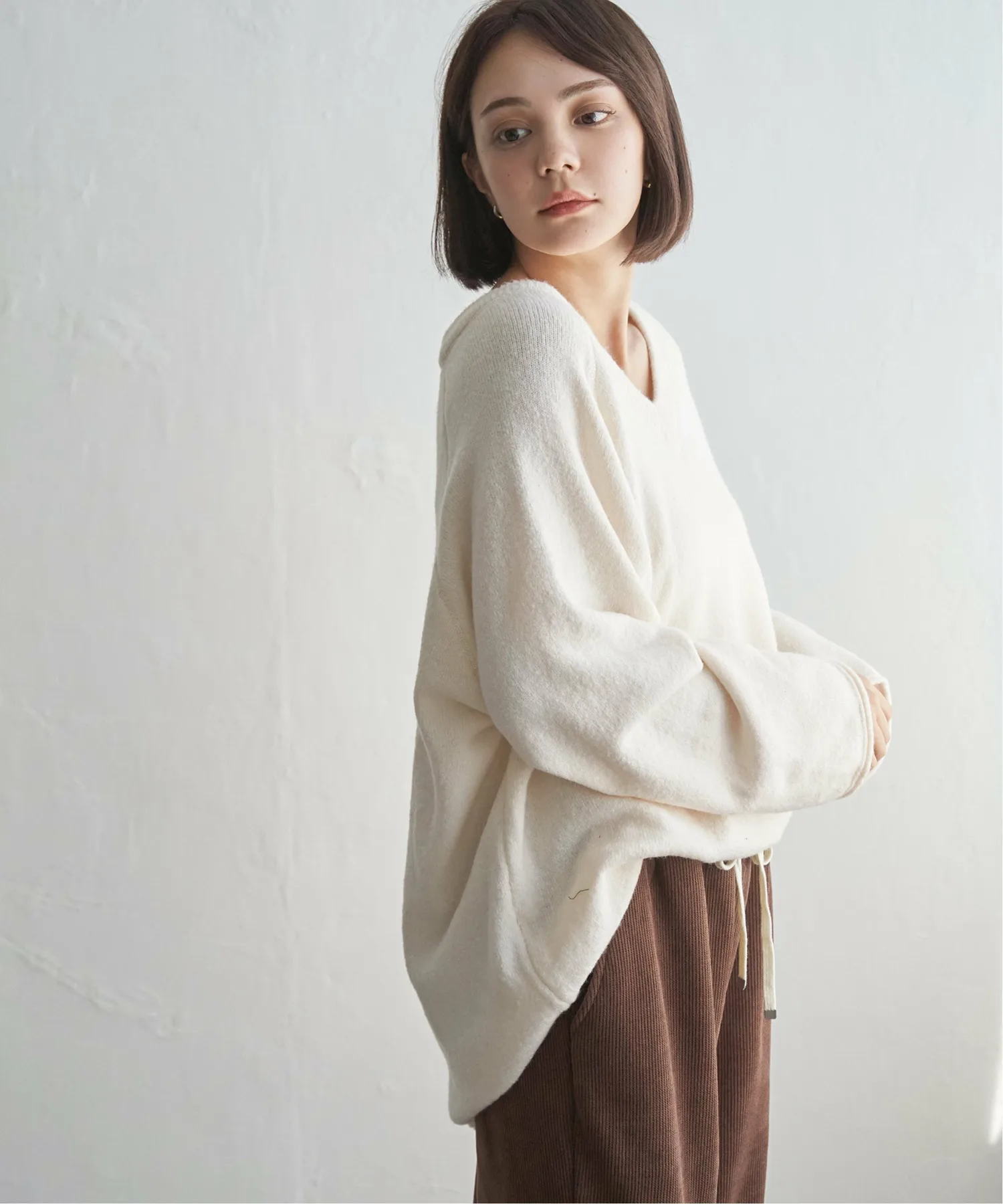 Широкий V-образный вырез создает аккуратный силуэт вокруг лица, а удлиненный низ придает ему вид туники.
