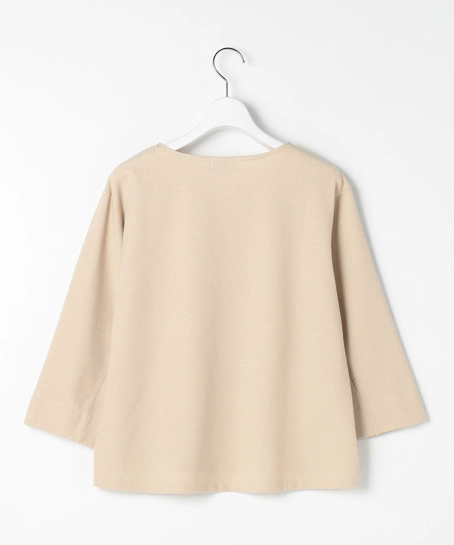Эта красивая сшитая вручную вещь отличается нежным блеском и тщательно продуманным силуэтом, что делает ее элегантной даже в качестве самостоятельного элемента одежды. Дизайн: Эта сшитая вручную вещь имеет слегка приспущенные плечи и передний боковой шов, создающий трехмерный силуэт. Длина передней и задней частей различается, а специальная строчка на проймах и задней части рукавов добавляет стиля. Благодаря оптимальному свободному крою, эта простая вещь идеально подходит как для самостоятельного ношения, так и в качестве нижнего слоя. Это универсальная вещь, расширяющая ваши возможности в гардеробе. Материал: Махровая ткань плотностью 24 нити на дюйм с элегантным блеском, содержащая ультратонкие блестки. Спинка связана таким образом, чтобы нити не соприкасались с кожей. В состав также входит эластичная пряжа для дополнительной гибкости и комфорта, при этом ткань сохраняет свою форму для большего удобства.