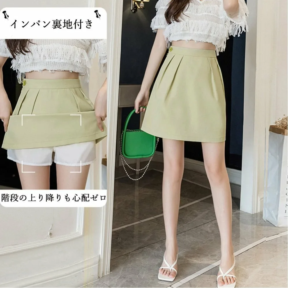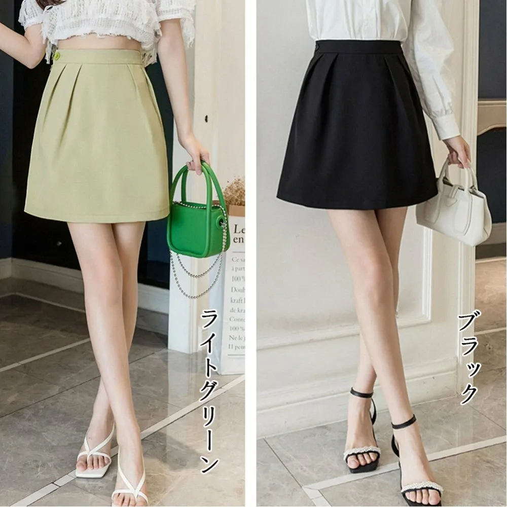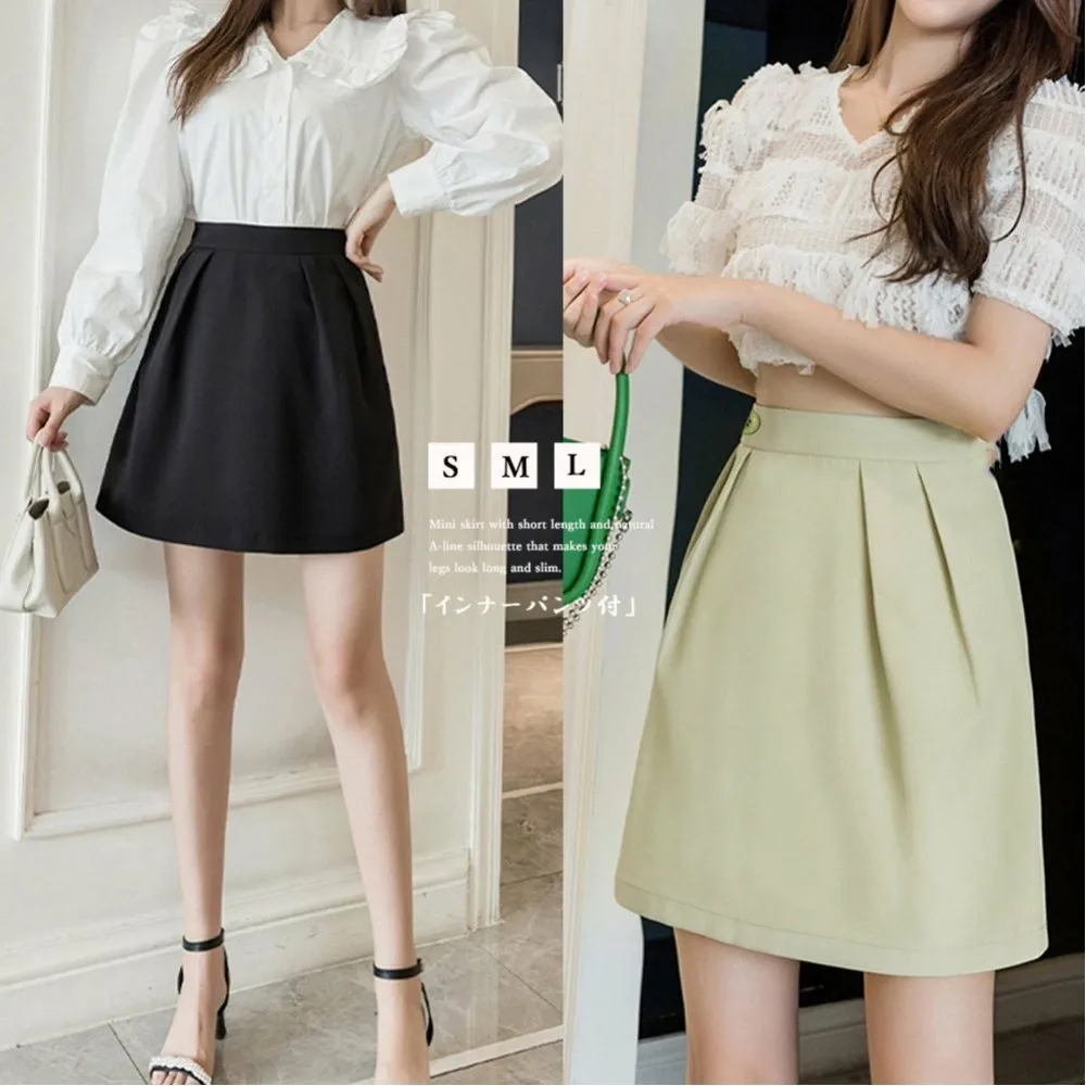 Мини-юбка А-силуэта с высокой талией и внутренними штанами, однотонная, в корейском стиле, милая и элегантная, короткая юбка, которая визуально удлиняет ноги.