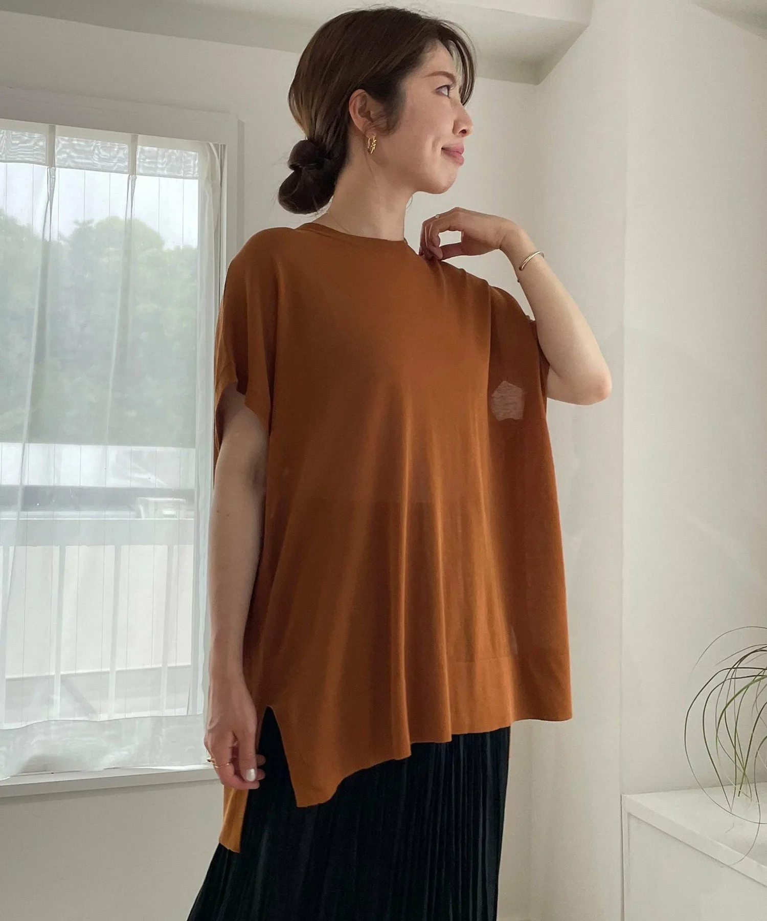 Дизайн: Этот длинный пуловер свободного кроя не облегает тело, а приспущенные плечи создают обтекаемый силуэт. Он приятен и освежает в носке.