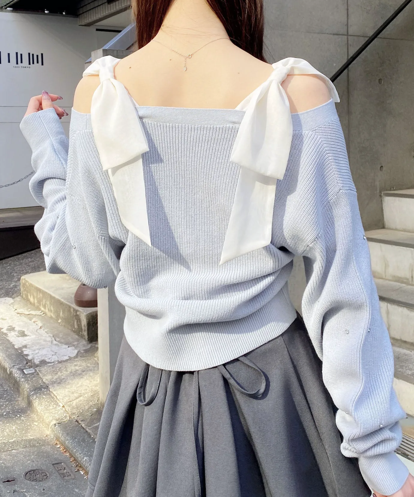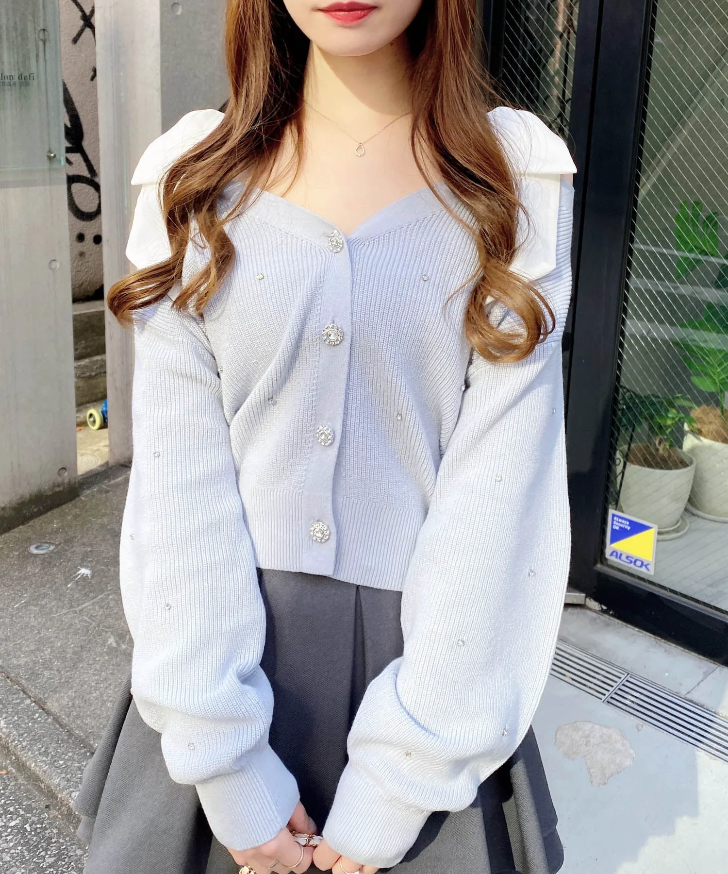 Этот кардиган выглядит мило благодаря ленточкам на плечах.
