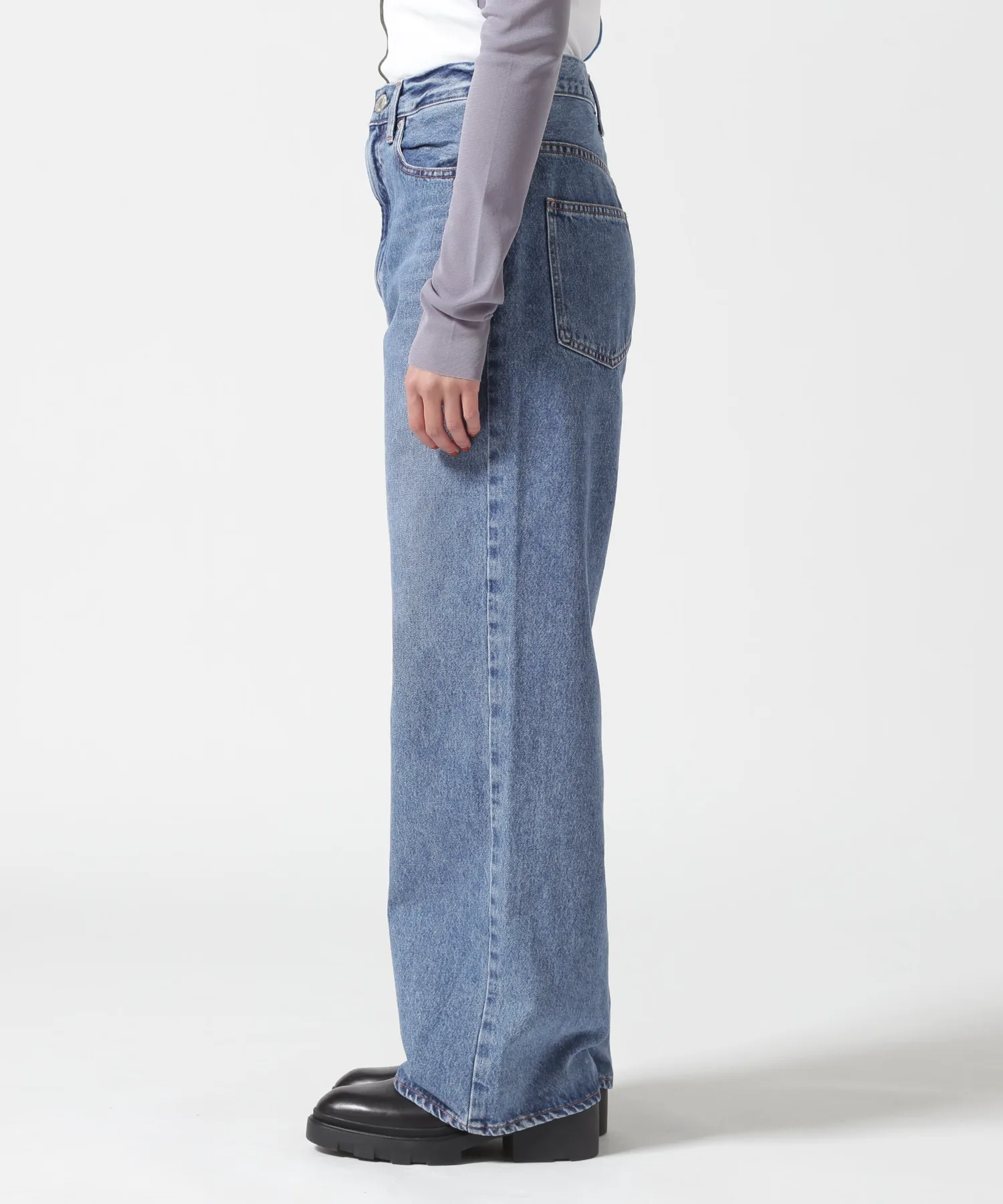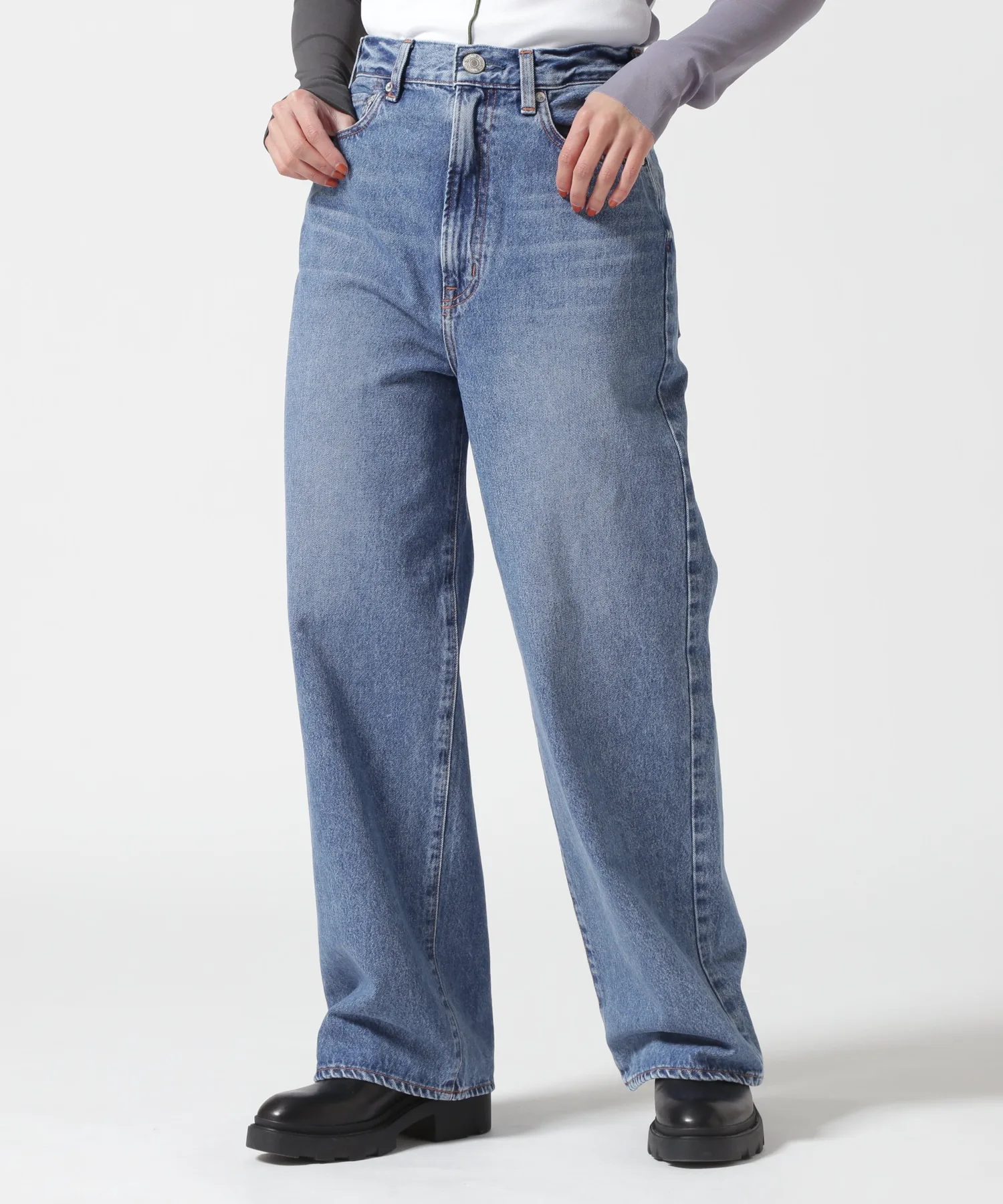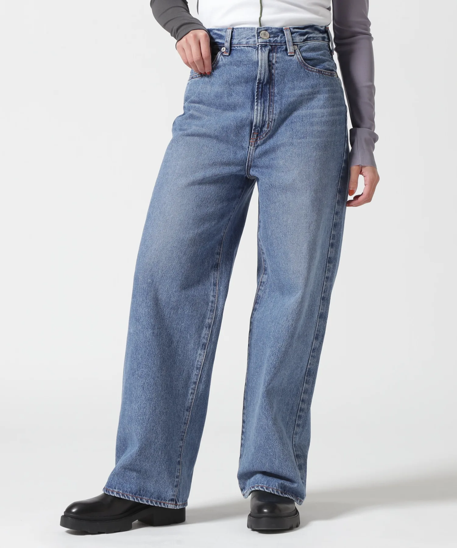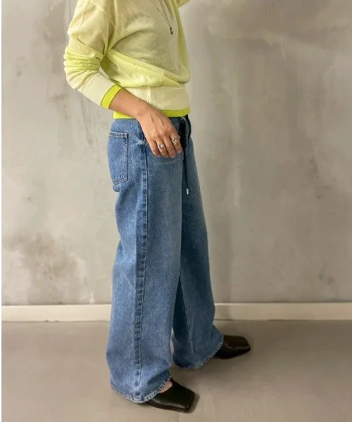 Несмотря на то, что они широкие от бедер до низа, они хорошо сидят на талии, создавая привлекательный силуэт. Они изготовлены из оригинальной джинсовой ткани NEEDBY с использованием пряжи открытого типа в качестве утка. При разработке учитывались принципы устойчивого производства и метод окрашивания i-Next. Путем многочисленных проб и ошибок нам удалось добиться характерной текстуры NEEDBY, одновременно снизив затраты (на обработку, энергию, производство и т. д.), в результате чего получилась ткань с винтажным оттенком, уникальная для продукции, произведенной в Японии.