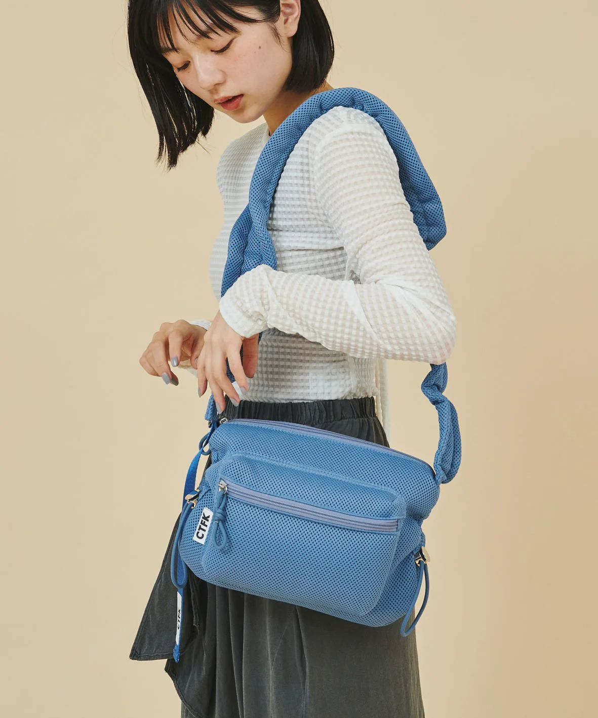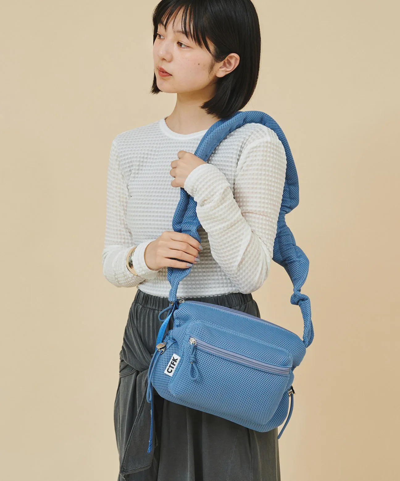 Популярная сумка через плечо с собранными чашечками теперь доступна в летнем сетчатом материале!