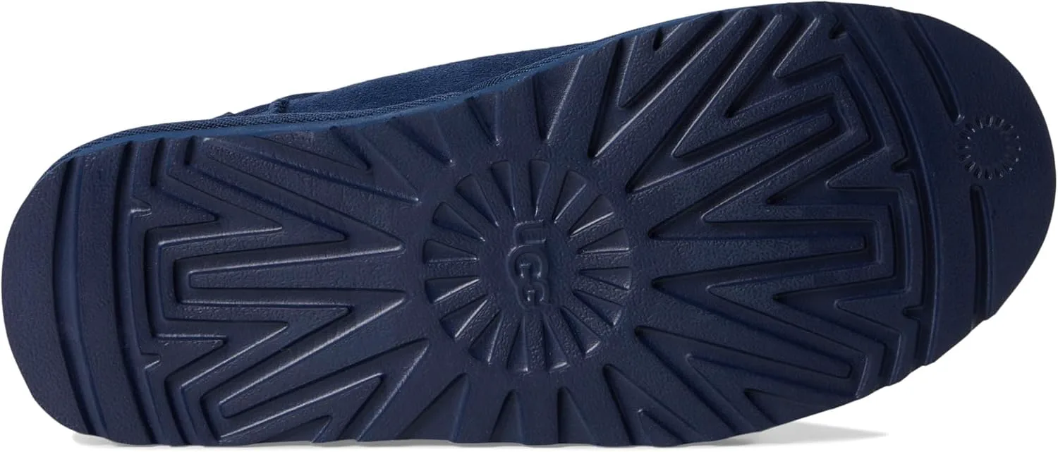 Верх из замши Подкладка из шерсти UGGplush толщиной 10 мм Стелька из овчины толщиной 10 мм Подошва Treadlite by UGG для комфорта Тканевая отделка из 100% переработанных полиэстеровых волокон
