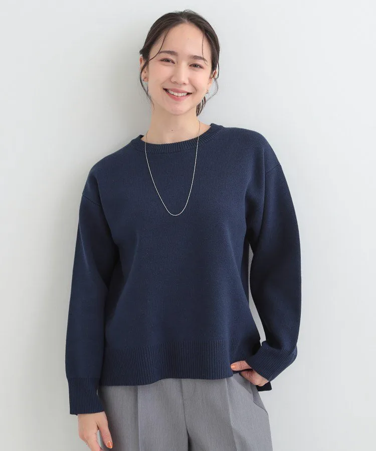 Трикотажная вещь с круглым вырезом горловины, не слишком открытым и не слишком узким.