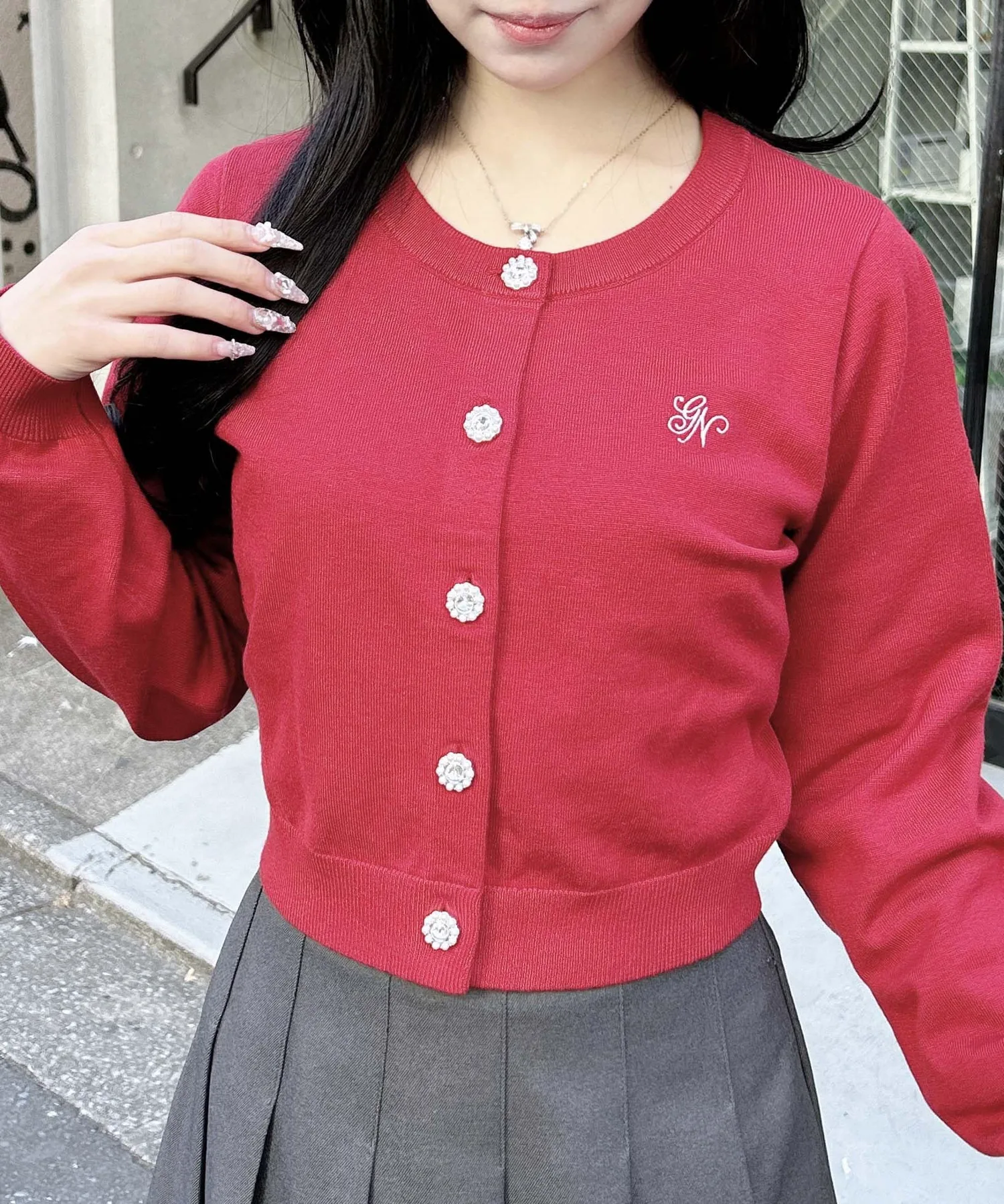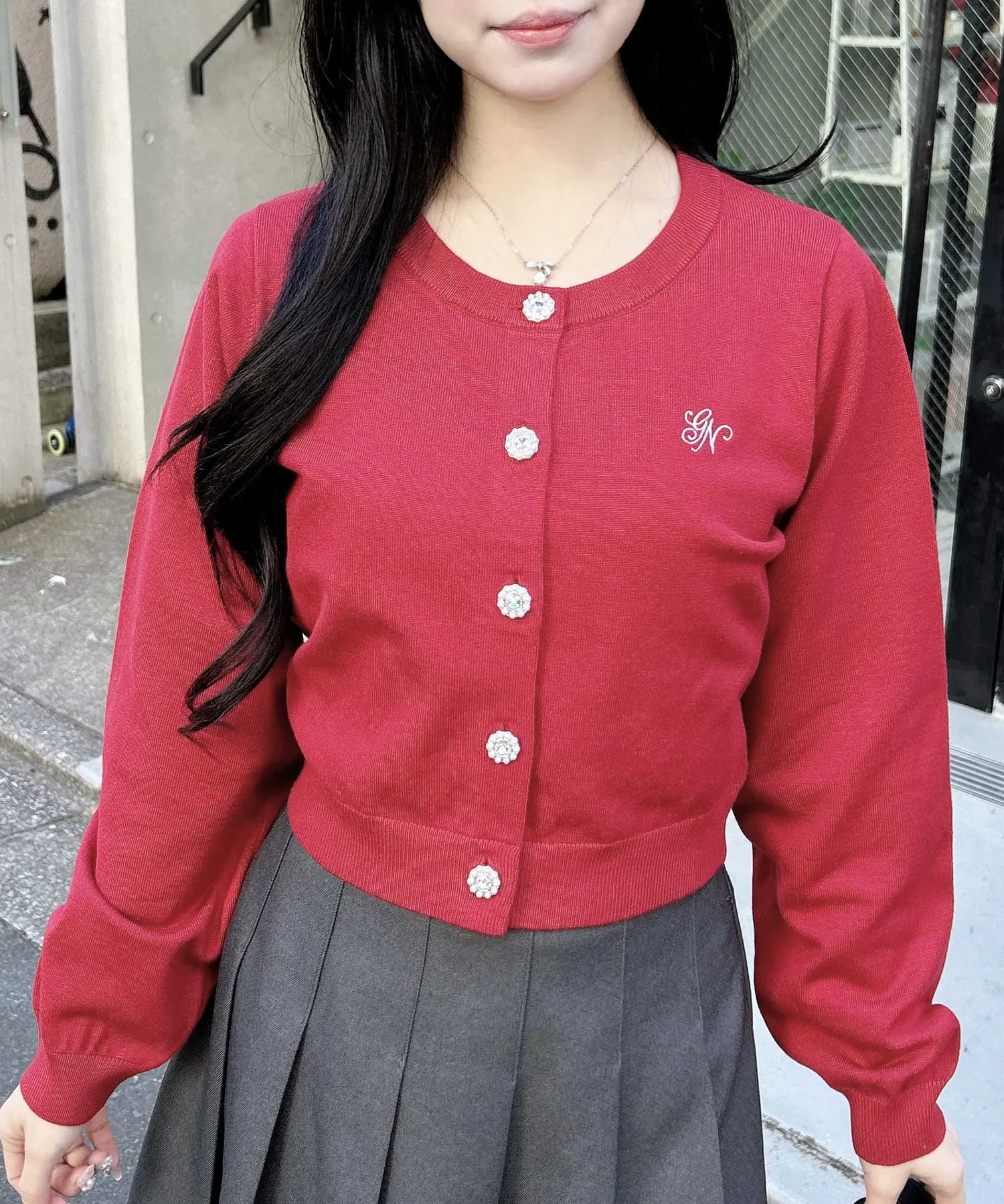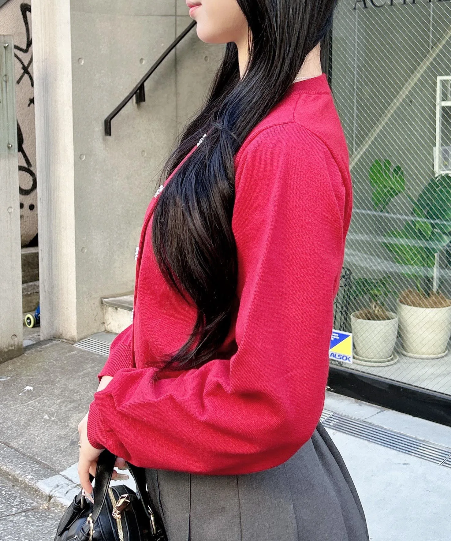 Вязаный кардиган с великолепными пуговицами, украшенными драгоценными камнями.