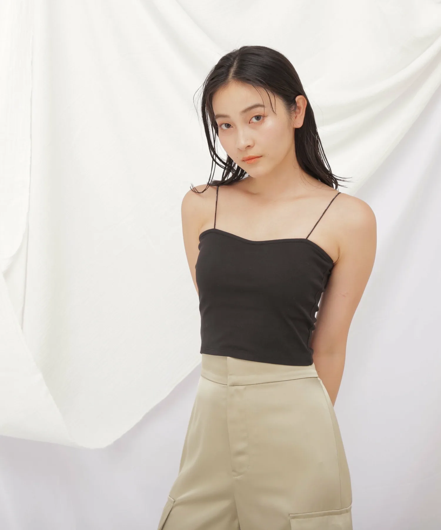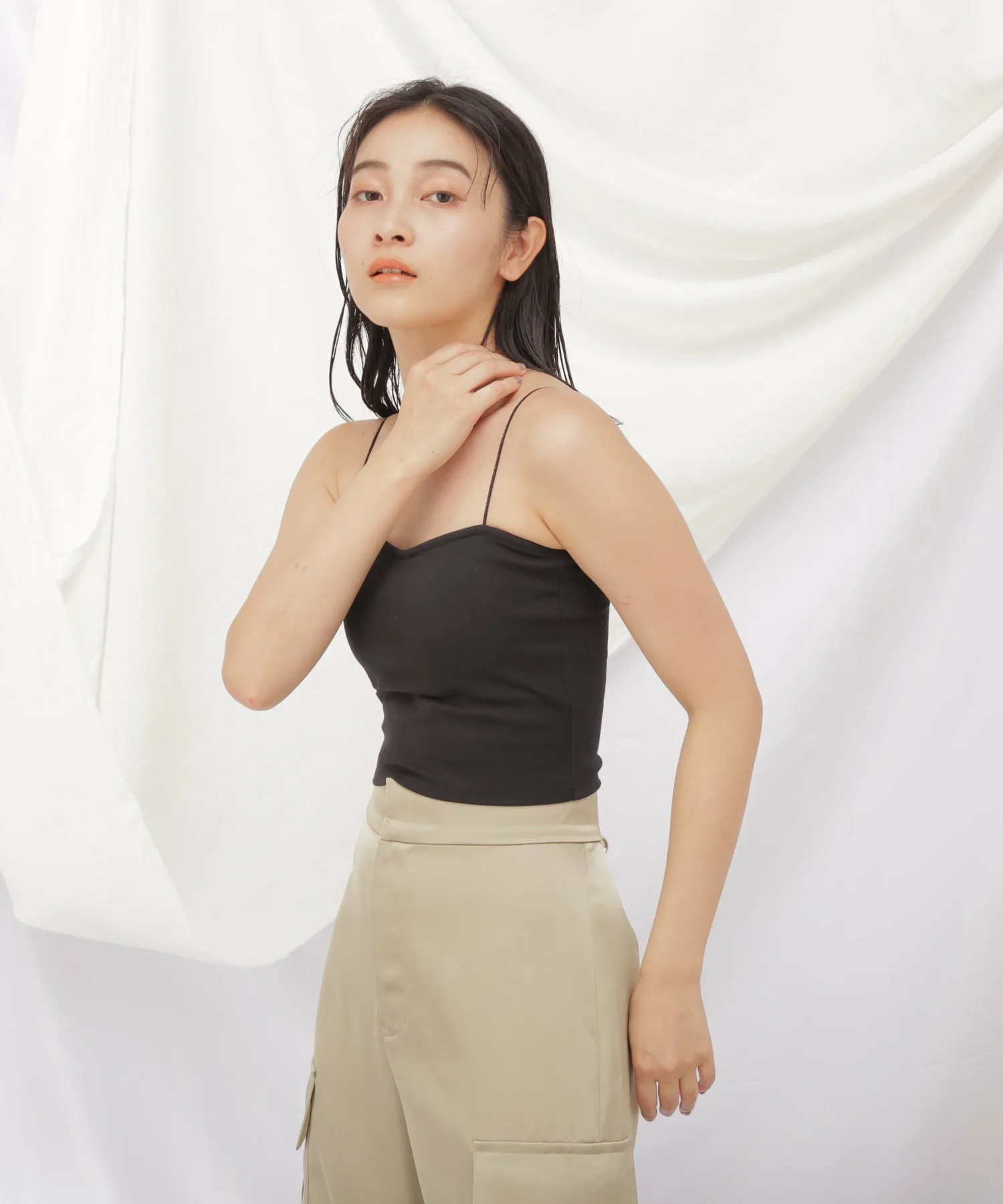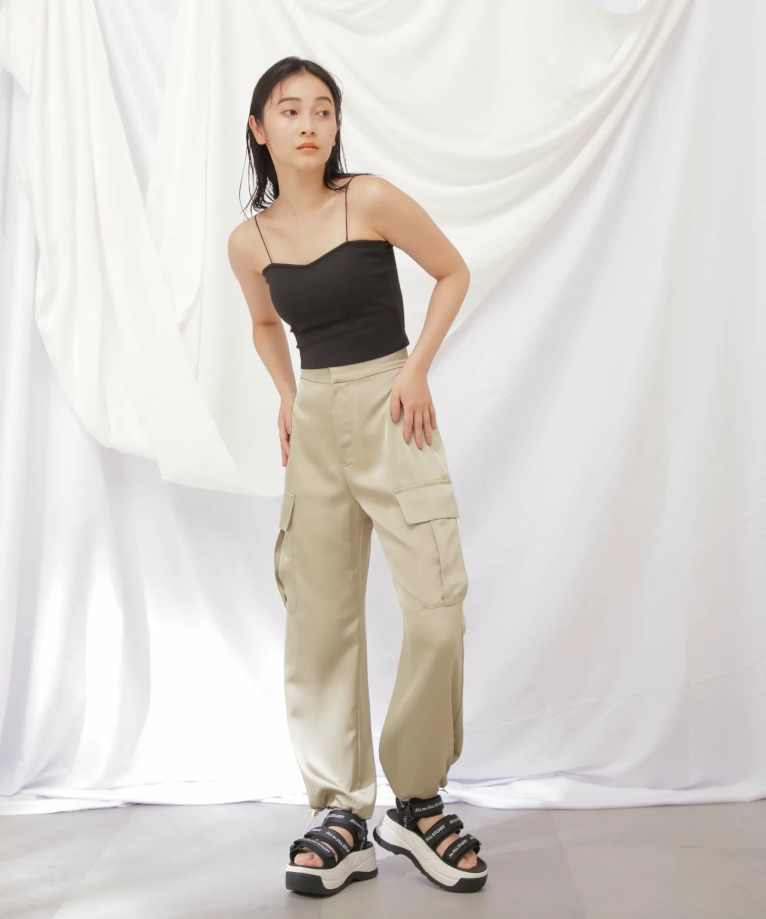 Простая, универсальная и незамысловатая майка с чашечками. Встроенные чашечки слева и справа предотвращают соскальзывание. Тонкие эластичные бретели украшены логотипом "JILL by JILL STUART". Бретели сзади заправлены, чтобы предотвратить их соскальзывание с плеч. Короткая длина обеспечивает компактность верхней части тела и идеально сочетается с одеждой с высокой талией. Также предотвращает прилипание одежды, надетой поверх майки. *Цвета могут выглядеть по-разному в зависимости от условий освещения во время фотосъемки.