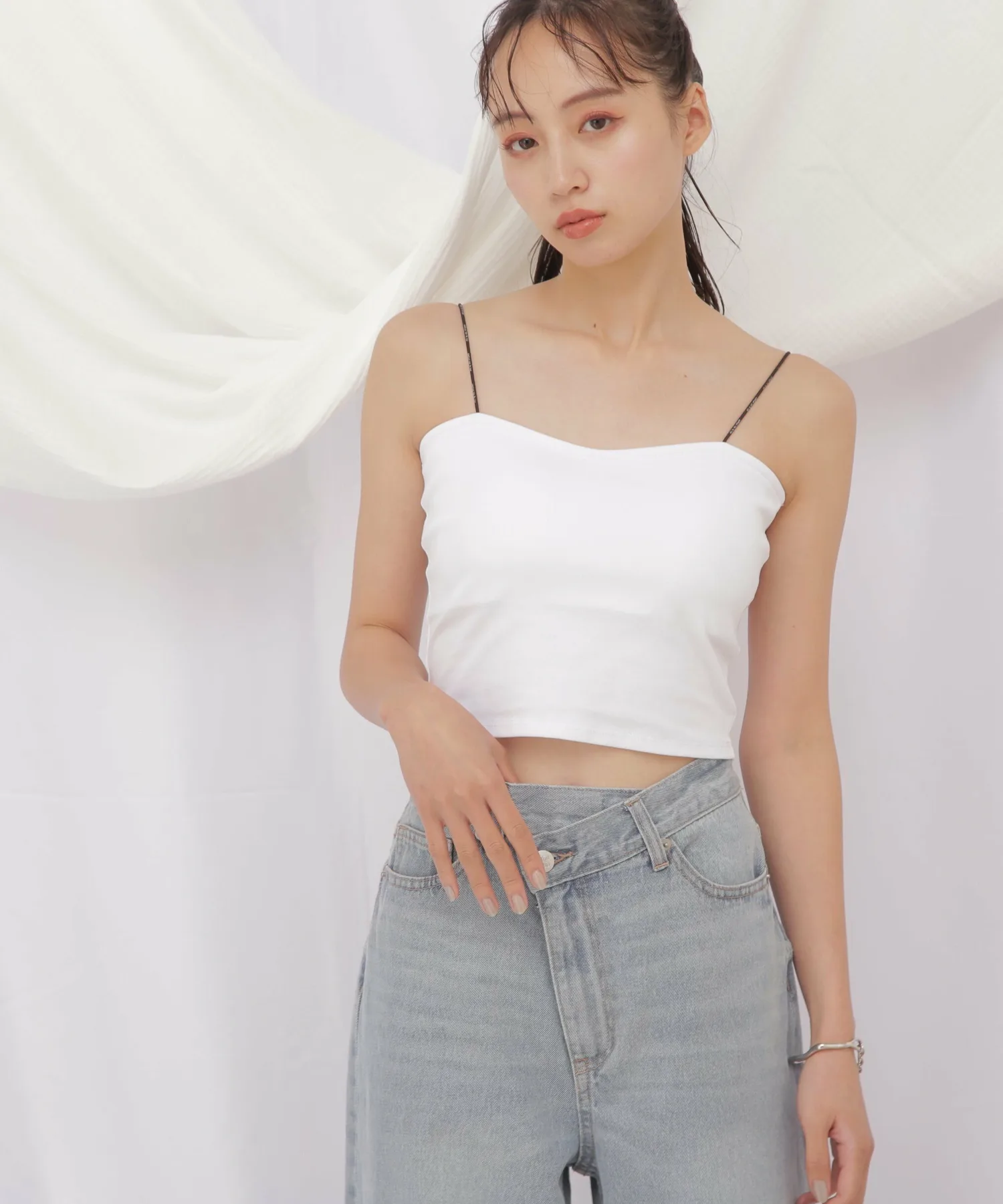 Простая, универсальная и незамысловатая майка с чашечками. Встроенные чашечки слева и справа предотвращают соскальзывание. Тонкие эластичные бретели украшены логотипом "JILL by JILL STUART". Бретели сзади заправлены, чтобы предотвратить их соскальзывание с плеч. Короткая длина обеспечивает компактность верхней части тела и идеально сочетается с одеждой с высокой талией. Также предотвращает прилипание одежды, надетой поверх майки. *Цвета могут выглядеть по-разному в зависимости от условий освещения во время фотосъемки.