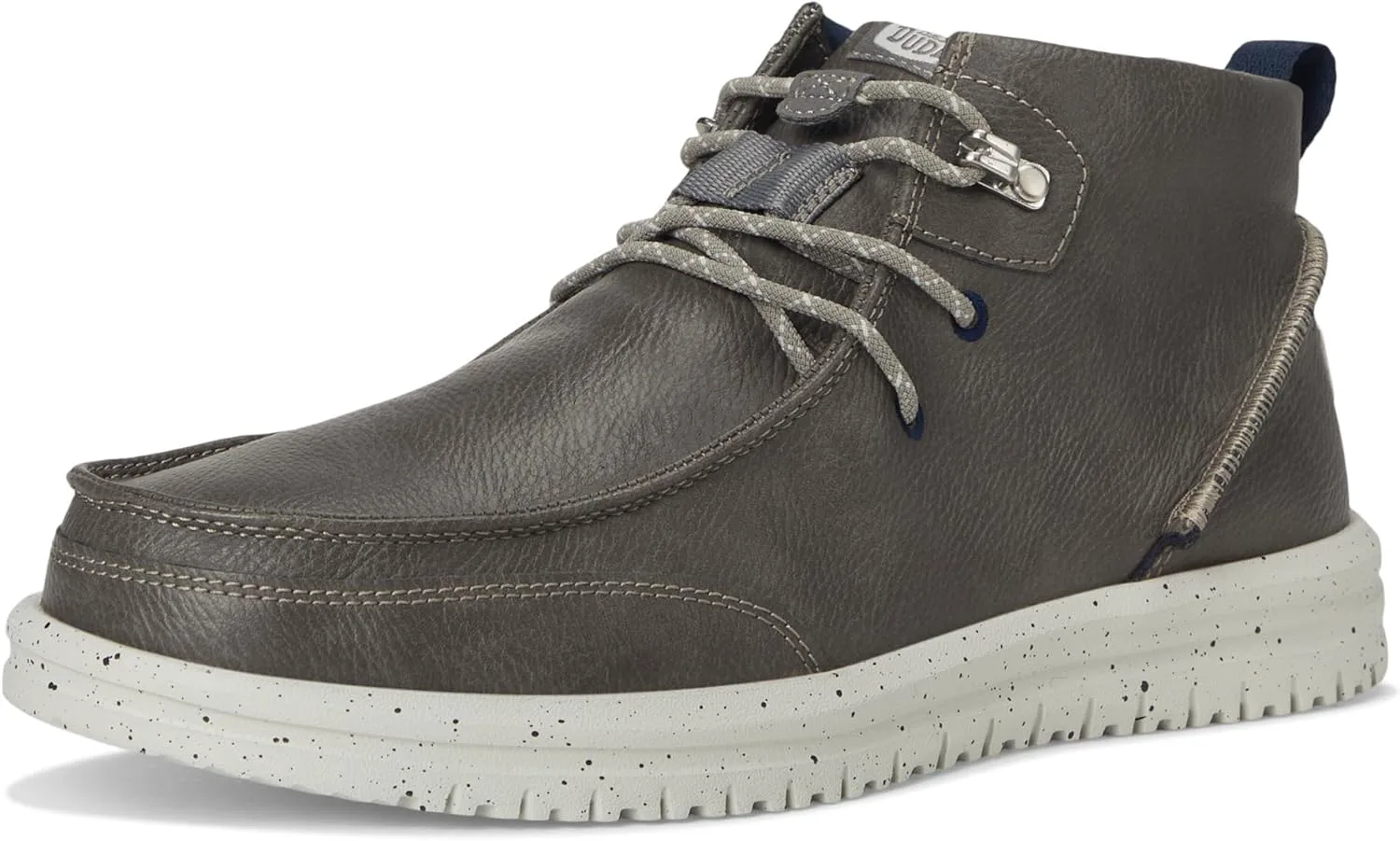 Ботинки Hey Dude Bradley Chukka разработаны с удобной петлей на пятке и эластичными шнурками-бунжи. Эти обувь с застежкой на шнурки обеспечивает легкое надевание и надежную посадку, а съемная стелька из пены обеспечивает амортизированную поддержку. Легкий и комфортный верх из текстильного синтетического материала. Подкладка из полиэстера. Закругленный носок и технология Flex & Fold: обеспечивает здоровье стоп благодаря уникальной форме и полной свободе движения. Профиль до щиколотки.