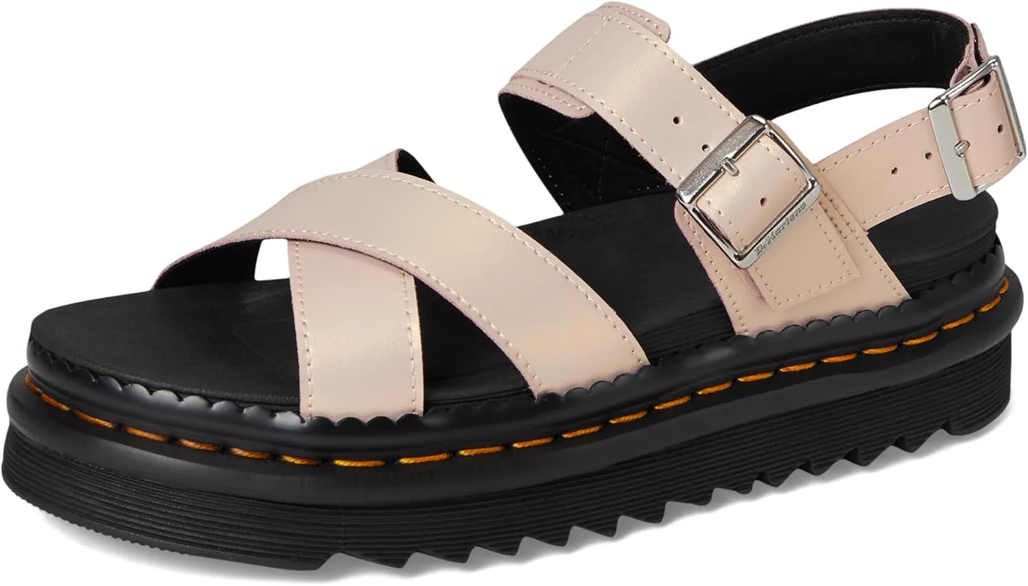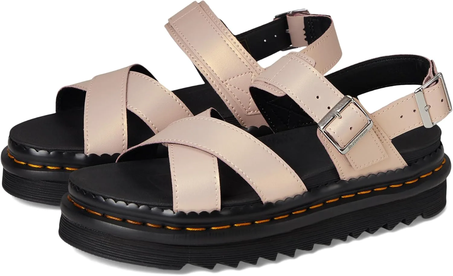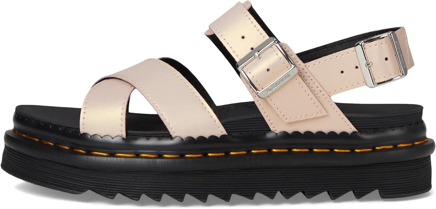 Сандалии Dr. Martens Voss II легкие и универсальные, идеально подходят для летних прогулок. Дизайн с перекрещивающимися ремешками фиксируется двумя регулируемыми ремешками на щиколотке. Созданы для комфорта в течение долгого дня, они оснащены стелькой с памятью SoftWair и сверхлегкой подошвой EVA Zebrilus. Зубчатая подошва имеет канавки и закреплена фирменной желтой строчкой DM, которая легко узнаваема.