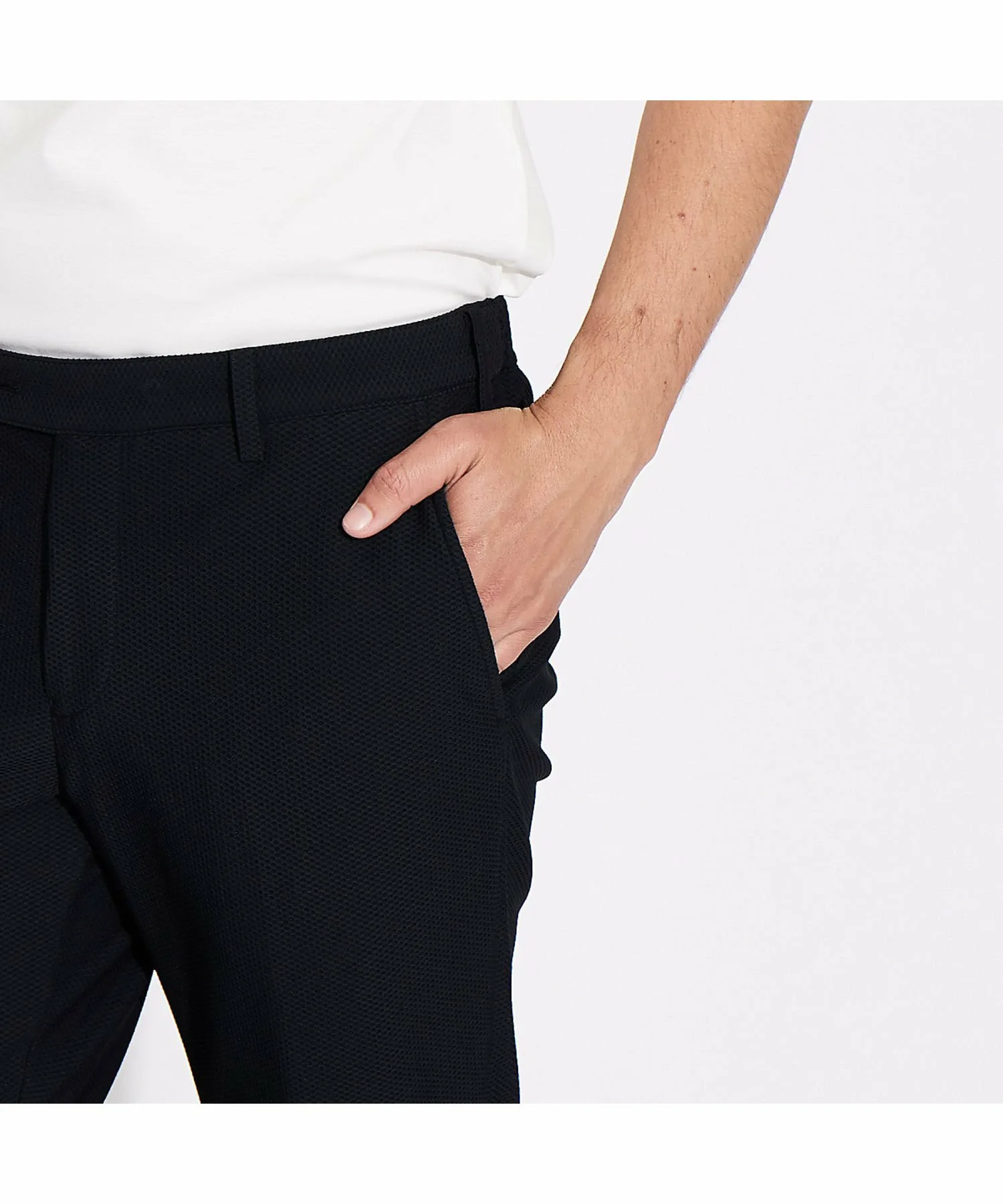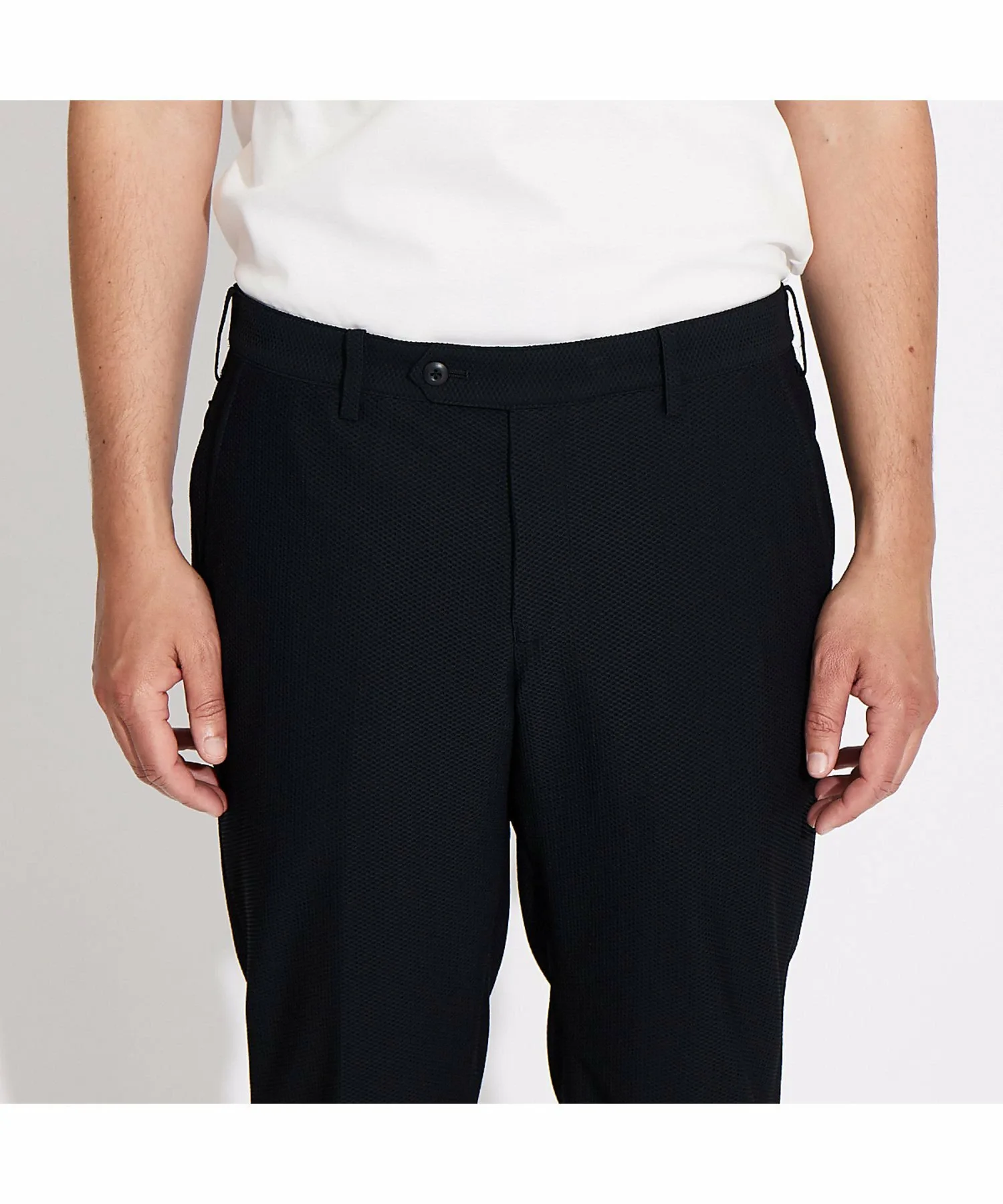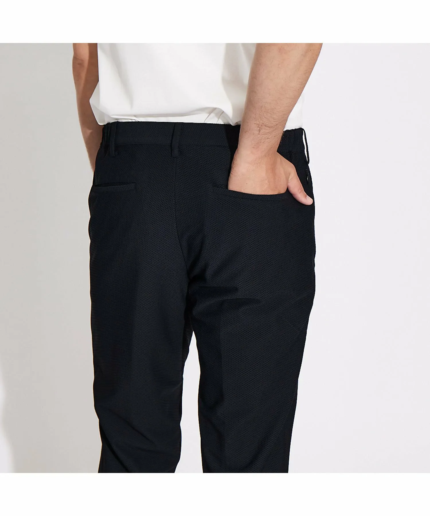Эти сетчатые брюки имеют сотовую структуру плетения, которая обеспечивает высокую воздухопроницаемость и эластичность. Они легко пропускают воздух, сохраняя сухость и комфорт с начала лета до середины лета. Зауженный низ создает привлекательный силуэт, подходящий к любому стилю, а эластичный материал обеспечивает комфортную посадку.