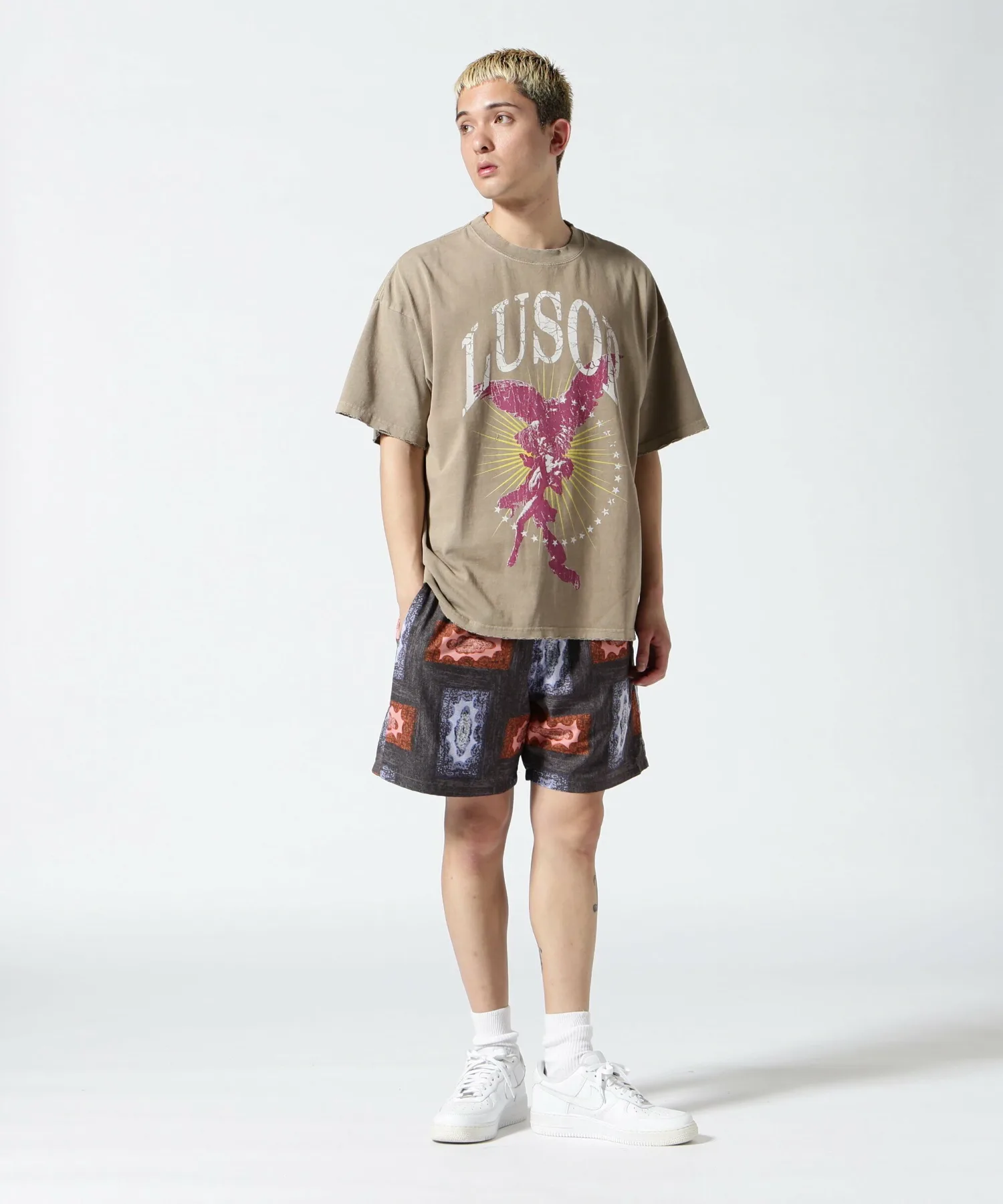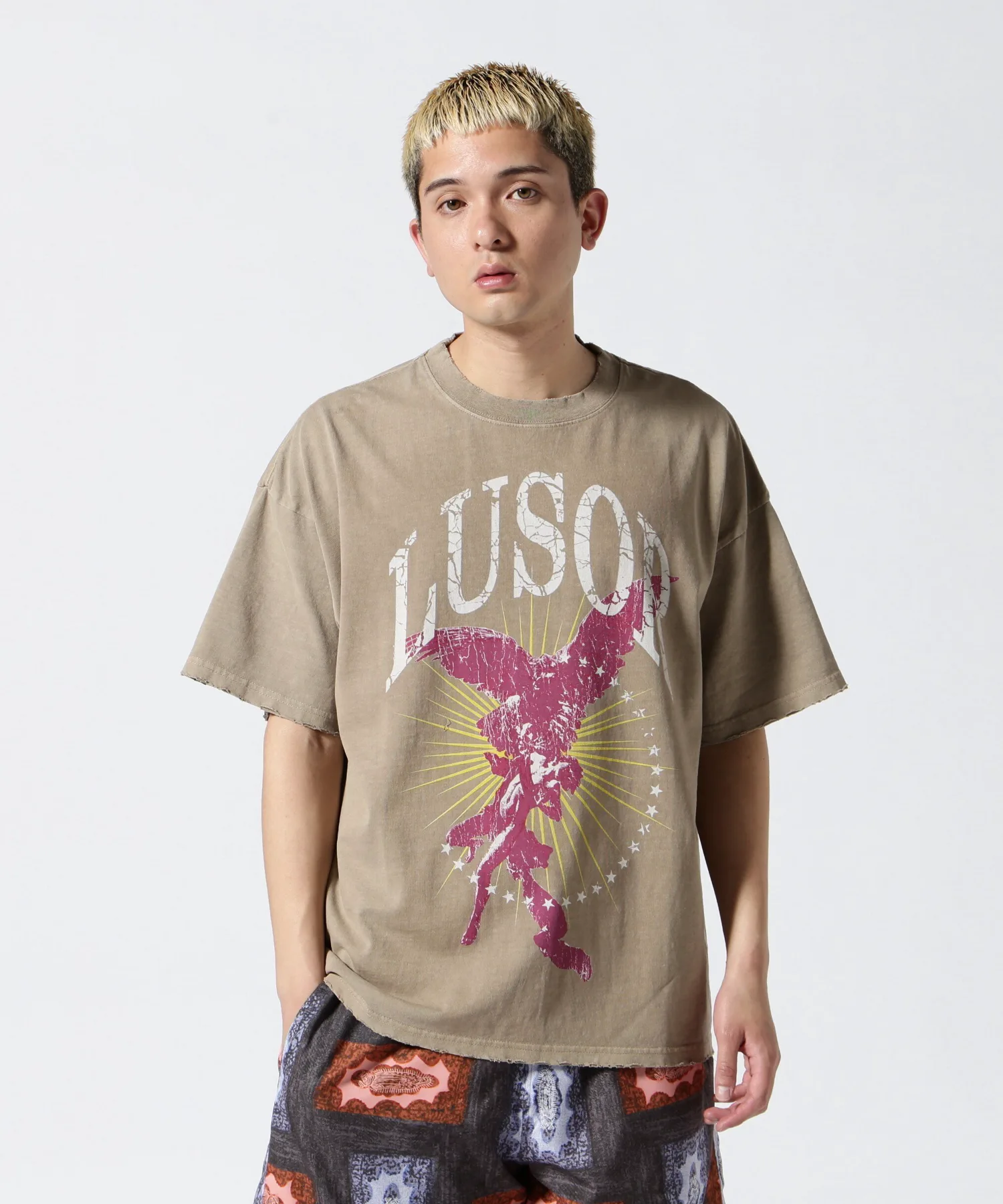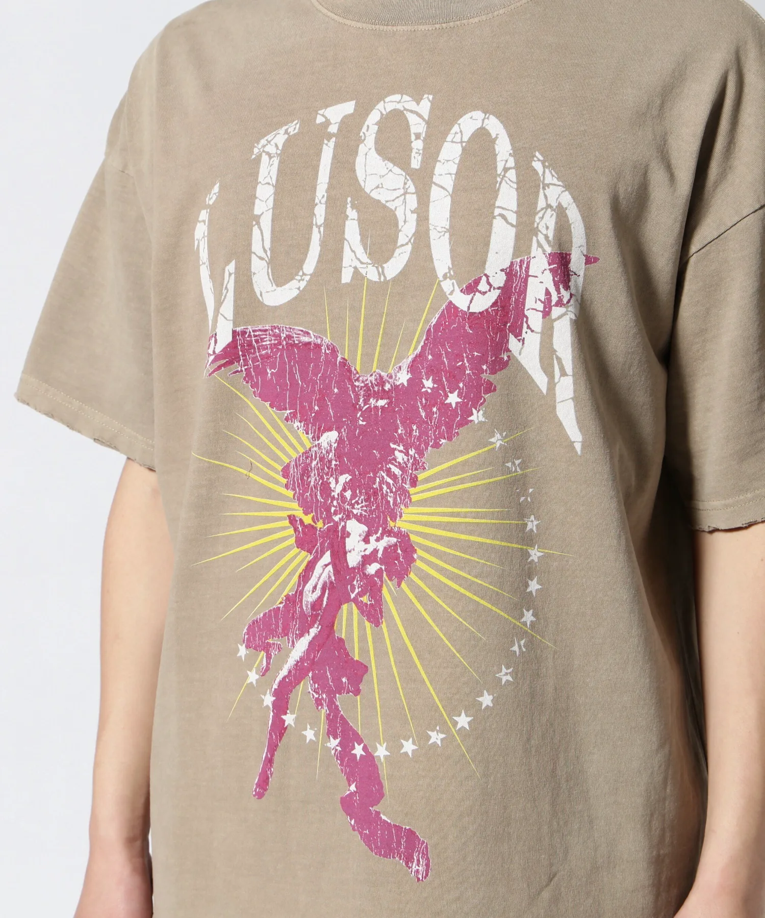 Футболка, специально разработанная с американским повседневным дизайном и винтажным эффектом потертости.