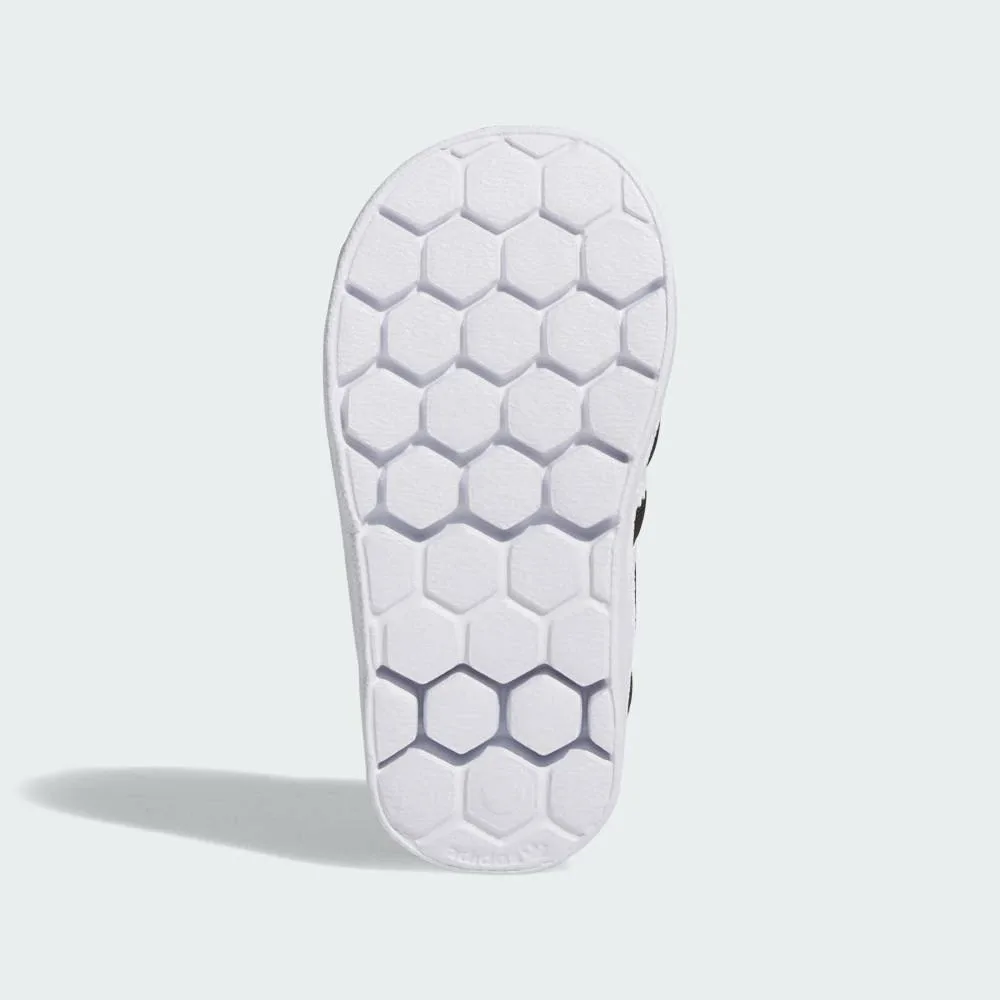 У вас есть время завязывать шнурки? У детей — нет. Эти детские кроссовки имеют цельную конструкцию, благодаря чему их быстро надевать, даже для непоседливых маленьких ножек. Гибкая амортизация из ЭВА обеспечивает комфорт и подвижность детских ножек. Прежде чем ваш ребенок выйдет из дома, наденьте на него эти культовые кроссовки. Верхняя часть этих кроссовок изготовлена более чем на 50% из переработанных материалов, что является частью стремления adidas к достижению нулевого уровня пластиковых отходов.