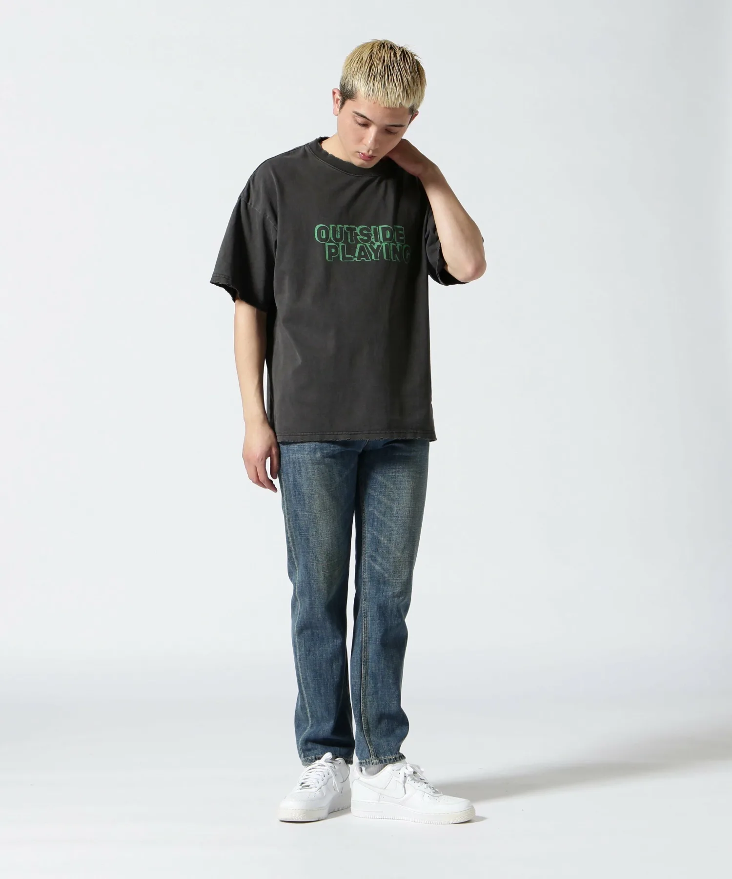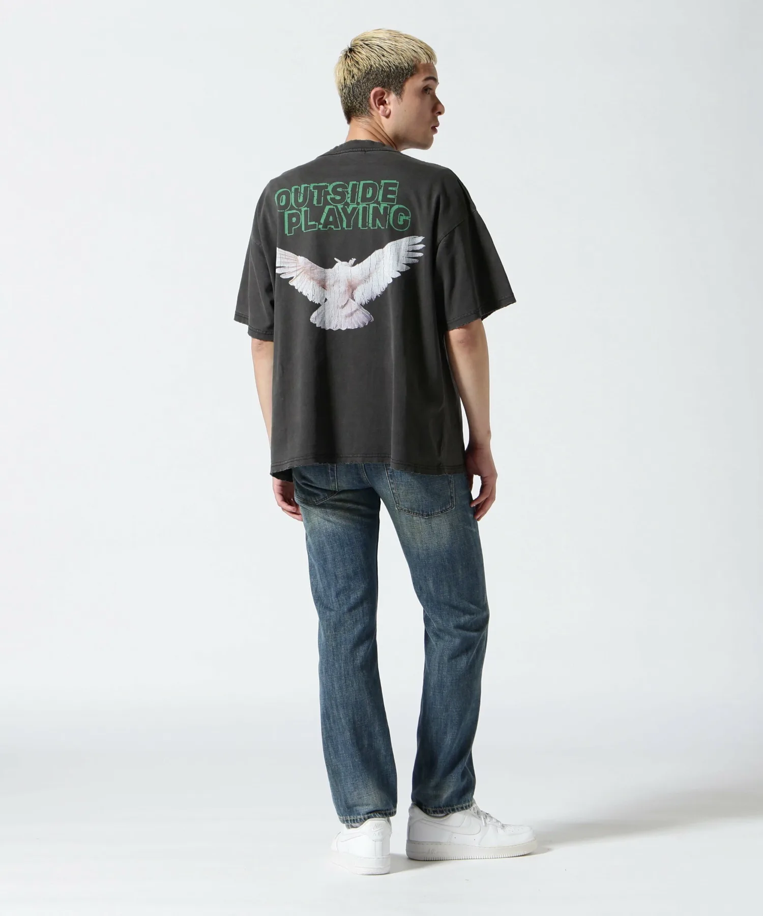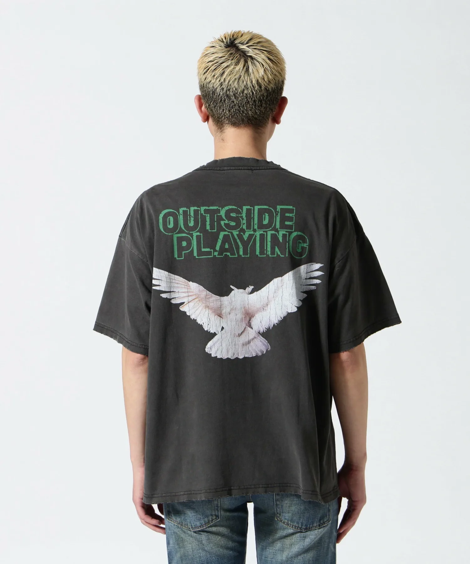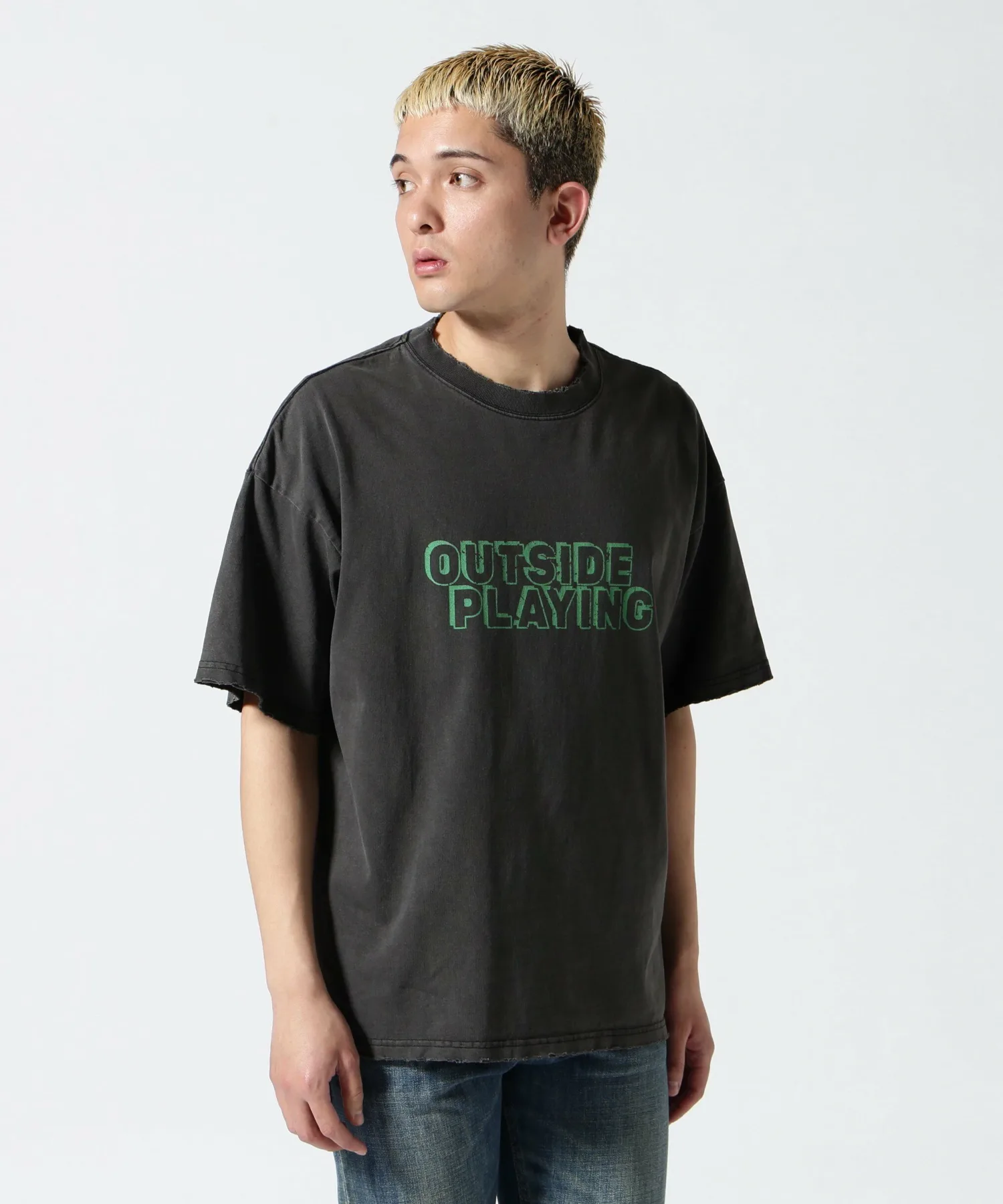 Футболка, специально разработанная с американским повседневным дизайном и винтажным эффектом потертости.