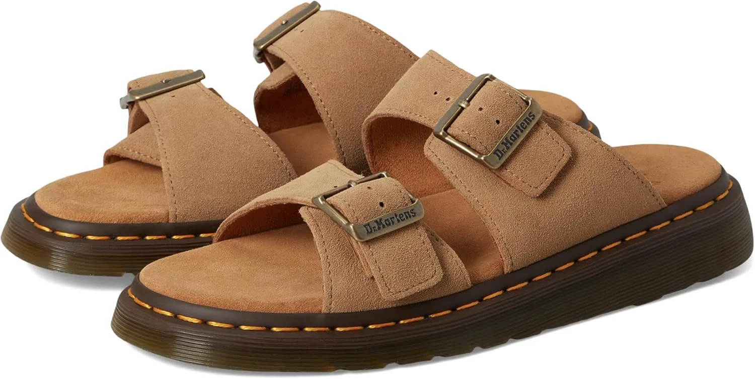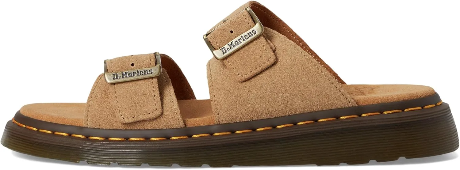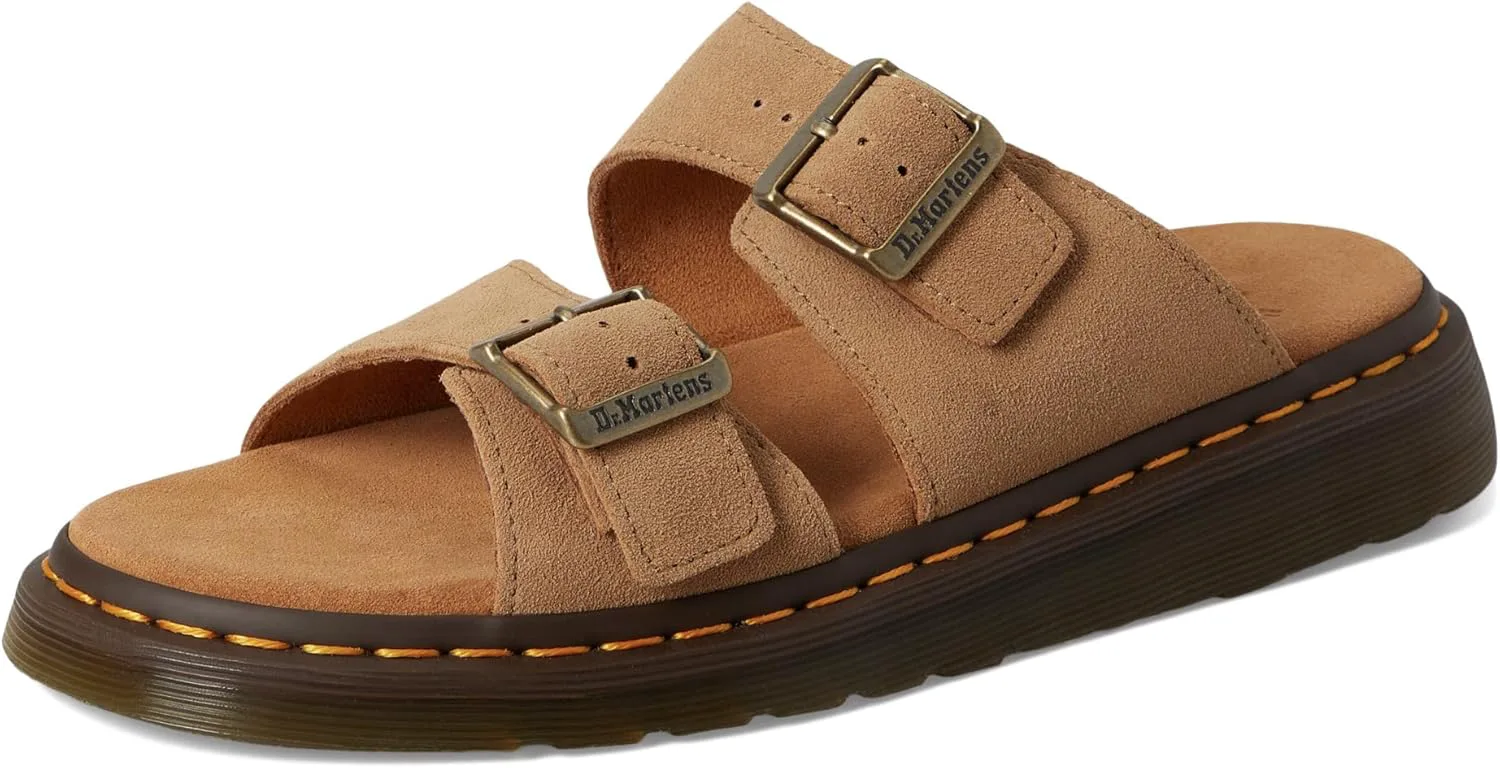 Josef - это универсальные сандалии для любого случая. Легко надевать и просто сочетать с разной одеждой. Оснащены двумя регулируемыми пряжками и стелькой из поролона, покрытой замшей, для комфортного отдыха в летние дни. Кромка подошвы украшена классической канавкой DM и закреплена желтой строчкой.