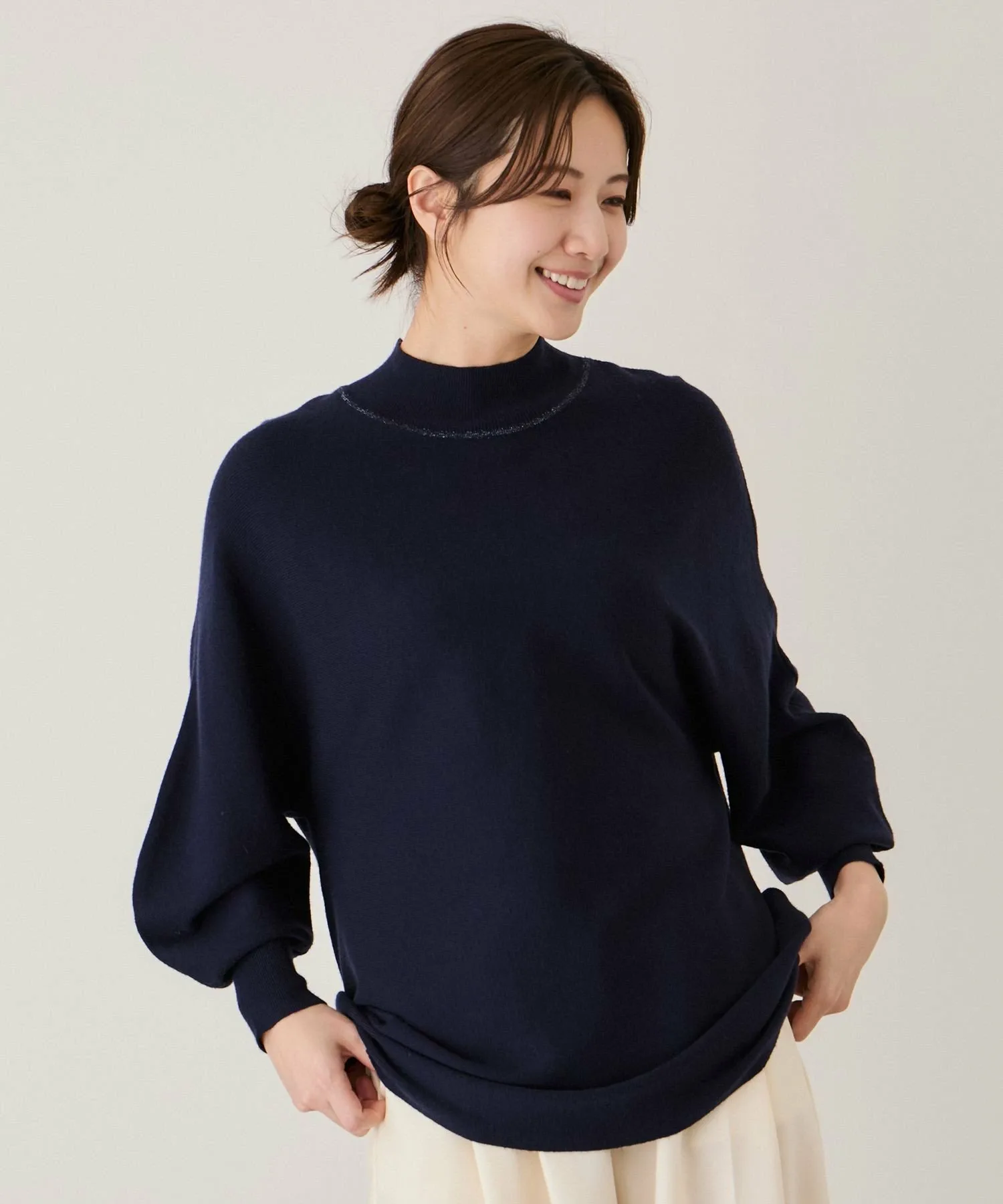 "Просто наденьте его, и вы мгновенно будете выглядеть изысканно. Изысканный трикотаж с высоким воротником, изготовленный из высококачественных материалов" [Дизайн/Силуэт]