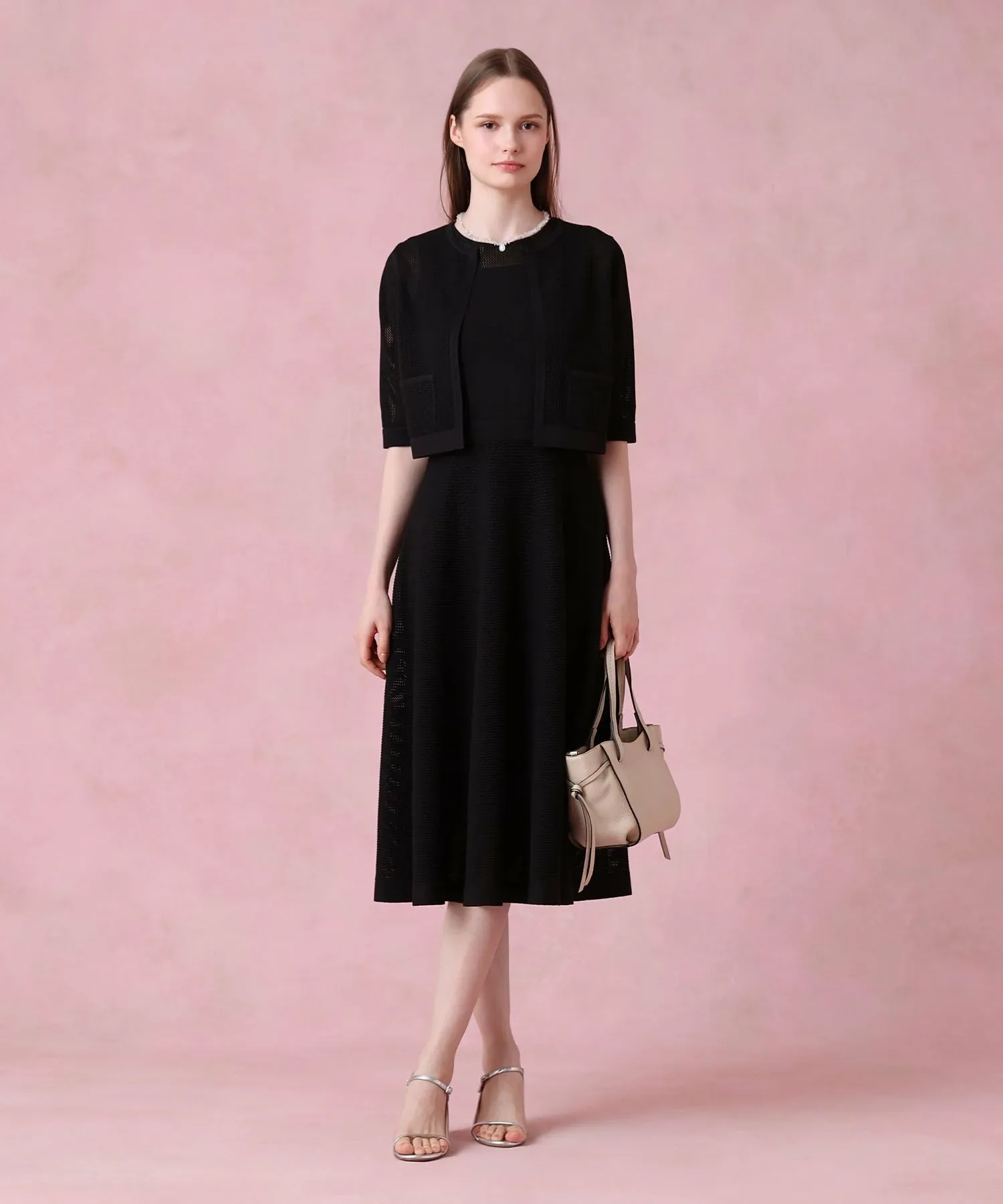 Рекомендуем носить его в комплекте с коротким кардиганом из того же материала (