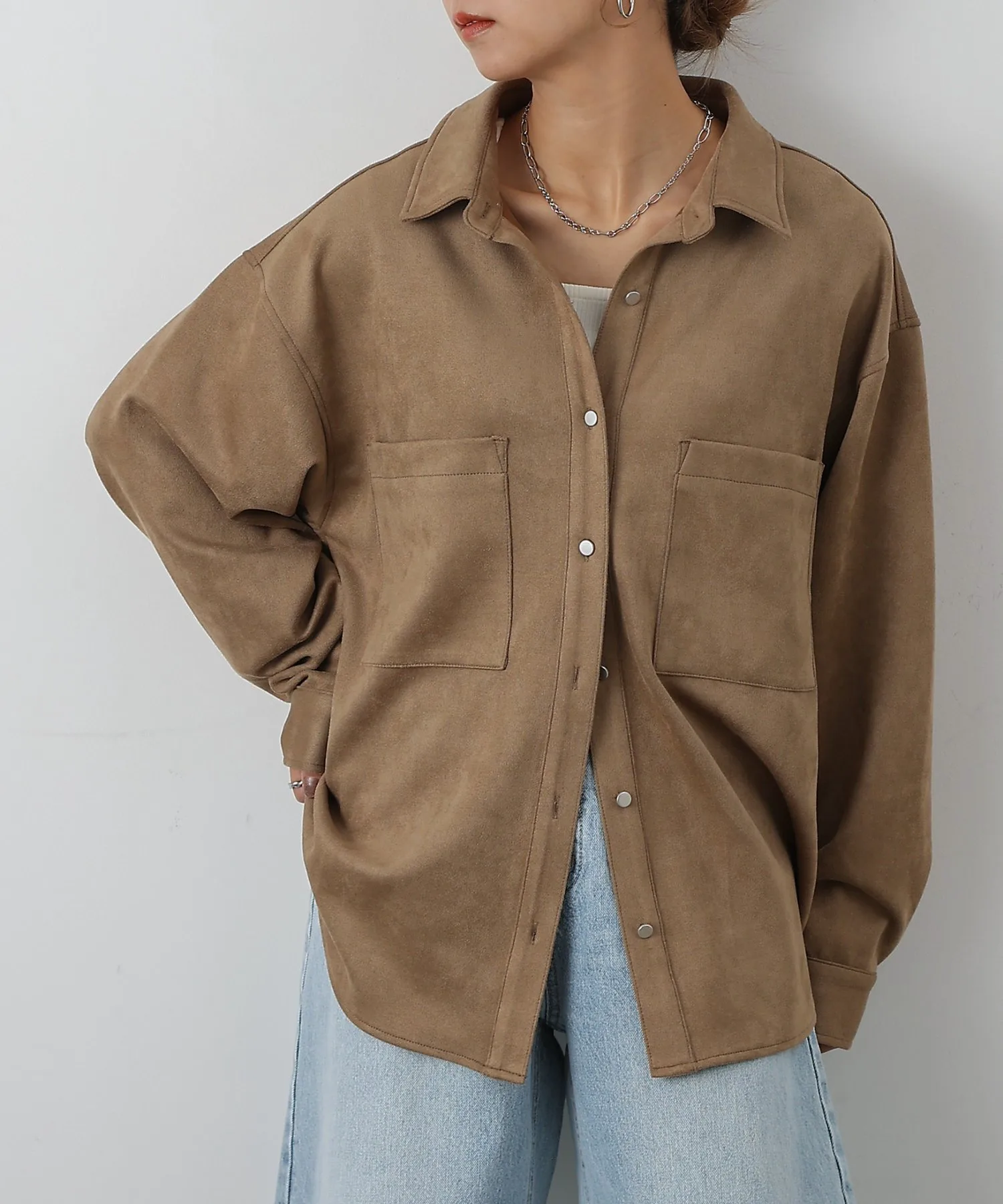 Рубашка из ткани понте, напоминающей замшу, для элегантного образа