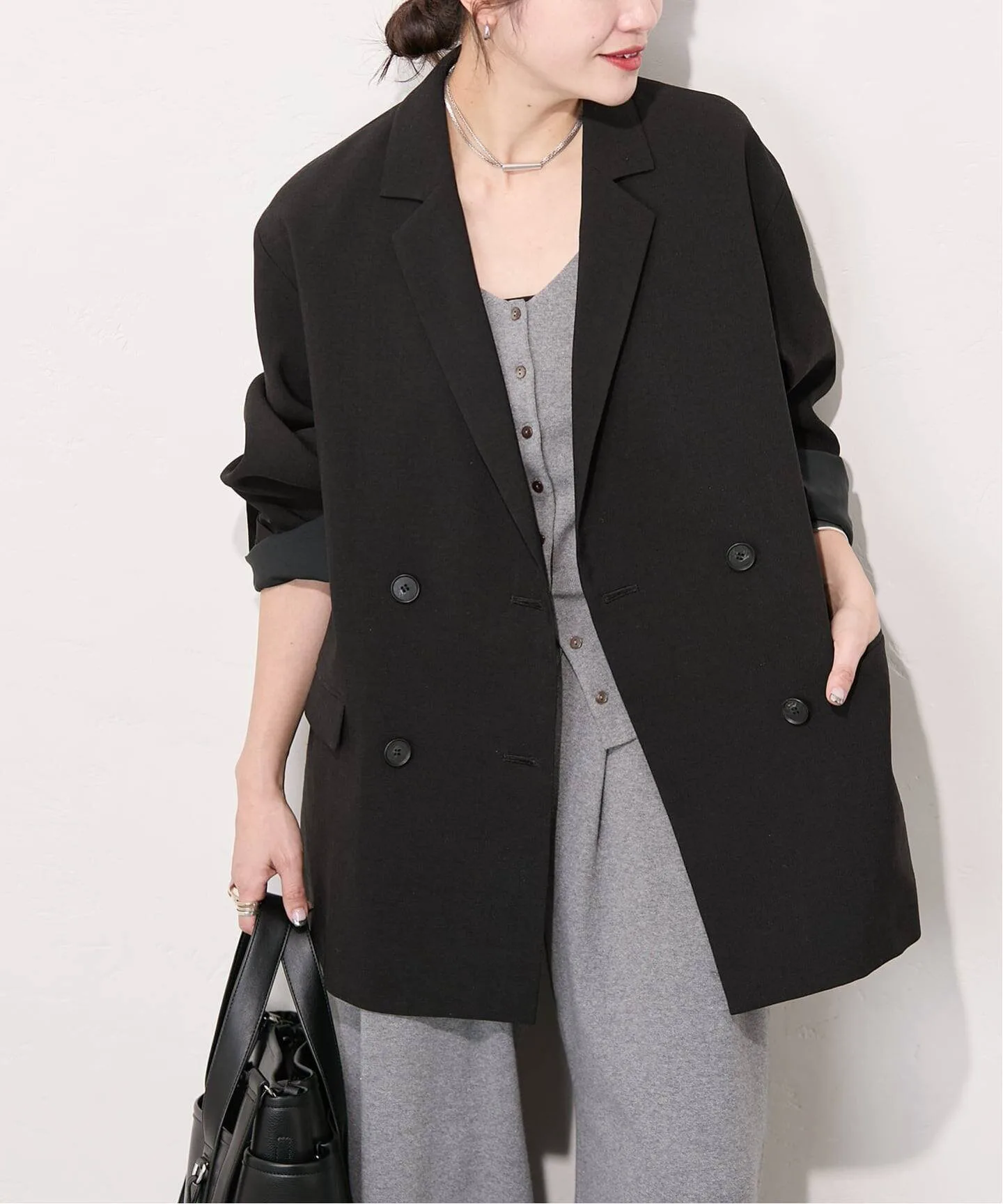 Несмотря на внешний вид формального жакета, он также создает мягкое, женственное впечатление.
