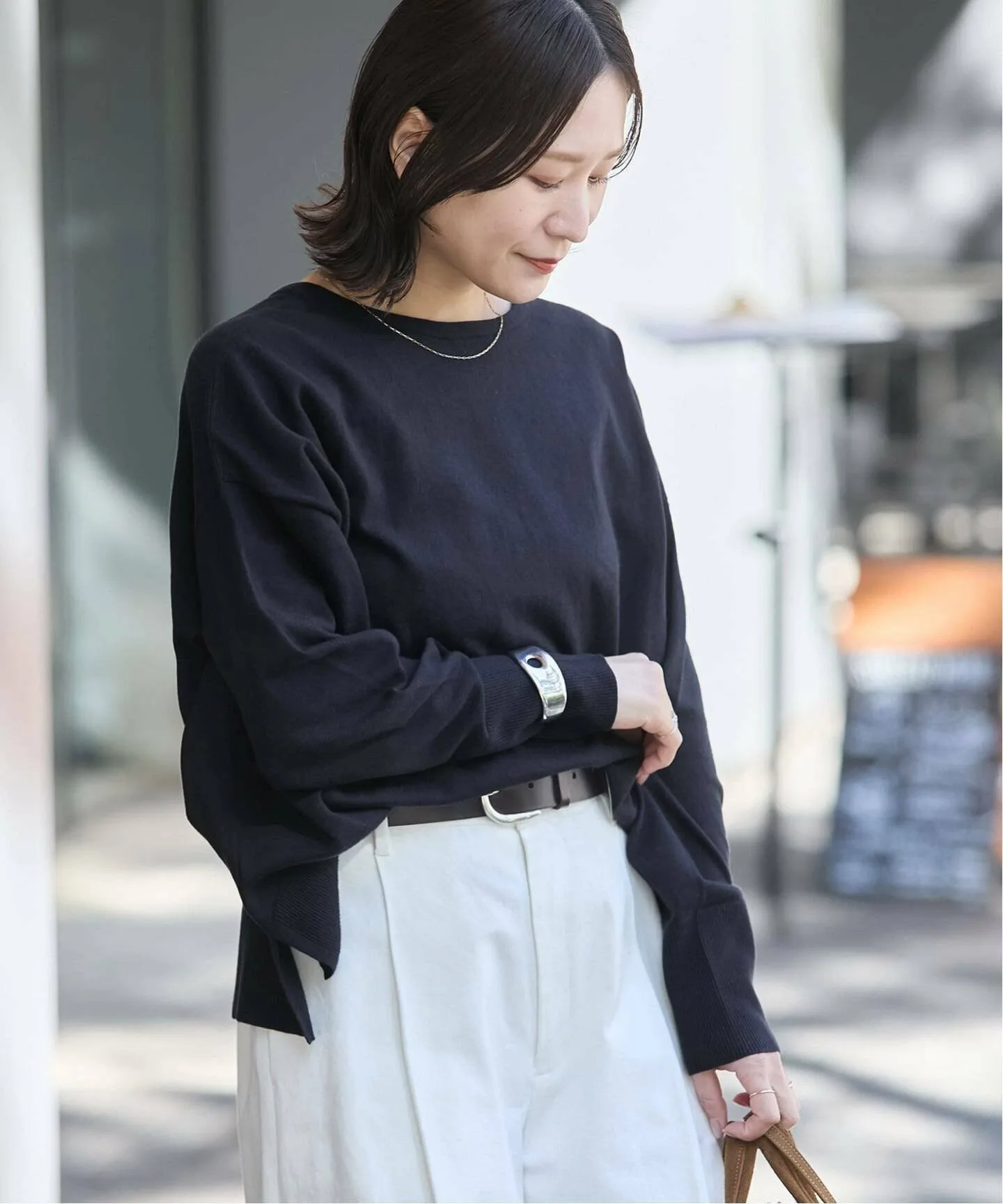 Пуловер с воротником-стойкой, сочетающий в себе естественную текстуру хлопка с гладкостью и драпировкой шелка.