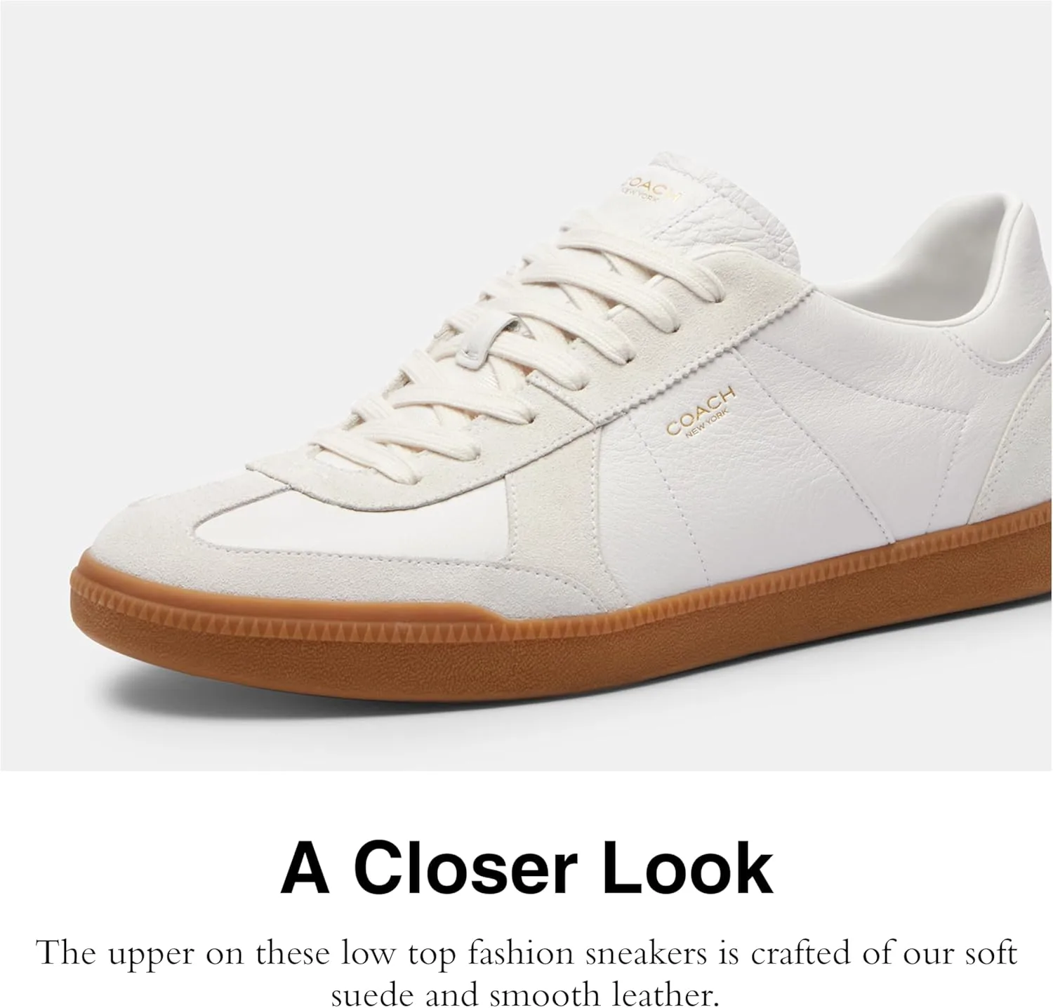 Editor's Notes: Inspired by the effortless cool of New York, the city we've always called home, our Ellis sneaker is a sleek design for everyday Leather & Suede Upper: The upper on these low top men's fashion sneakers is crafted of our soft suede and smooth leather Rubber Outsole: These stylish, casual men's sneakers feature a flat rubber outsole for sturdy traction - perfect for all of life's adventures It's All in the Details: Leather and suede upper, man-made leather lining and footbed, rubber outsole, lace-up closure This is COACH: Having the courage to be real since 1941. COACH is the Original American House of Leather - with a legacy of craft and a community that champions the courage to live authentically