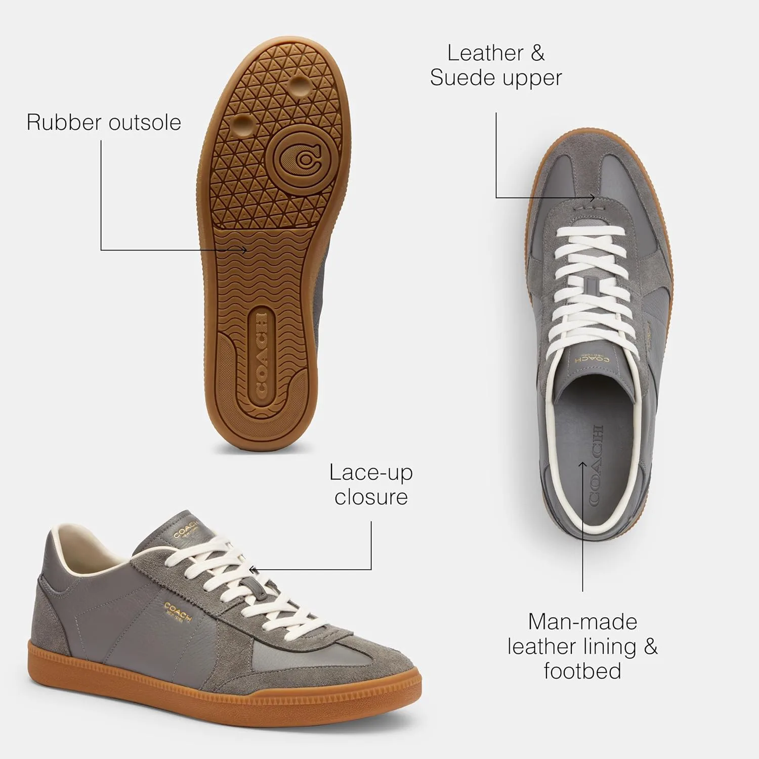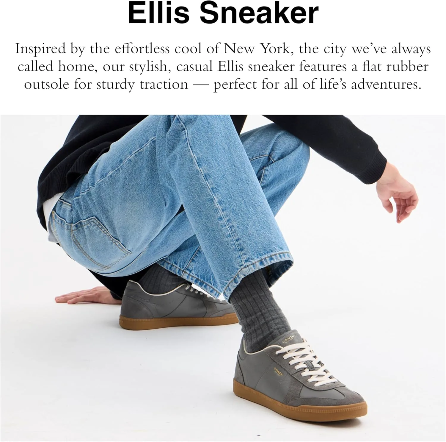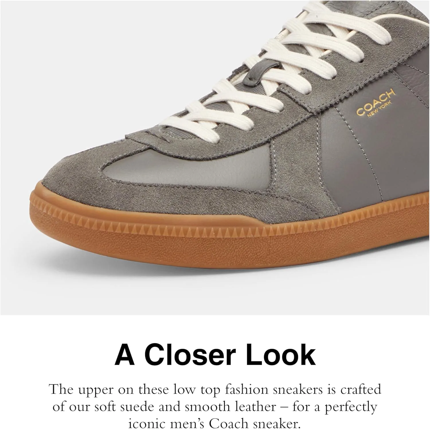 Editor's Notes: Inspired by the effortless cool of New York, the city we've always called home, our Ellis sneaker is a sleek design for everyday Leather & Suede Upper: The upper on these low top men's fashion sneakers is crafted of our soft suede and smooth leather Rubber Outsole: These stylish, casual men's sneakers feature a flat rubber outsole for sturdy traction - perfect for all of life's adventures It's All in the Details: Leather and suede upper, man-made leather lining and footbed, rubber outsole, lace-up closure This is COACH: Having the courage to be real since 1941. COACH is the Original American House of Leather - with a legacy of craft and a community that champions the courage to live authentically