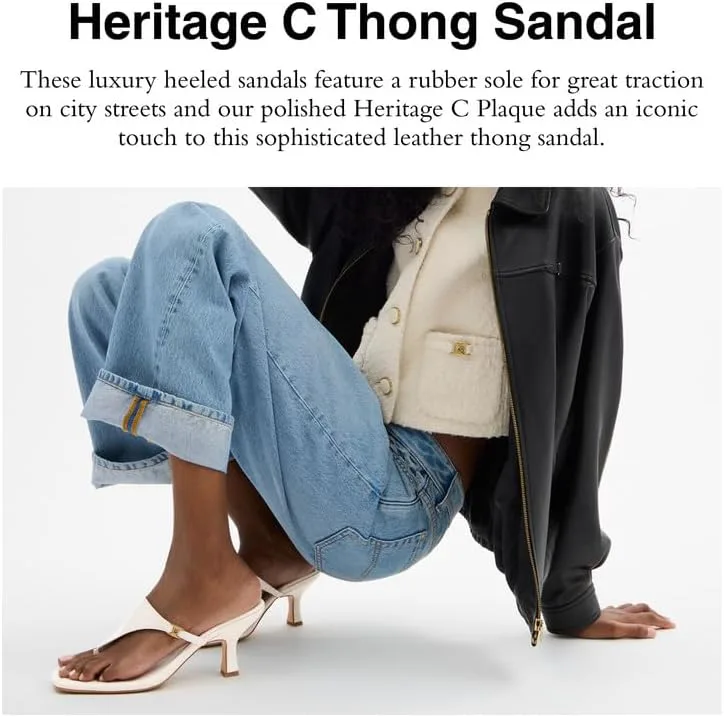 Наша отполированная табличка Heritage C добавляет культовый штрих этому кожаному сандалии на каблуке-киппере с тонкой перемычкой. Современная версия классического силуэта, элегантная модель на удобной подошве имеет мягкую стельку и резиновую подошву для лучшего сцепления. Верх из кожи, подкладка из искусственной кожи, стелька из кожи, резиновая подошва, без застежек, каблук 2 1/2".