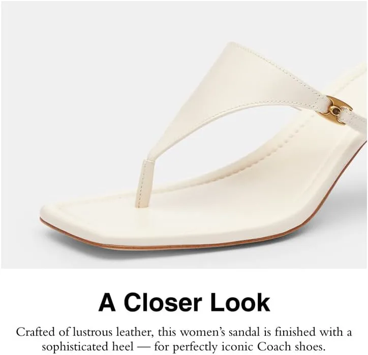 Примечания редактора: Наша отшлифованная табличка Heritage C добавляет культовый штрих к этим изысканным кожаным сандалиям на ремешке Гладкая кожа: Изготовленные из блестящей кожи, эти женские сандалии украшены нашей табличкой Heritage C - для идеально знаковых обувных изделий Coach Резиновая подошва: Эти роскошные сандалии на каблуке оснащены резиновой подошвой для отличного сцепления на городских улицах Все в деталях: Верх из кожи, подкладка из искусственной кожи, стелька из кожи, резиновая подошва, сандалии без застежки, каблук 2 1/2” Это COACH: Смелость быть собой с 1941 года. COACH - оригинальный американский Дом кожи - с наследием мастерства и сообществом, которое поддерживает смелость жить аутентично