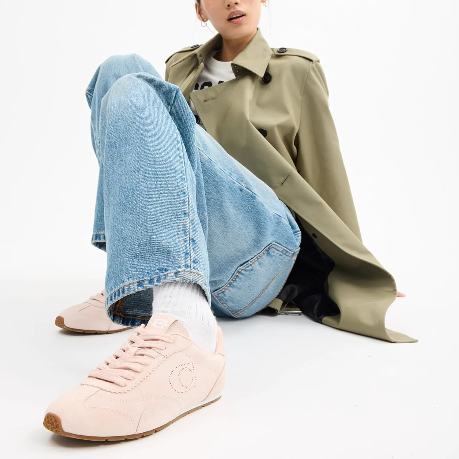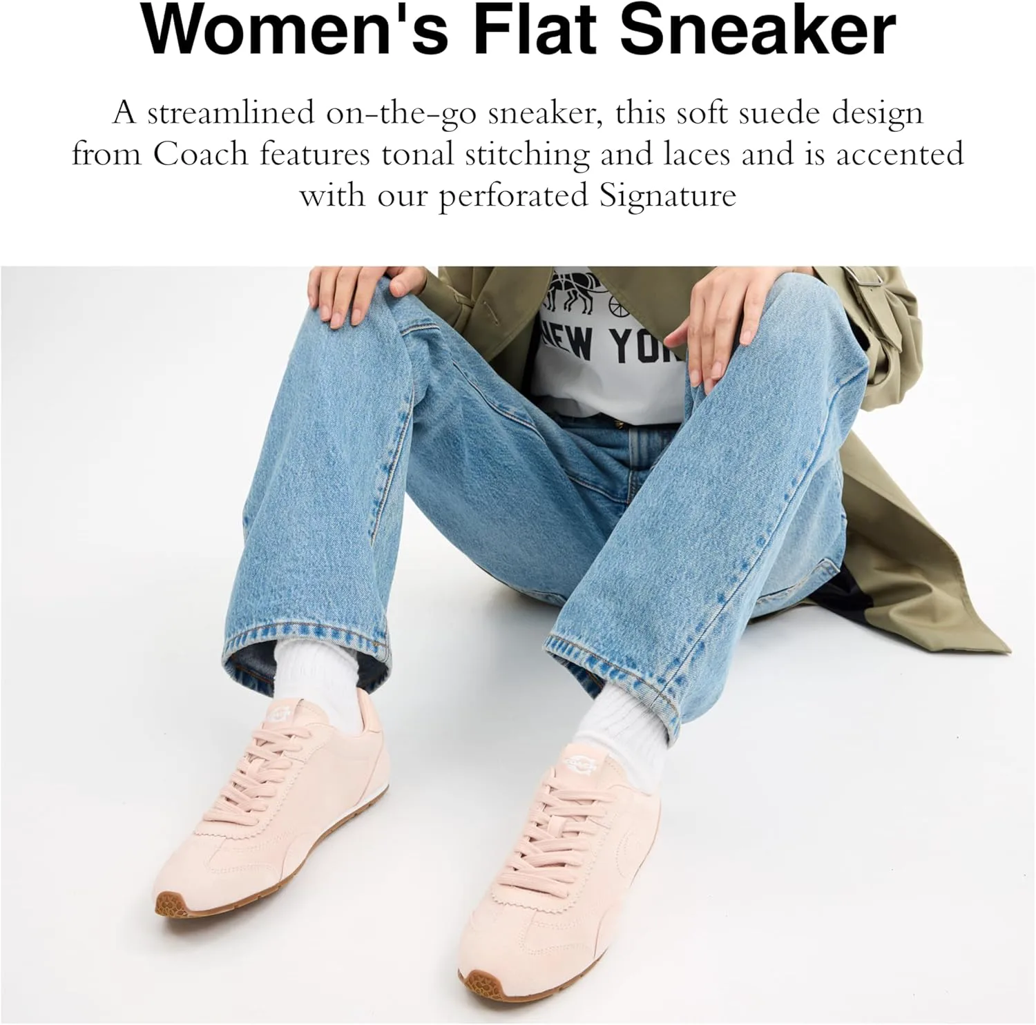 Жаккард, замша и кожа: Изготовлены из нашего фирменного жаккарда, искусственной кожи и невероятно приятной на ощупь, мягкой и эластичной замши - для роскошного кроссовка Coach