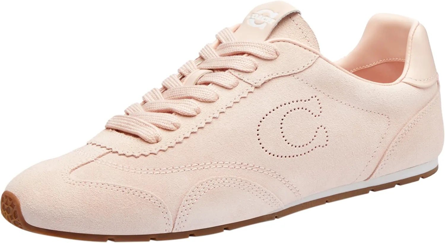 Примечания редактора: Легкие кроссовки для женщин для активного образа жизни от Coach, выполненные из мягкой замши и жаккардовой ткани, с тональной строчкой и шнурками, украшенные перфорированным узором Signature