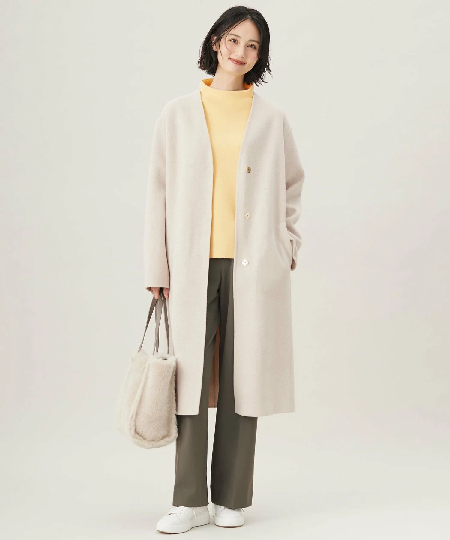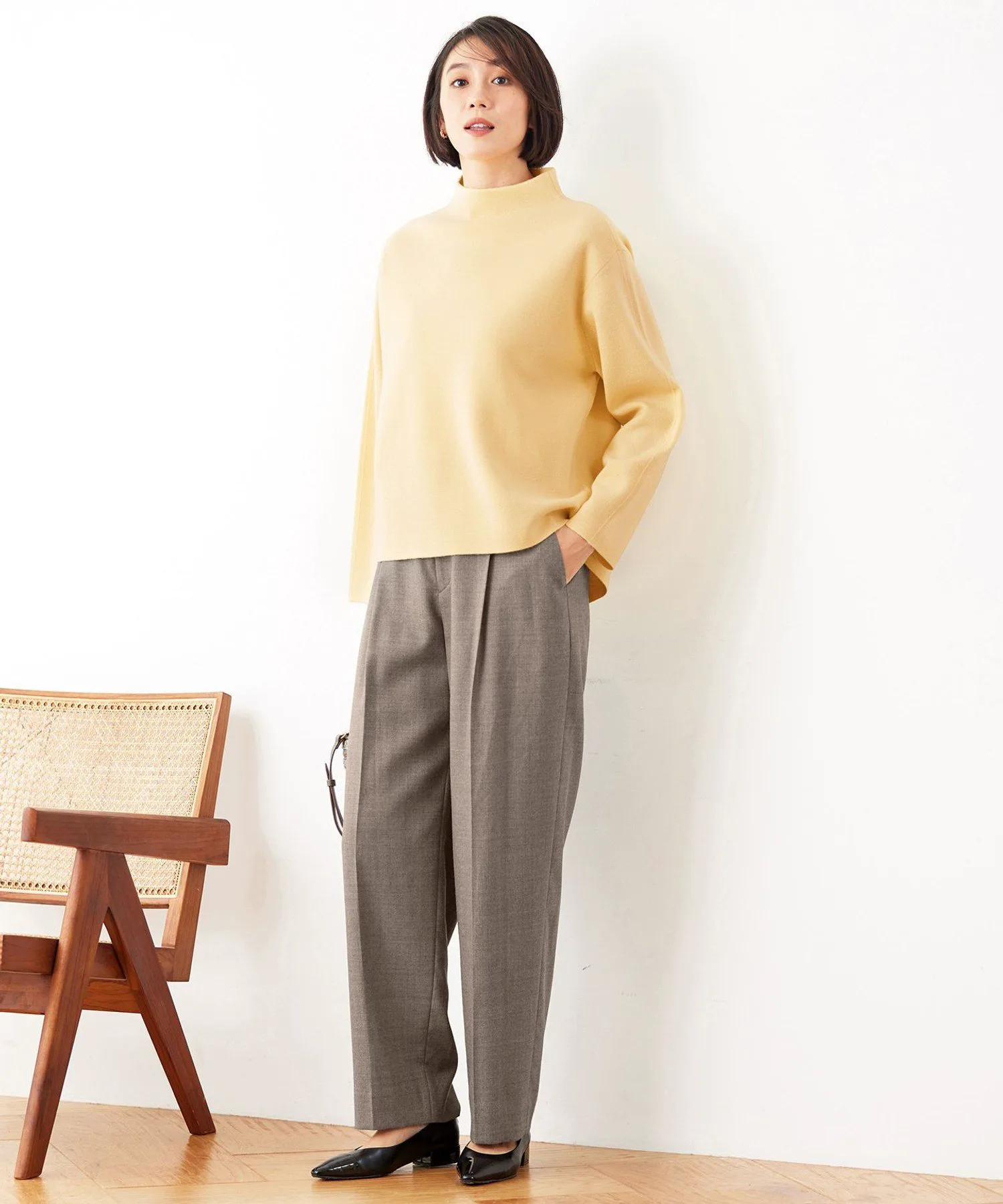 Этот универсальный трикотаж с вырезом-«бутылочкой» отличается изысканным и лаконичным дизайном, дополненным разрезом сзади. Три цвета, за исключением кремового (040), имеют тонкие цветовые сочетания спереди и сзади. Свободный силуэт минимизирует контуры тела, делая его универсальным и многофункциональным. Мы рекомендуем сочетать его с подходящей юбкой (SKWMCW0556). Эта ткань представляет собой смесь мягкой шерсти и объемного акрила, перекрученного для придания объема и легкости, создавая миланскую резинку средней плотности с оптимальной плотностью и объемом. Ее компактный, лаконичный дизайн обеспечивает ощущение чистоты. Другие изделия из этой же ткани включают: жилет (KRWMCW0557), юбку (SKWMCW0556) и полосатый трикотаж (KRWMCW0562). Изображение модели является образцом, поэтому характеристики, отделка и размер могут немного отличаться от фактического изделия. Обратите внимание. Из-за условий съемки цвет фактического изделия может немного отличаться от изображения.