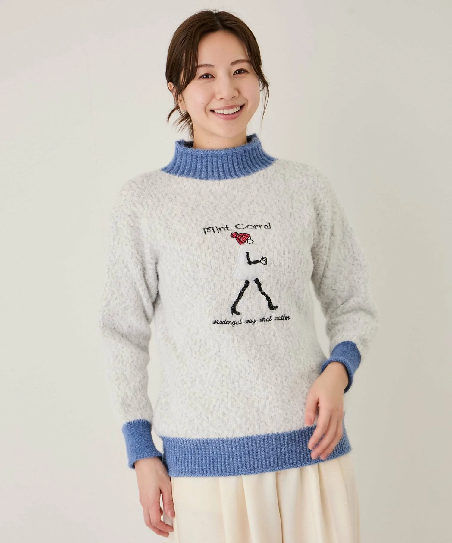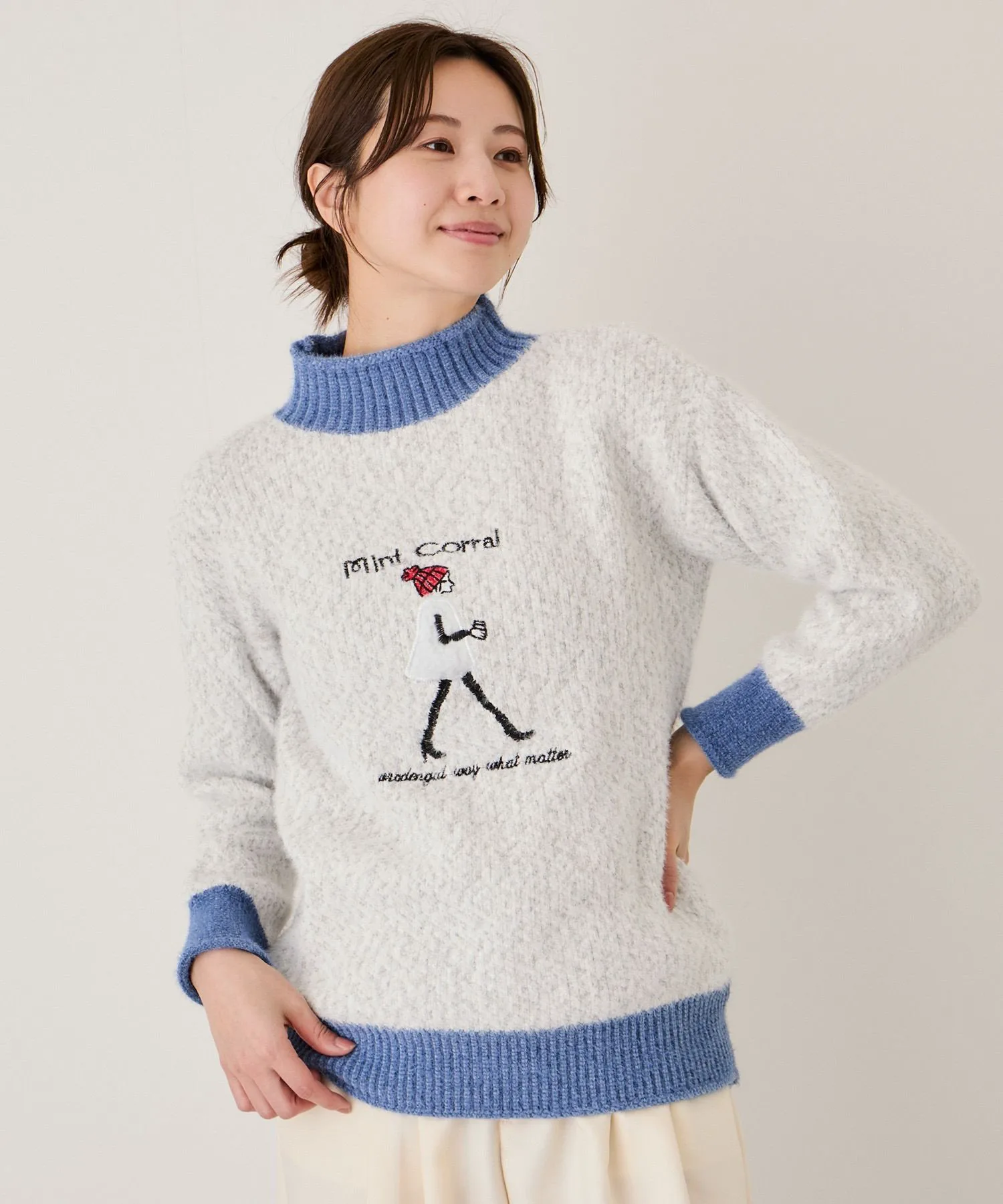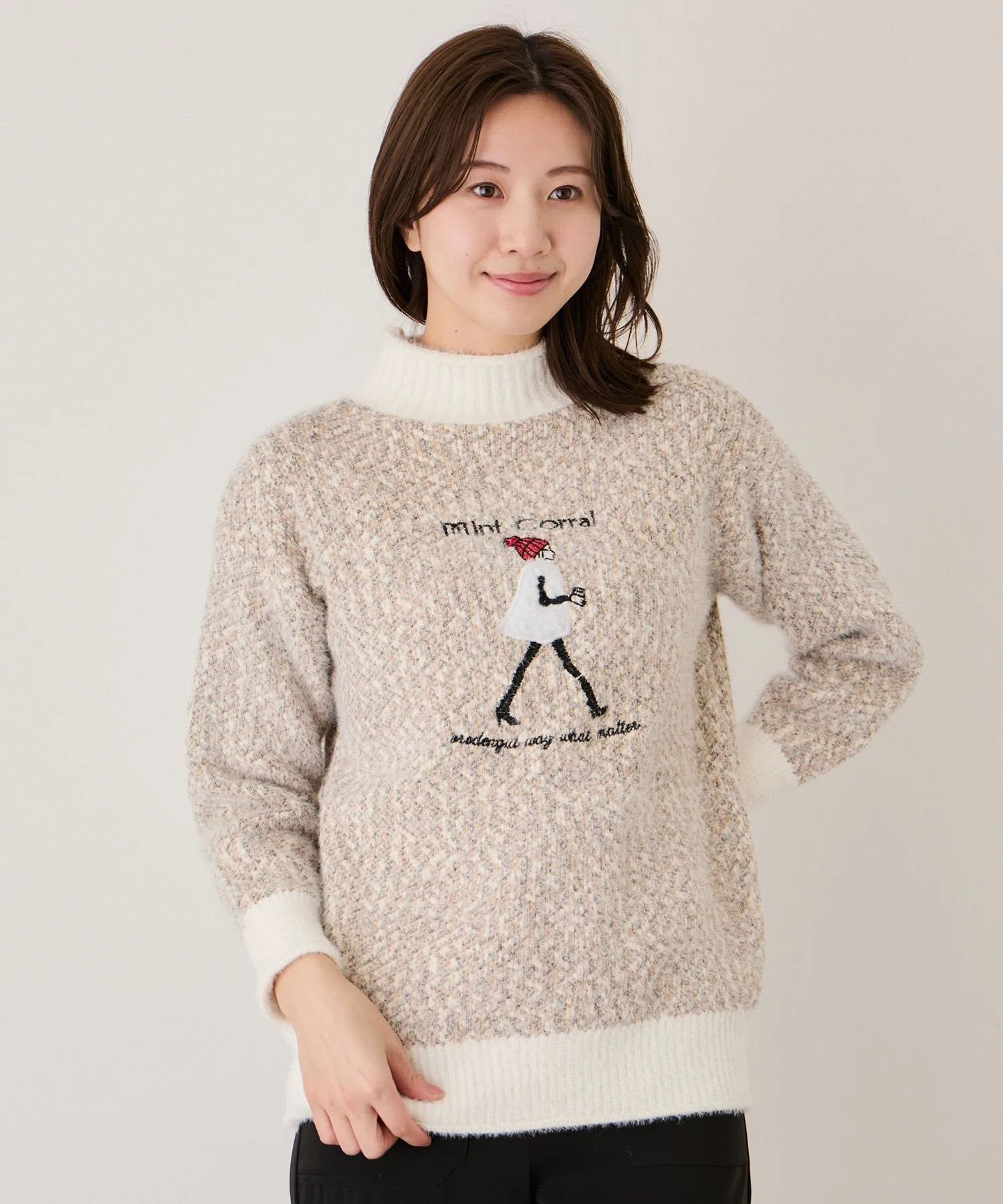 - Игривое изделие с вышитым мотивом идущей женщины на мягком, пушистом трикотаже.