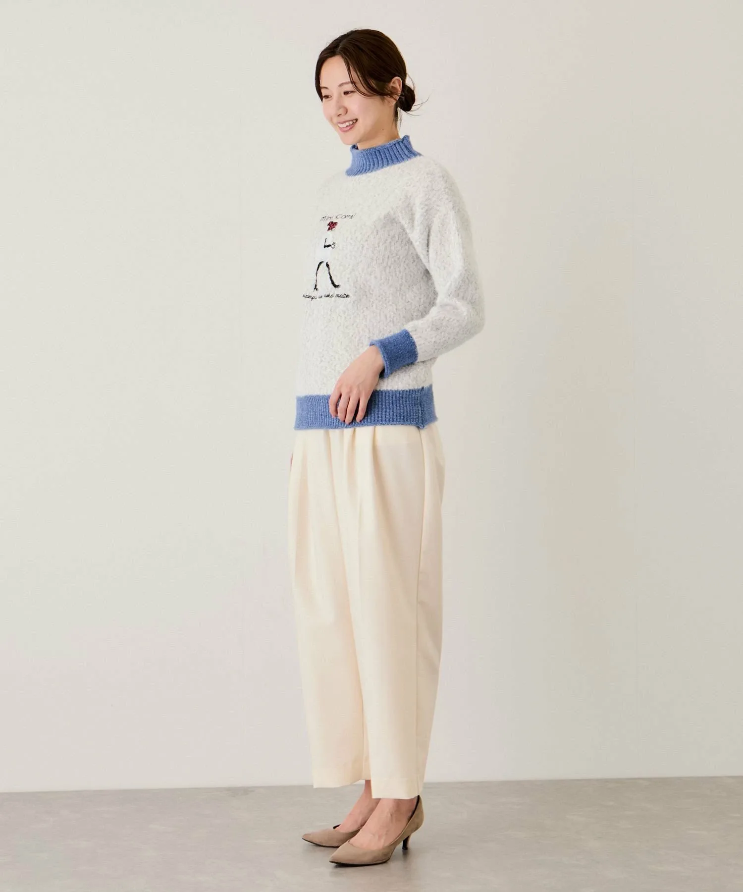 - Выбирайте базовые брюки с минимальным количеством узоров или цветов, чтобы подчеркнуть индивидуальность трикотажа.
