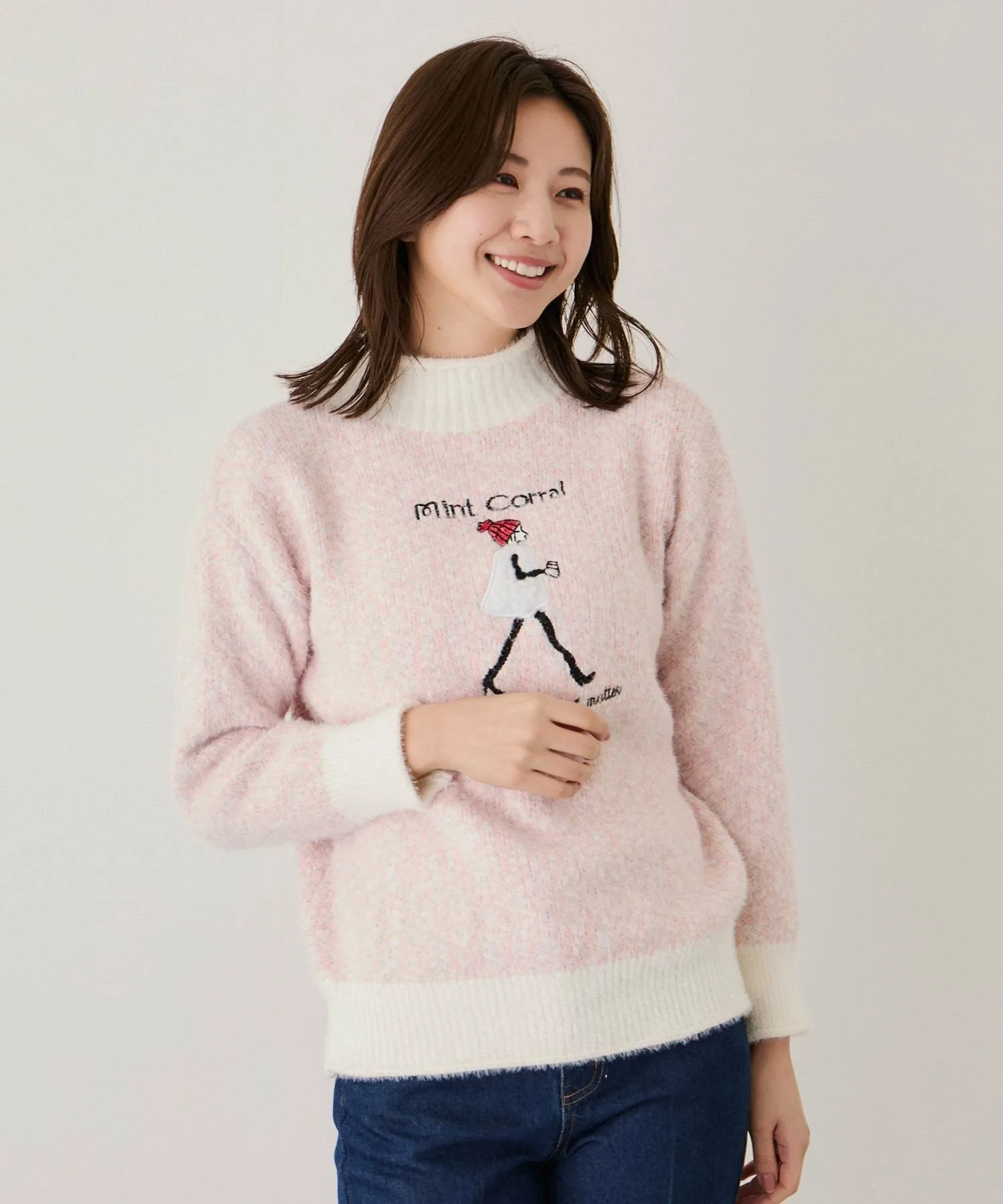 - Игривое изделие с вышитым мотивом идущей женщины на мягком, пушистом трикотаже.