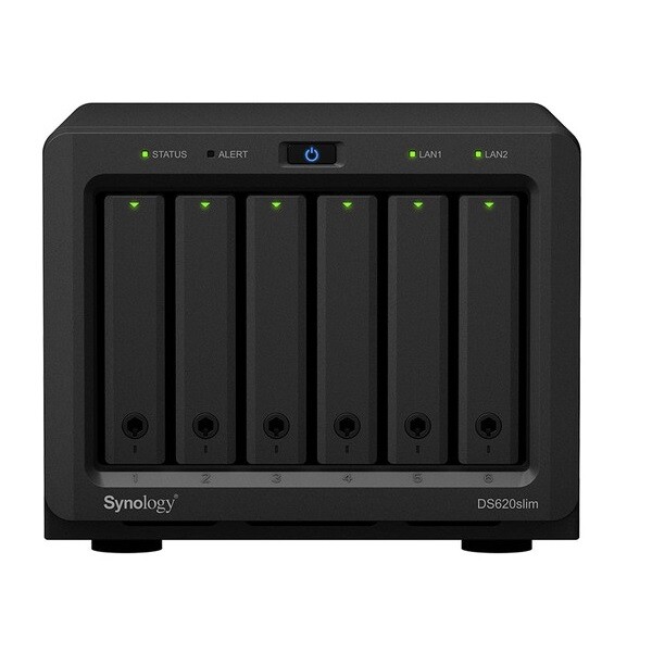 Сетевое хранилище (NAS) SYNOLOGY DiskStation DS620slim обладает черной прямоугольной конструкцией с матовым покрытием, позволяет прекрасно вписаться в любой интерьер, не привлекать к себе внимание. Модель изготавливается с частотой работы процессора 2000 МГц и 6 отсеками для накопителей информации до 5 ТБ, с общим количеством оперативной памяти на 2048 МБ.