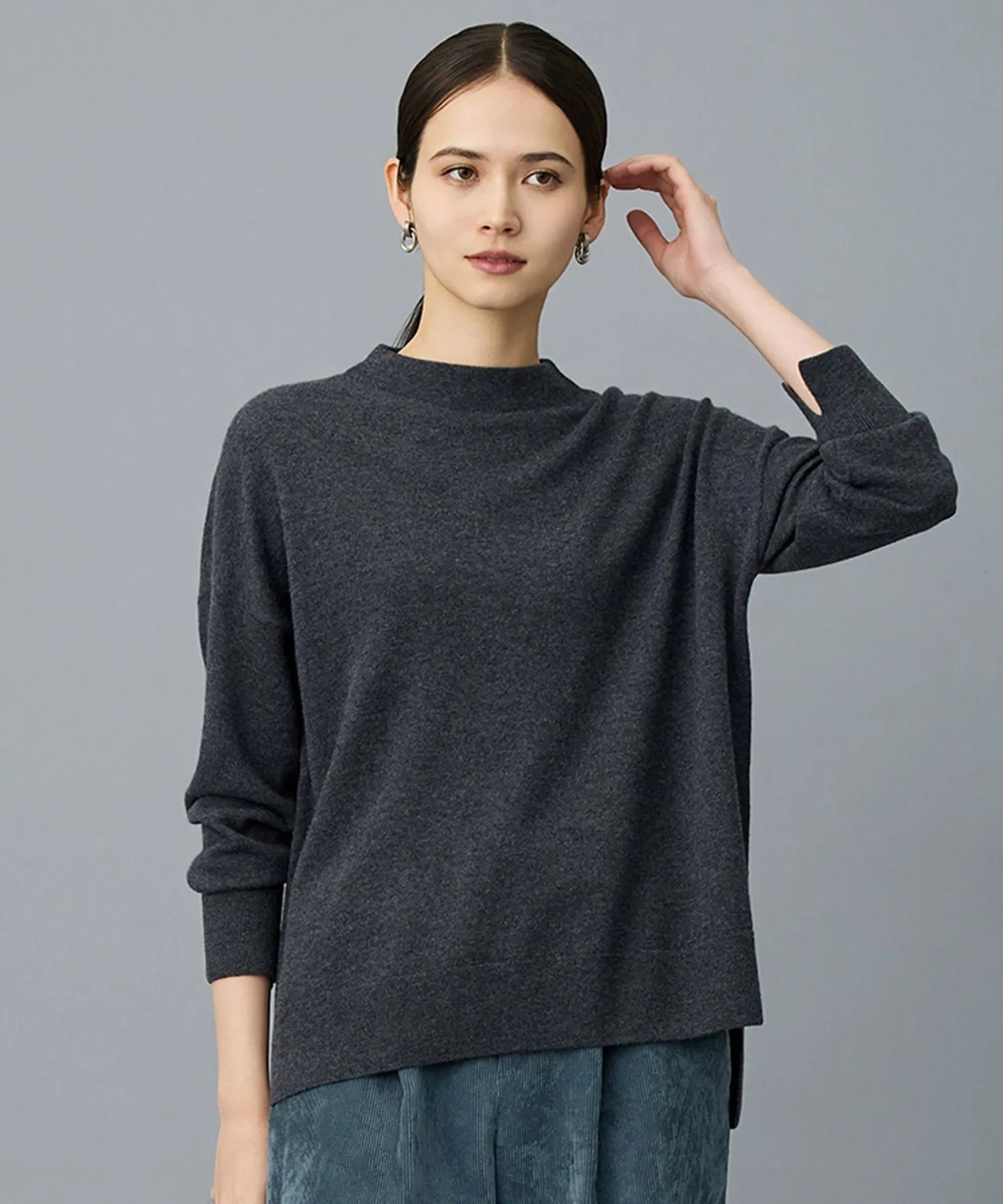 Вязаный свитер с воротником-стойкой, обеспечивающий оптимальную свободу движений и тепло. Дизайн: Этот пуловер имеет аккуратный воротник-стойку и свободный силуэт, обеспечивающий оптимальную свободу движений. Несмотря на простоту и удобство ношения, он отличается такими деталями, как разрезы на манжетах и разная длина спереди и сзади. Это простой, но элегантный свитер с женственным, расслабленным силуэтом. Материал: Изготовлен из сверхтонкой австралийской мериносовой шерсти. Благодаря скручиванию шерстяных и полукамвольных нитей, мягкая, теплая текстура шерсти дополняется естественным блеском и мягкостью полукамвольной шерсти, создавая роскошный результат. Тщательно связанный высокой плотностью, он обеспечивает необходимый объем, оставаясь при этом легким, создавая ветосезонную текстуру, подходящую для длительного ношения вплоть до ранней весны. Благодаря своему элегантному блеску, это идеальный свитер для утонченных женщин в этом сезоне. Товары из того же материала: трикотажное платье с V-образным вырезом (KRWMLS0051) и трикотажное платье (OPWMLS0051)