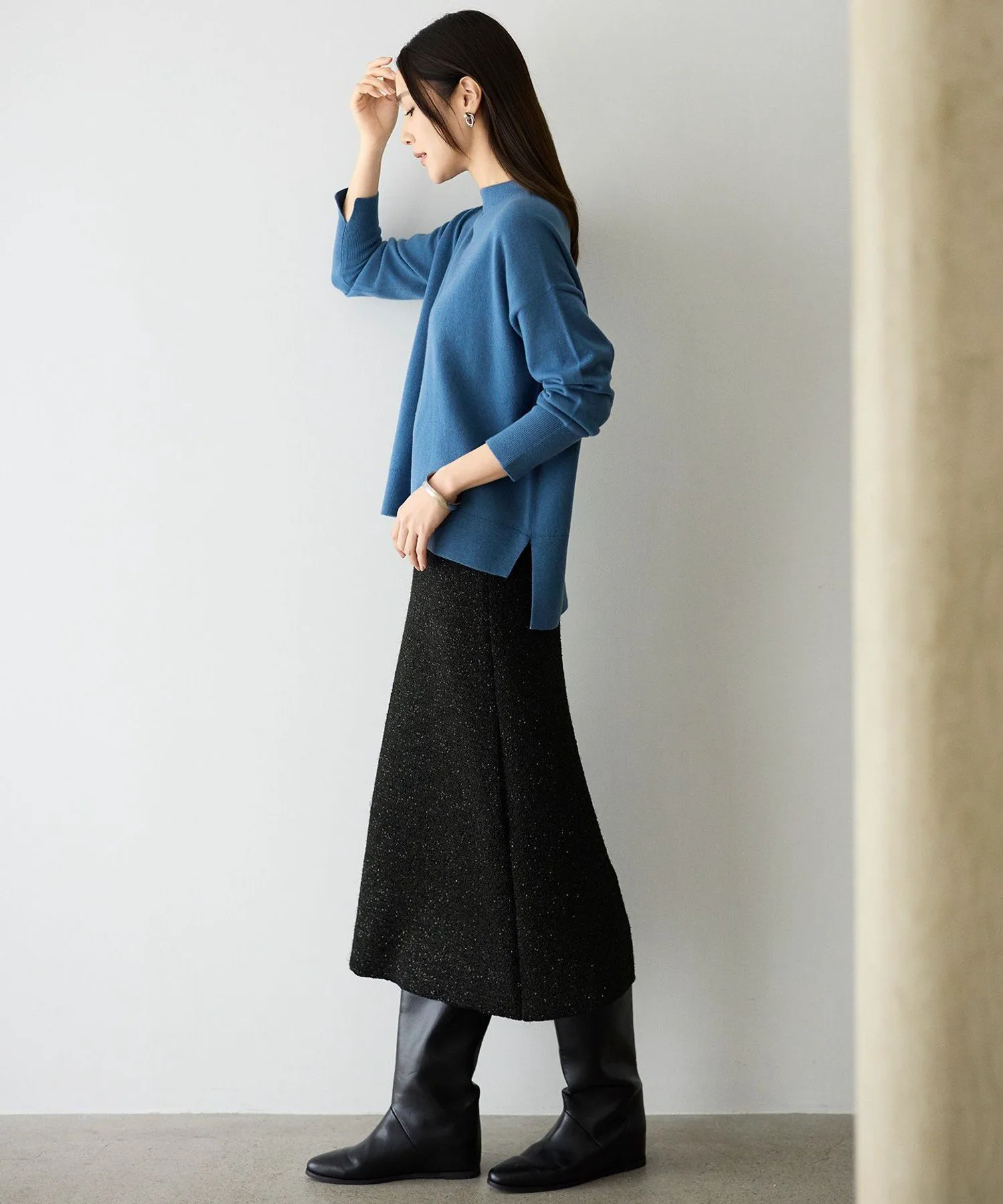 Вязаный свитер с воротником-стойкой, обеспечивающий оптимальную свободу движений и тепло. Дизайн: Этот пуловер имеет аккуратный воротник-стойку и свободный силуэт, обеспечивающий оптимальную свободу движений. Несмотря на простоту и удобство ношения, он отличается такими деталями, как разрезы на манжетах и разная длина спереди и сзади. Это простой, но элегантный свитер с женственным, расслабленным силуэтом. Материал: Изготовлен из сверхтонкой австралийской мериносовой шерсти. Благодаря скручиванию шерстяных и полукамвольных нитей, мягкая, теплая текстура шерсти дополняется естественным блеском и мягкостью полукамвольной шерсти, создавая роскошный результат. Тщательно связанный высокой плотностью, он обеспечивает необходимый объем, оставаясь при этом легким, создавая ветосезонную текстуру, подходящую для длительного ношения вплоть до ранней весны. Благодаря своему элегантному блеску, это идеальный свитер для утонченных женщин в этом сезоне. Товары из того же материала: трикотажное платье с V-образным вырезом (KRWMLS0051) и трикотажное платье (OPWMLS0051)