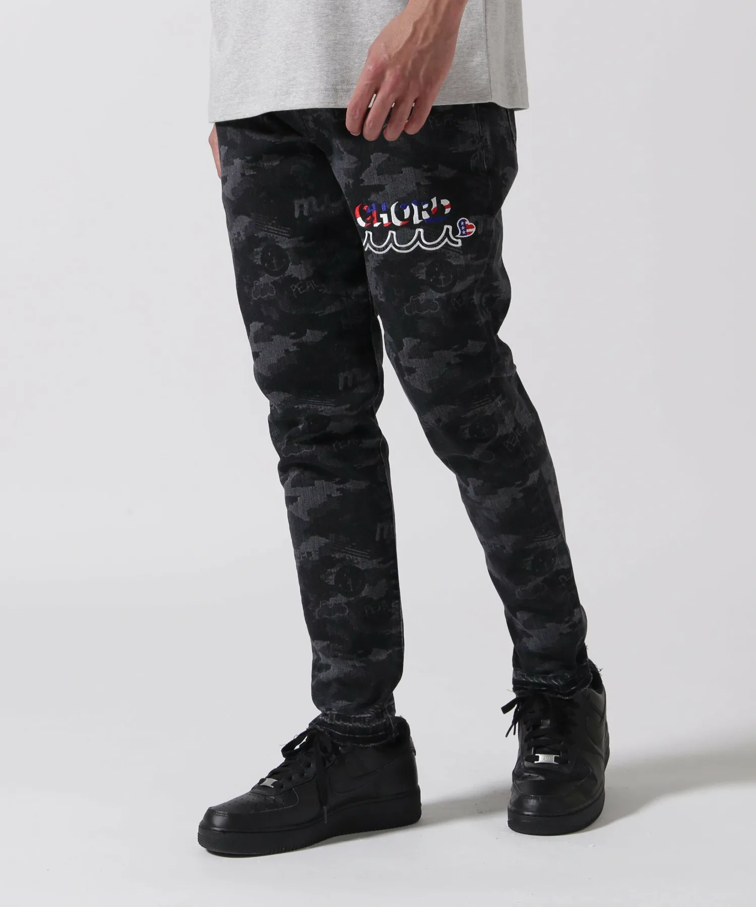 Камуфляжный узор по всей поверхности, включающий оригинальные мотивы mutaMARINE, вышит надписями «CHORD» и «WAVE», что создает эффектный дизайн.