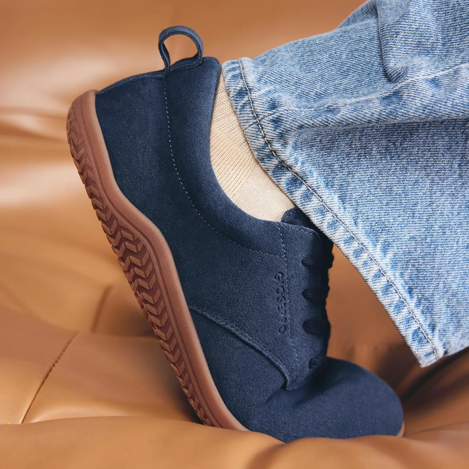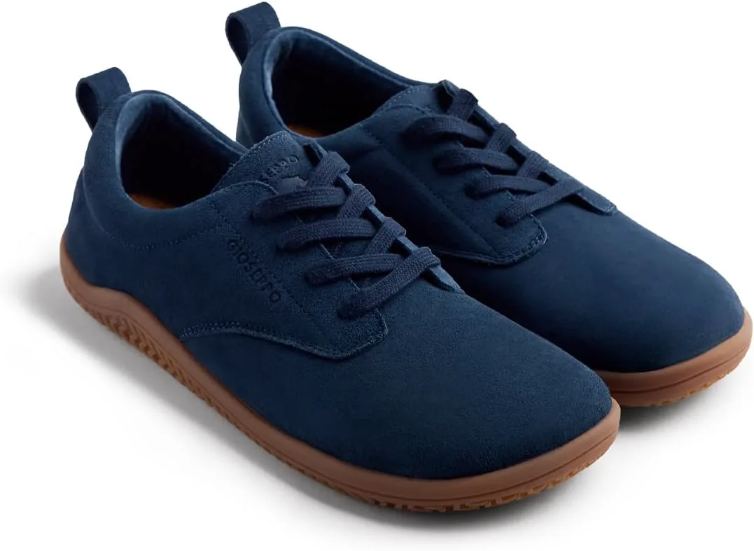 Простые кожаные кроссовки. Разработаны с учетом минималистских тенденций для обеспечения естественной походки. Гибкие и скручиваемые. Съемная стелька. Без усилений для формирования жесткости. Тонкая подошва. Широкий носок. Без наклона (нулевой дроп).