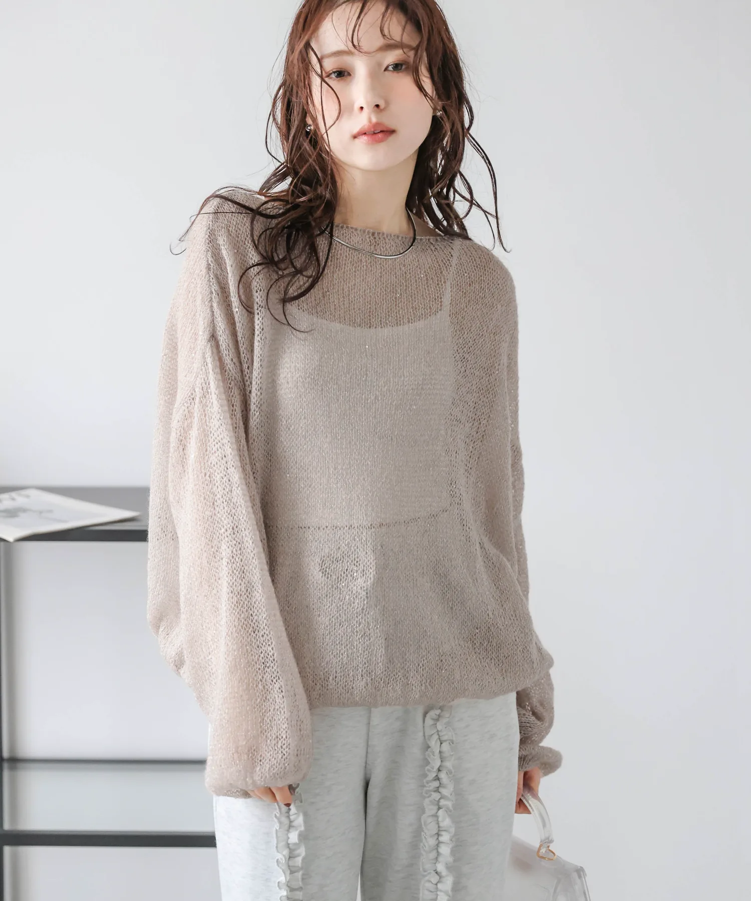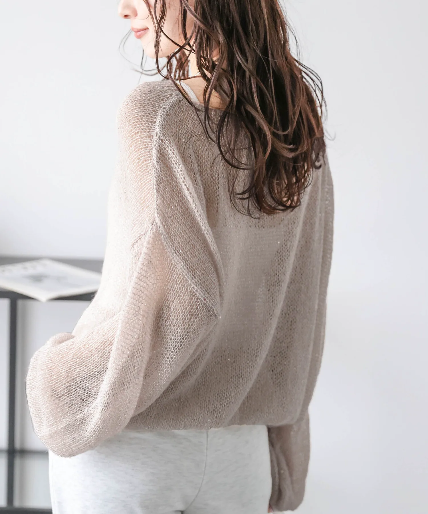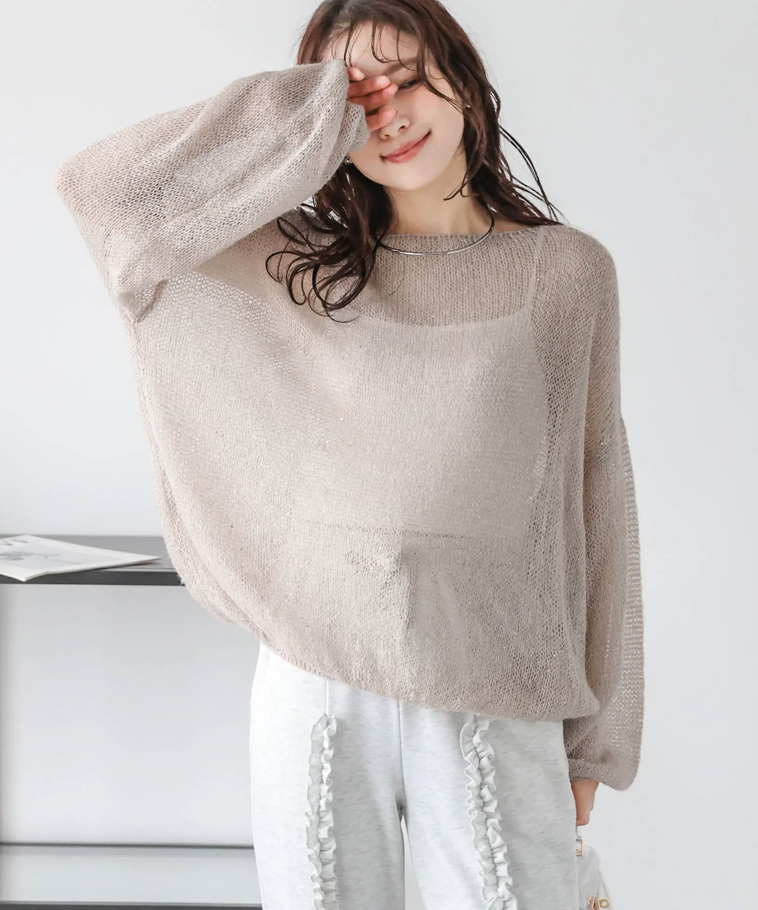 Этот свободный, легкий, полупрозрачный мохеровый трикотаж изготовлен из мохеровой пряжи с добавлением блесток и украшен мелкими пайетками.