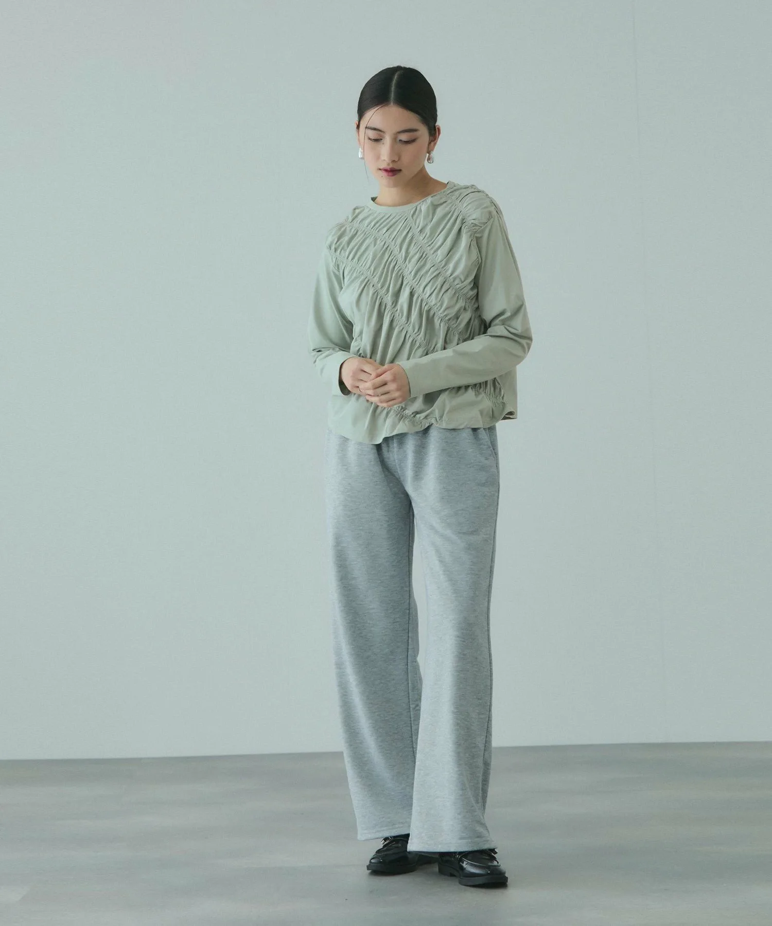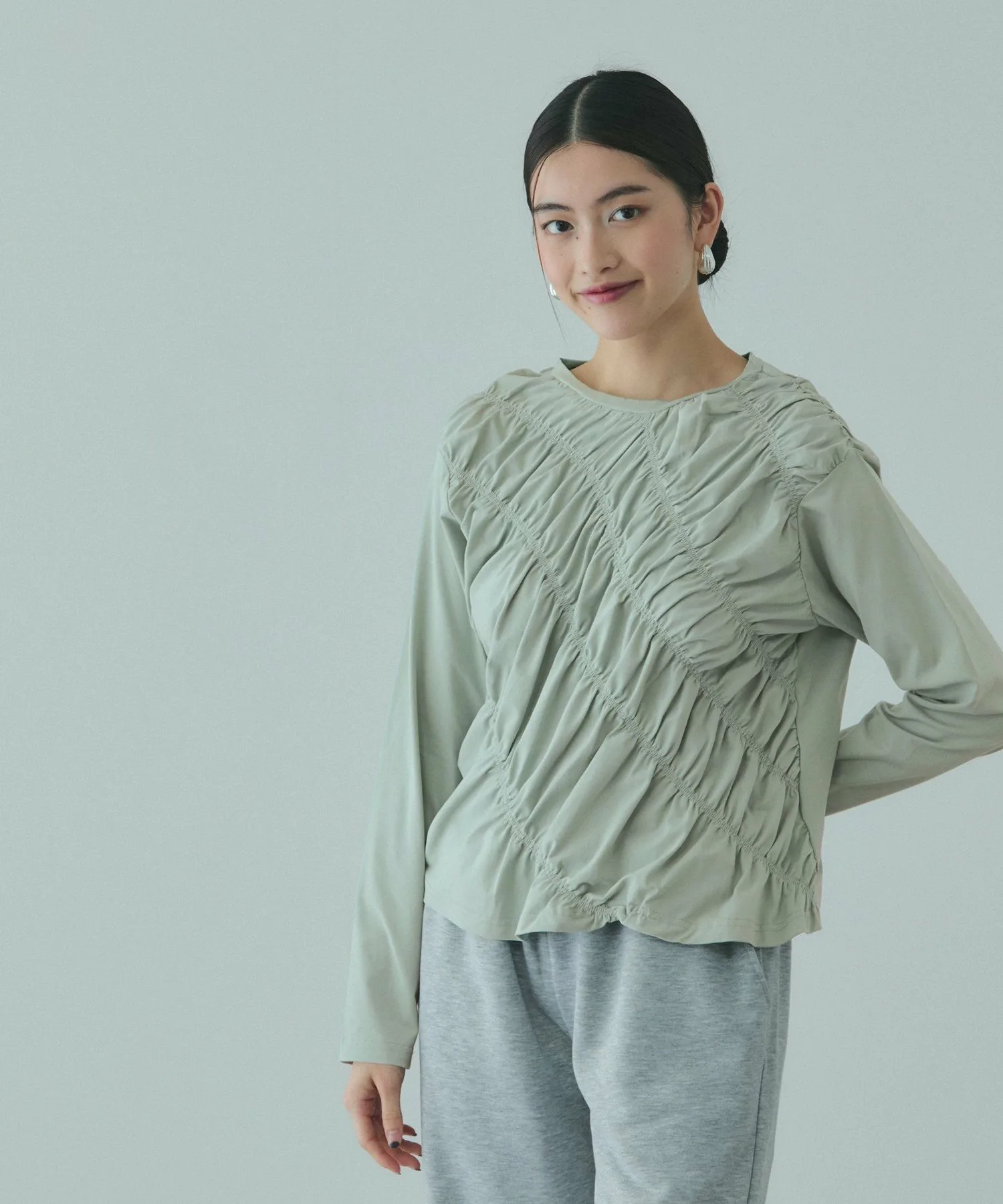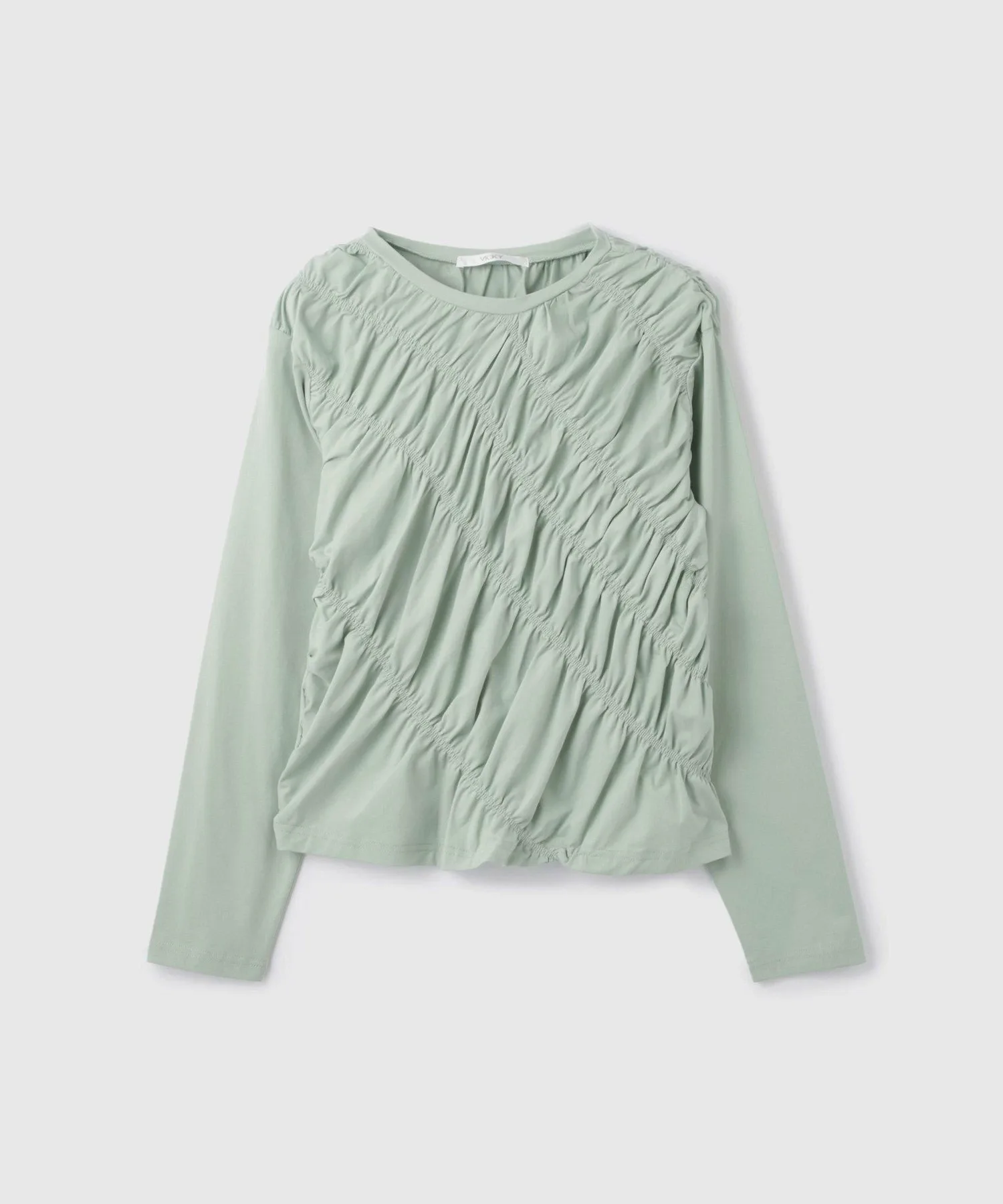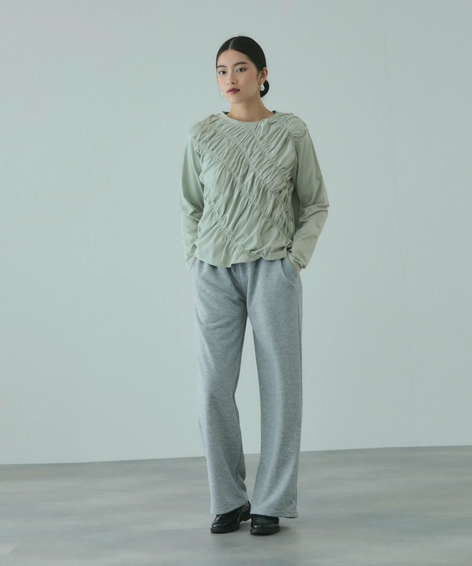 ●Этот сшитый вручную пуловер отличается впечатляющим дизайном с косой сборкой.