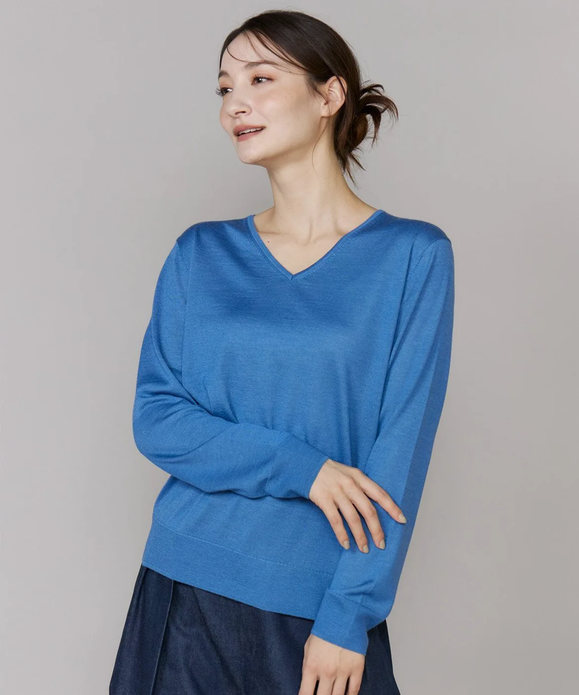 Этот трикотажный свитер с V-образным вырезом отличается простым дизайном. Это базовая вещь, созданная с тщательным вниманием к деталям, что придает ей изысканный силуэт. Слегка свободный силуэт свитера с V-образным вырезом создает утонченный, воздушный образ, сохраняя при этом ощущение элегантности. Тщательно продуманный глубокий вырез выгодно подчеркивает декольте. Благодаря гладкой, нежной и обволакивающей текстуре, этот трикотаж высокой плотности с первого взгляда демонстрирует свое превосходное качество.