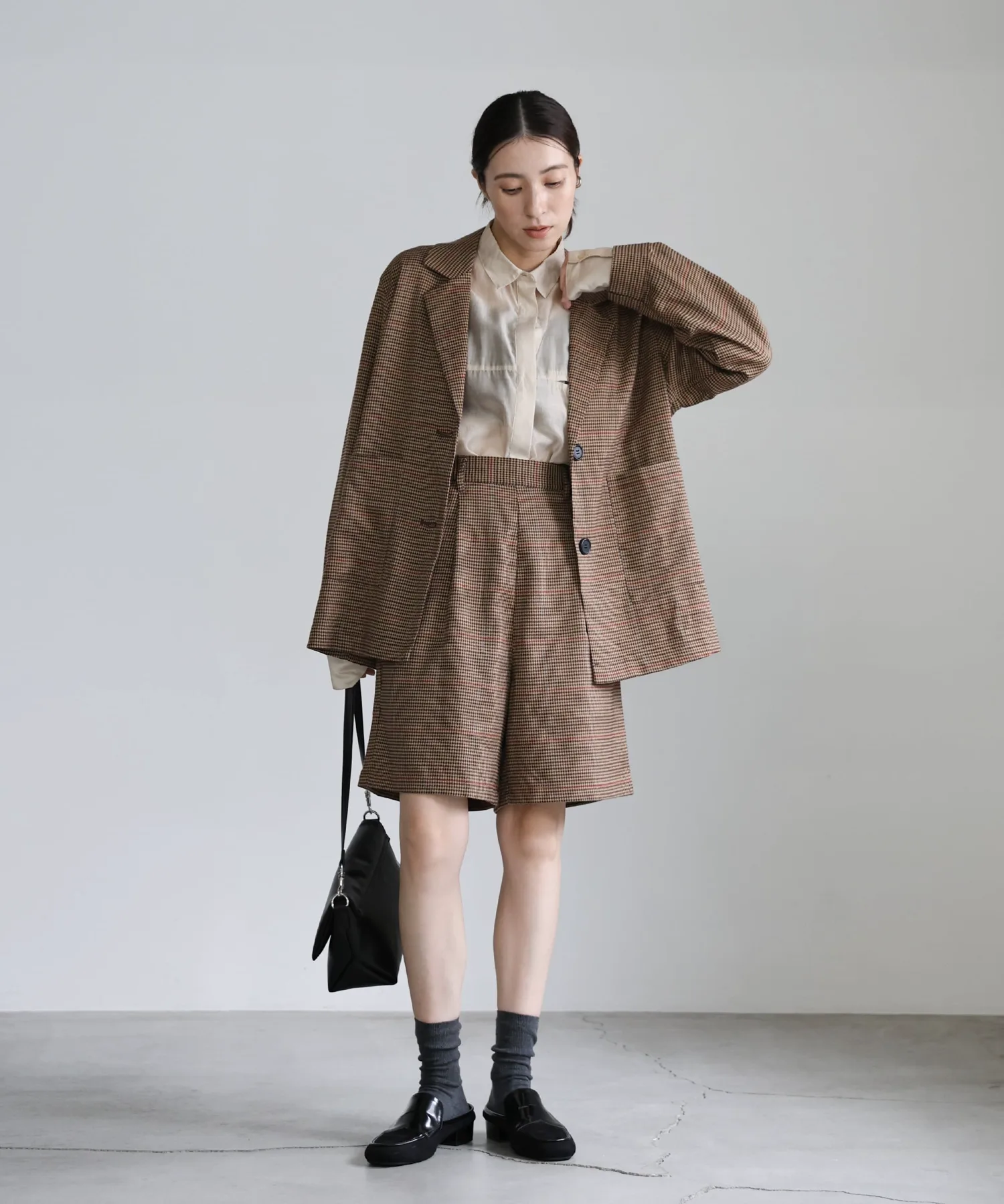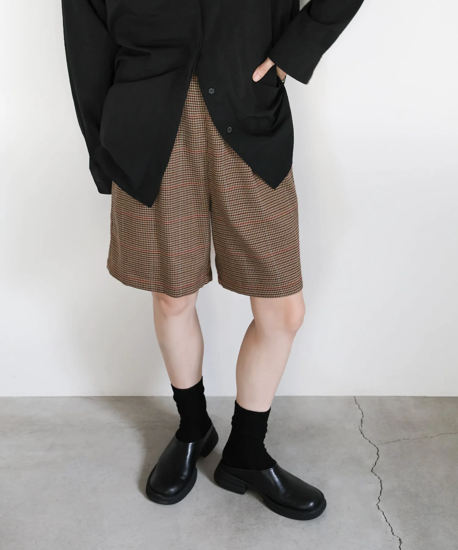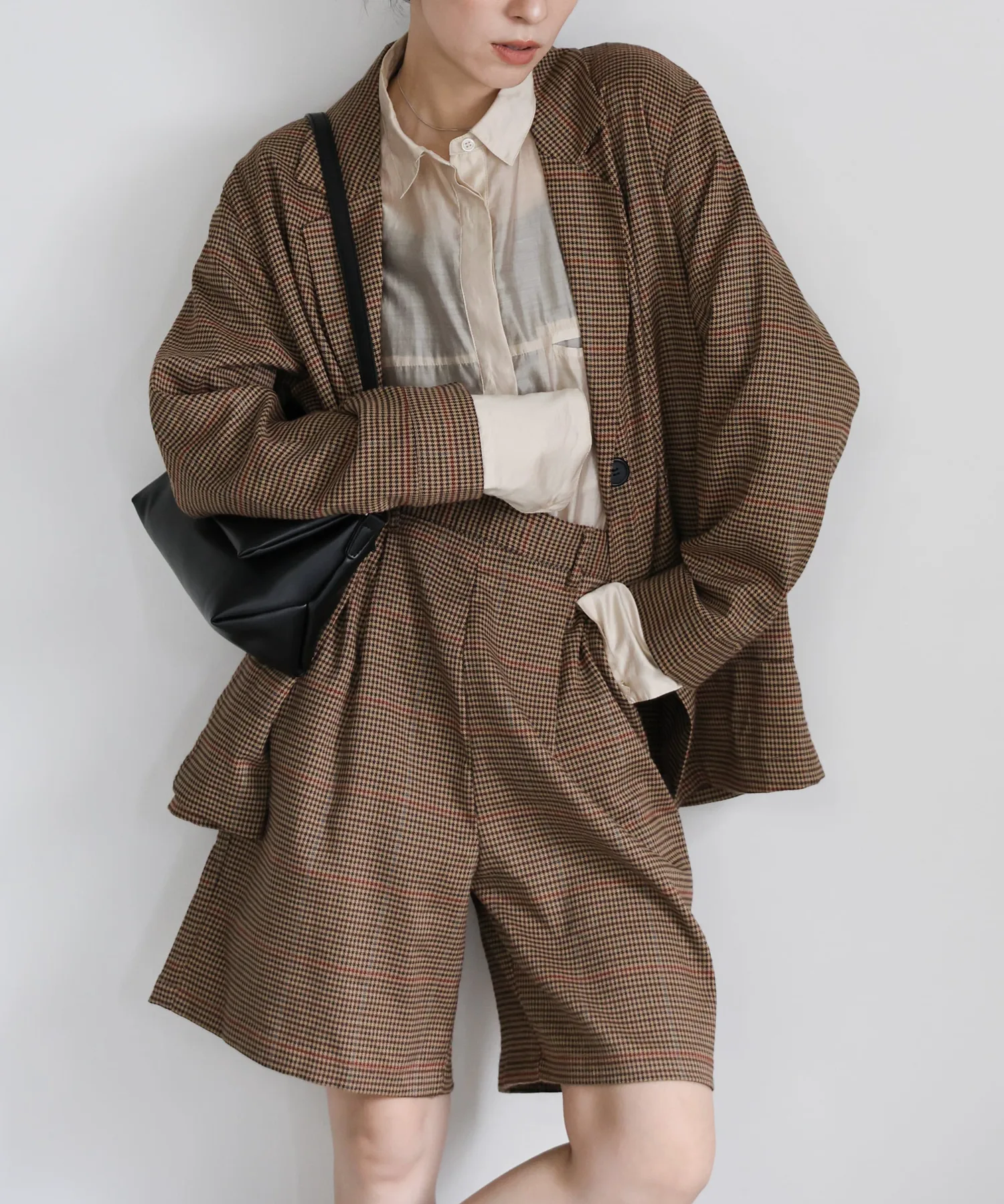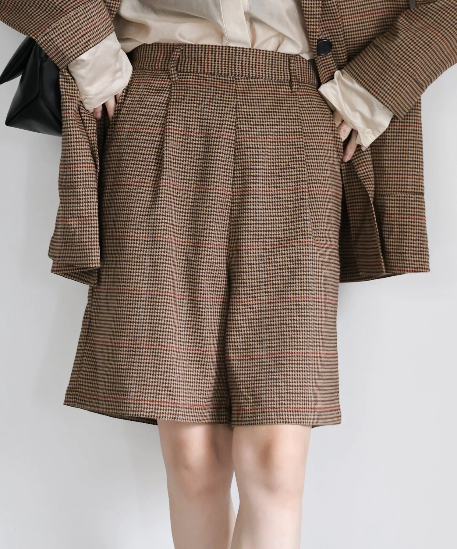 Эти шорты сочетают в себе изысканный и непринужденный стиль. Нежный клетчатый узор прекрасно дополняет цвет, создавая классический образ, не слишком повседневный. Эластичная вставка сзади обеспечивает комфортную посадку, а простота ухода позволяет стирать их дома. Мы рекомендуем сочетать их с объемной рубашкой или трикотажным свитером, чтобы добавить объема верхней части тела. Также можно носить в комплекте с курткой (ou225104), изготовленной из того же материала. [Инструкции по стилю] Идеально подходят для изысканного, расслабленного повседневного стиля. Сочетайте их с простой футболкой или футболкой для освежающего и сбалансированного образа. Наденьте их поверх куртки или кардигана для повседневной носки или прогулки. Мы рекомендуем завершить образ кроссовками или сандалиями для более легкого варианта. Эта универсальная вещь идеально подходит для перехода между сезонами.
