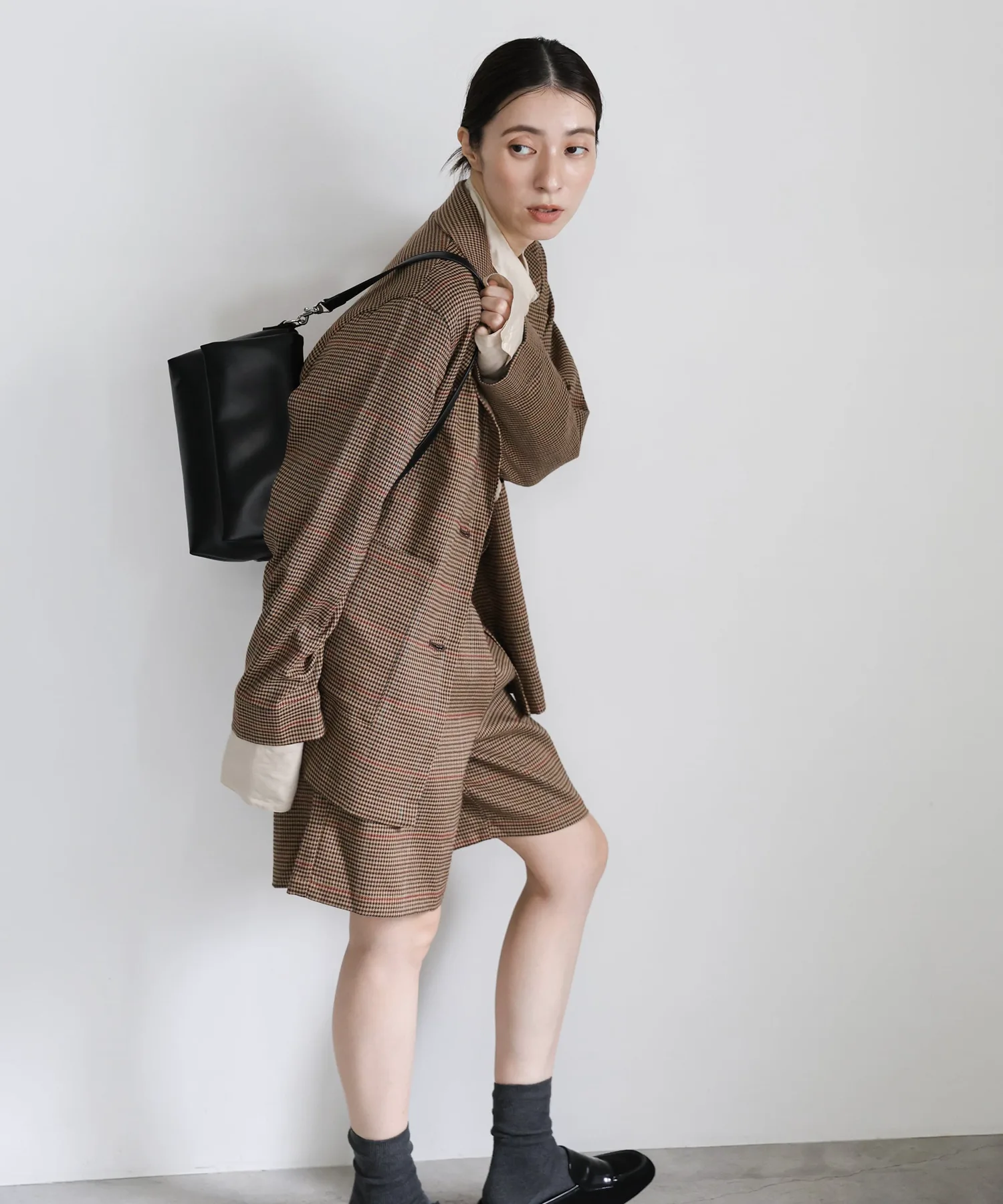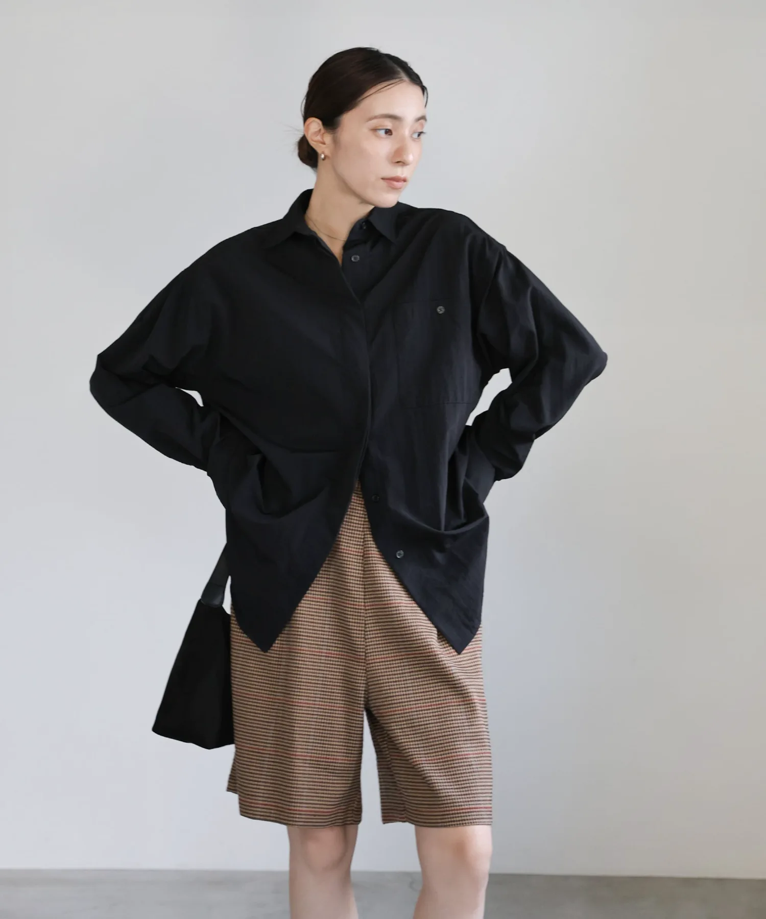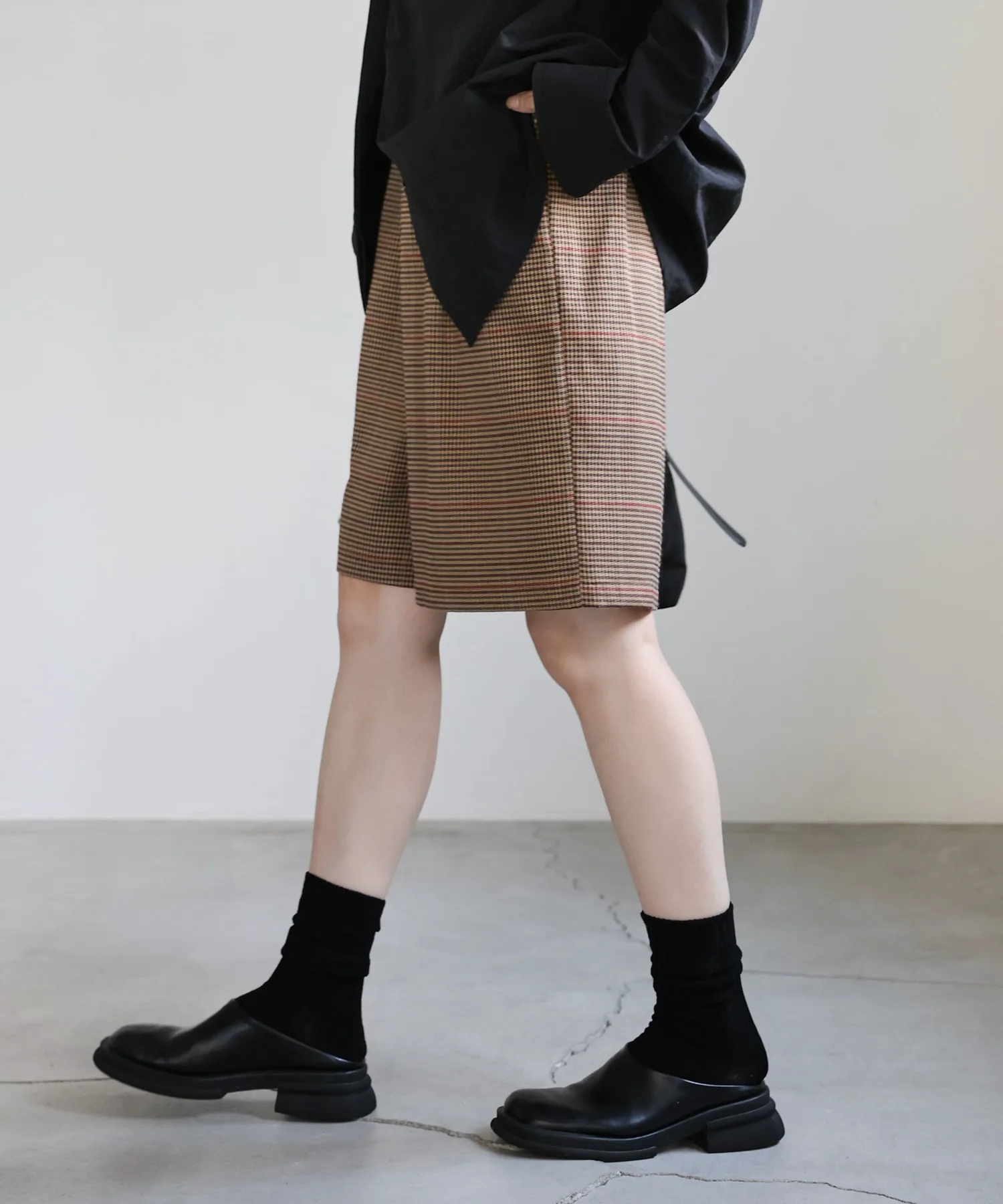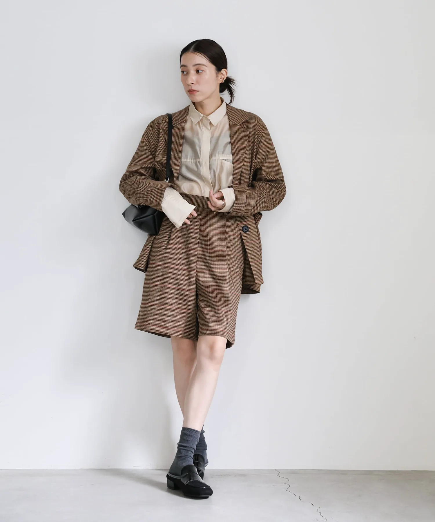Эти шорты сочетают в себе изысканный и непринужденный стиль. Нежный клетчатый узор прекрасно дополняет цвет, создавая классический образ, не слишком повседневный. Эластичная вставка сзади обеспечивает комфортную посадку, а простота ухода позволяет стирать их дома. Мы рекомендуем сочетать их с объемной рубашкой или трикотажным свитером, чтобы добавить объема верхней части тела. Также можно носить в комплекте с курткой (ou225104), изготовленной из того же материала. [Инструкции по стилю] Идеально подходят для изысканного, расслабленного повседневного стиля. Сочетайте их с простой футболкой или футболкой для освежающего и сбалансированного образа. Наденьте их поверх куртки или кардигана для повседневной носки или прогулки. Мы рекомендуем завершить образ кроссовками или сандалиями для более легкого варианта. Эта универсальная вещь идеально подходит для перехода между сезонами.